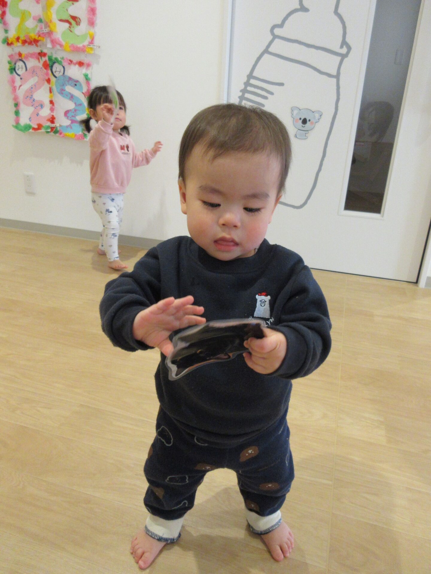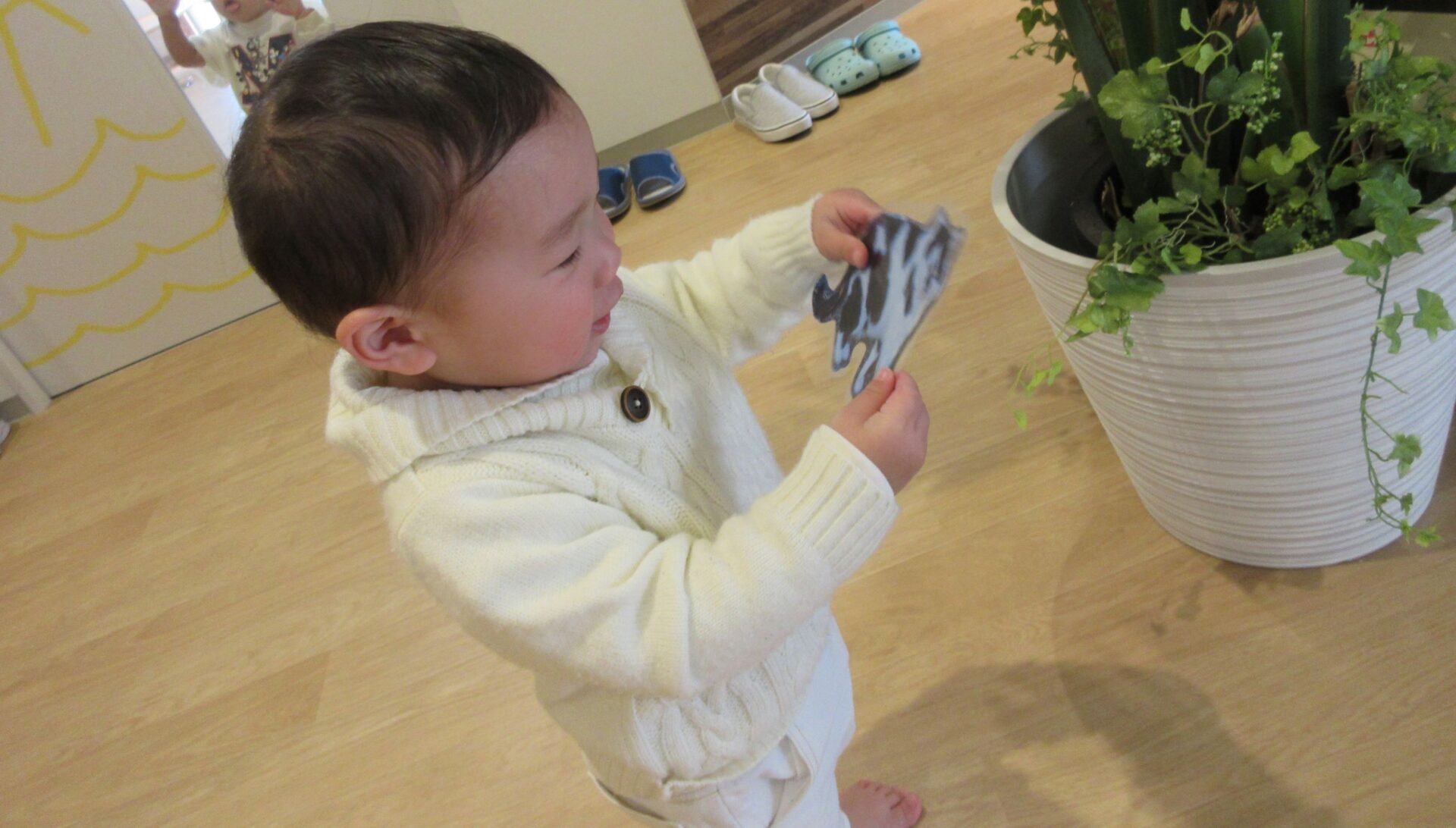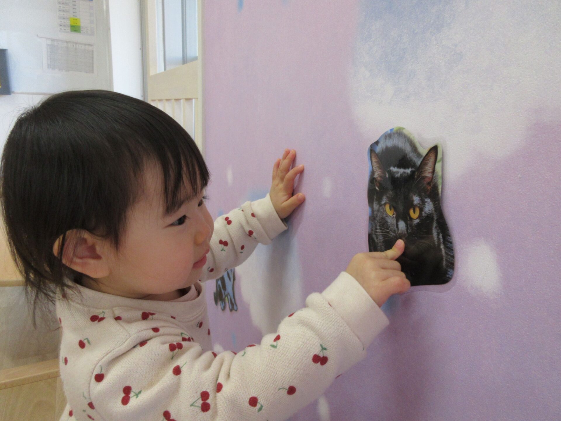 2025.01.24 お知らせ ブログ どうぶつみ~つけた♪(うみ組) 動物に興味を持っているうみ組さん! エントランスにいる動物たちを探しに行きましたよ♪「あ!ぱんださんみーつけた!」 猫や犬はお散歩で見たり、子どもたちのお家にもいたりするので、実物が分かるようになってきました!猫や犬は実物の写真です🐶🐈(先生のお家にいてる子たちです ( ´∀` )) 見つけた動物を上手にはがしています♪ わんわん みーつけた! 「にゃーにゃー!」 歩くのも上手になり、自分で歩いて探します! 「にゃーにゃーいた!」見つけるとうれしそうです♪ 事務所の中にもいましたよ♪動物探しおもしろかったね(*^^*) 一覧へ戻る