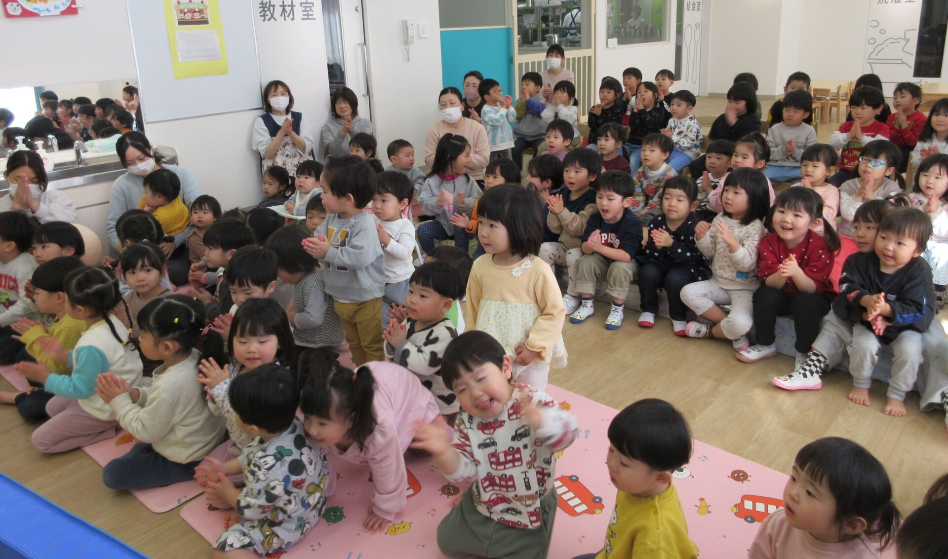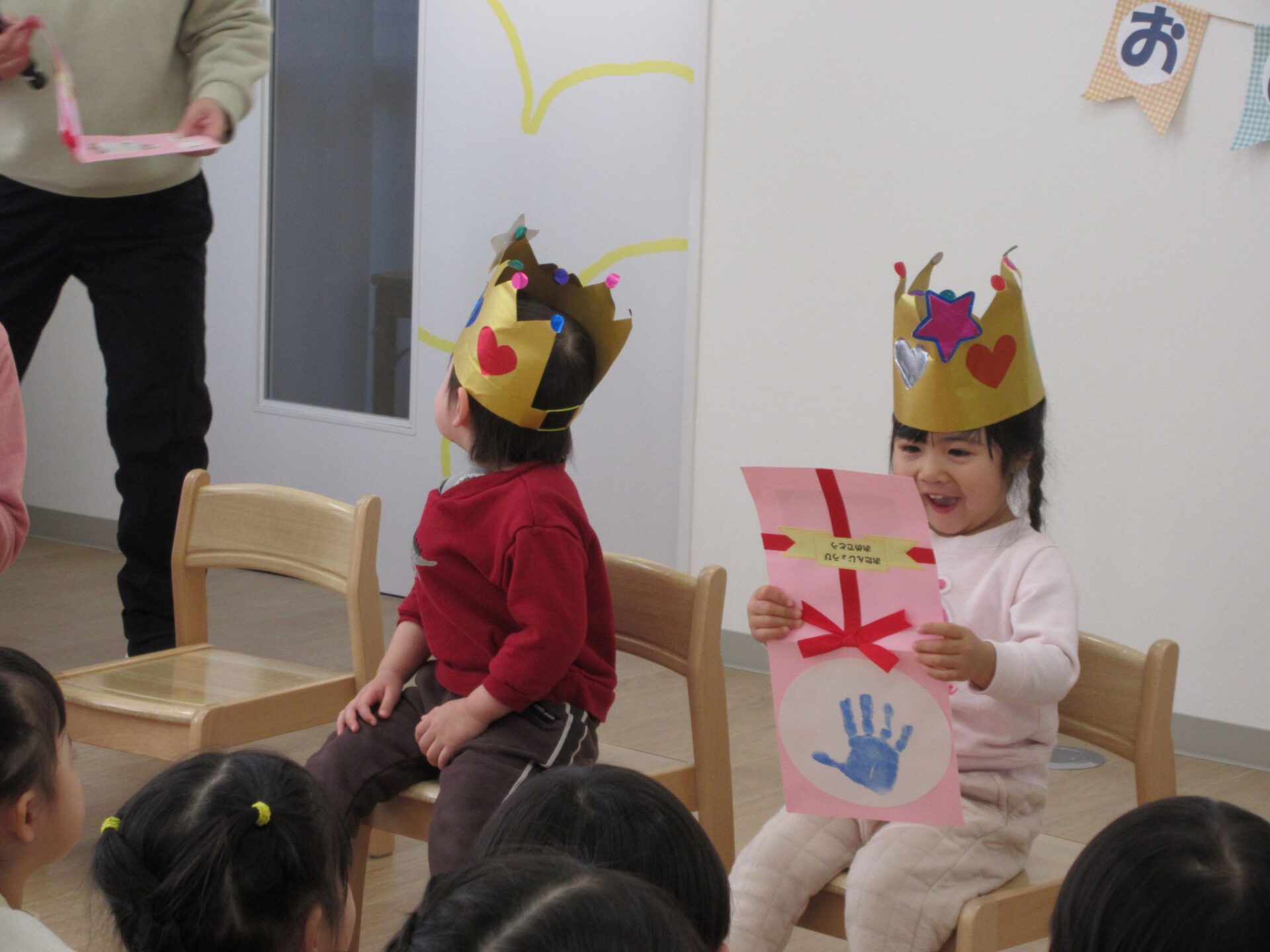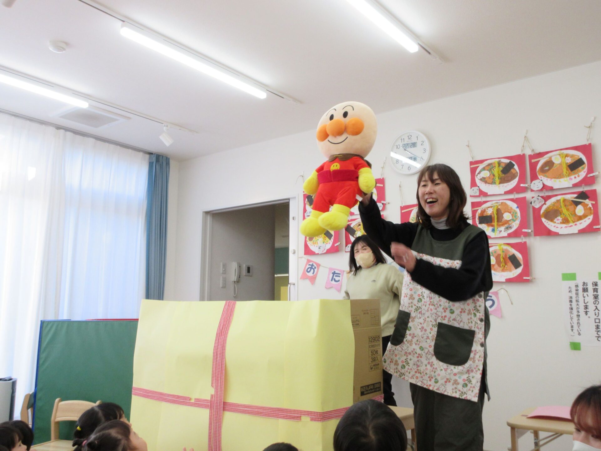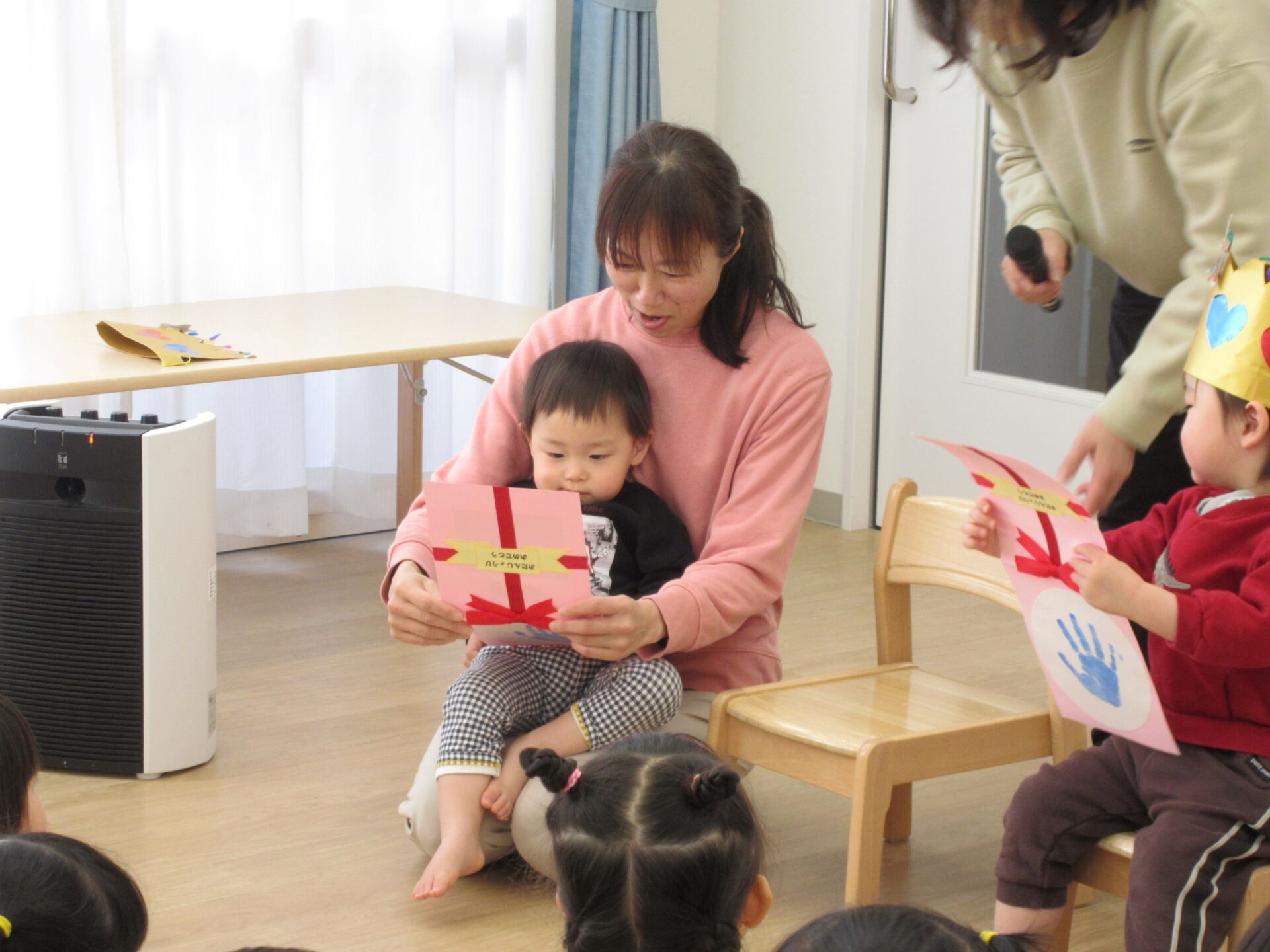 2025.02.25 お知らせ ブログ 2月の誕生会🎂 2/19(水)2月生まれの誕生会がありました✨ 2月は、3名の園児が誕生日を迎えます✨ 「おなまえは?」「何歳になりましたか?」インタビューにもこたえましたよ🎤 おたんじょうカードをもらって嬉しそうですね♡ 先生からの出し物のプレゼントです!「はこのなかみはなんでしょう~?」 アンパンマンや白菜、先生などなど… いろいろなものが出てきましたよ! みんな分かったかな!? 最後はケーキが出てきました!! ケーキのろうそくに向かって「ふぅー!!」2月生まれのみんな、おたんじょうびおめでとうございます👏✨✨ 一覧へ戻る