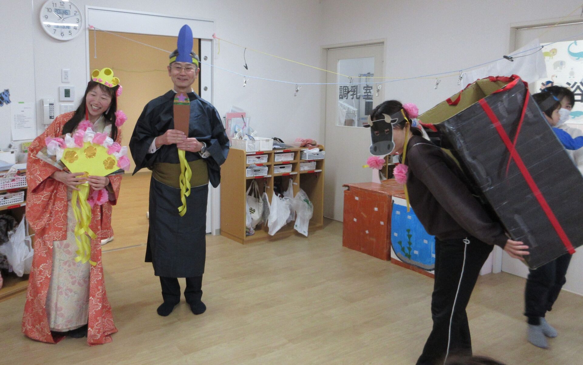 今年は牛さんもいます!お雛様の花嫁道具を運ぶ牛車ですね!!