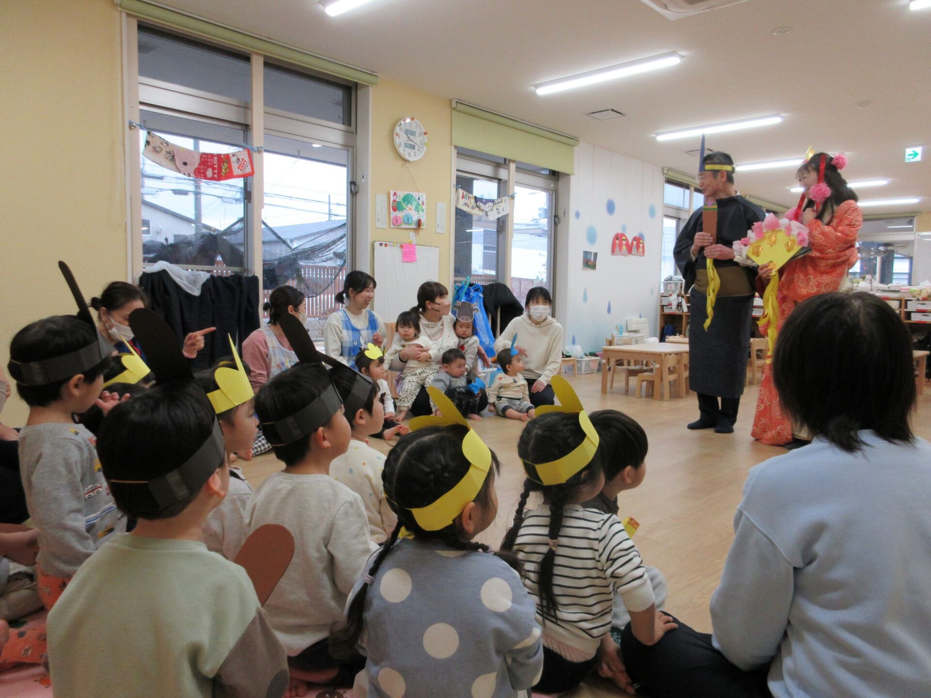 お家でも雛人形を飾ったり、ちらし寿司を食べたりしながら、桃の節句をお祝いしたお話を聞きました(*^^*)
