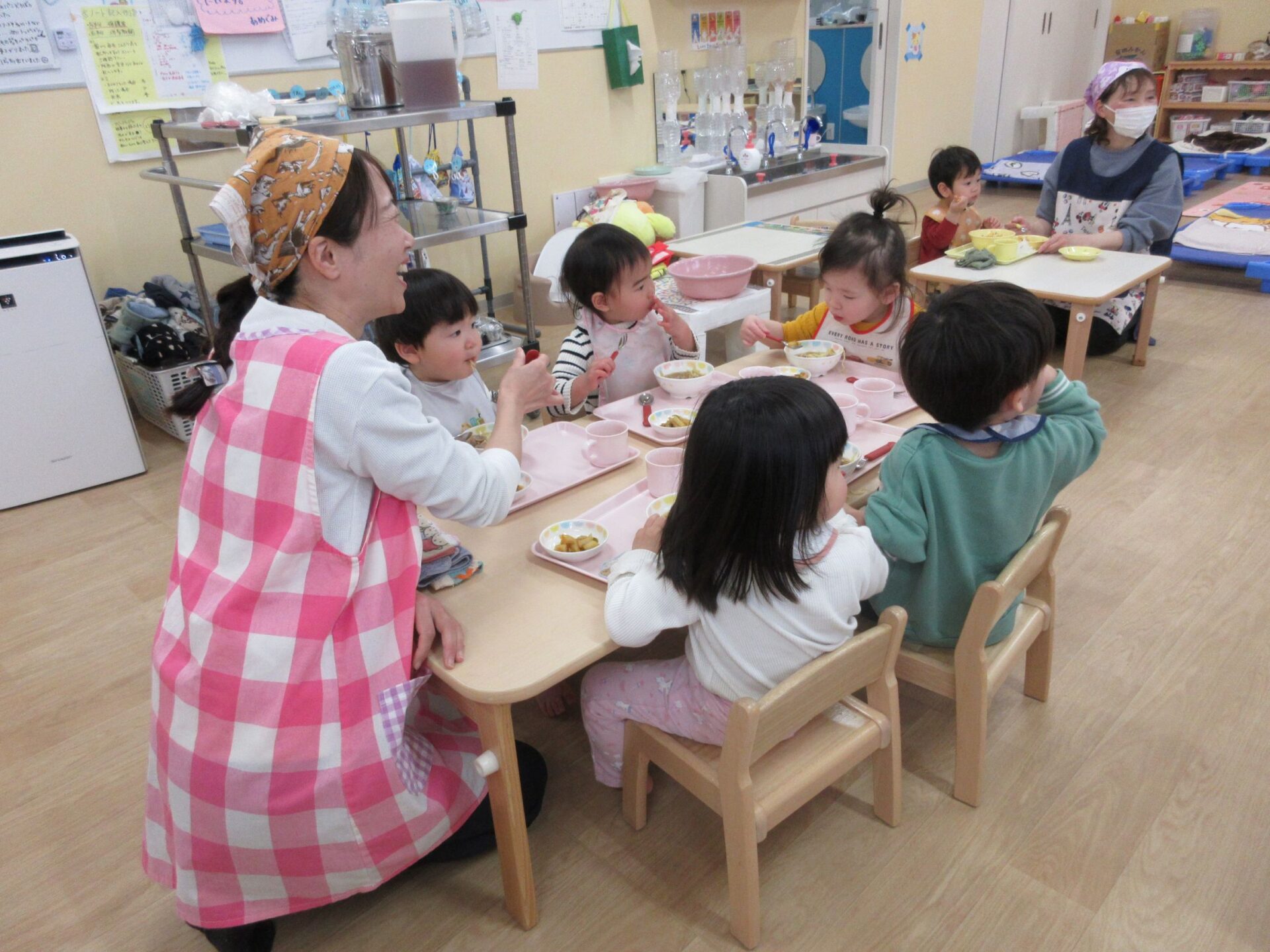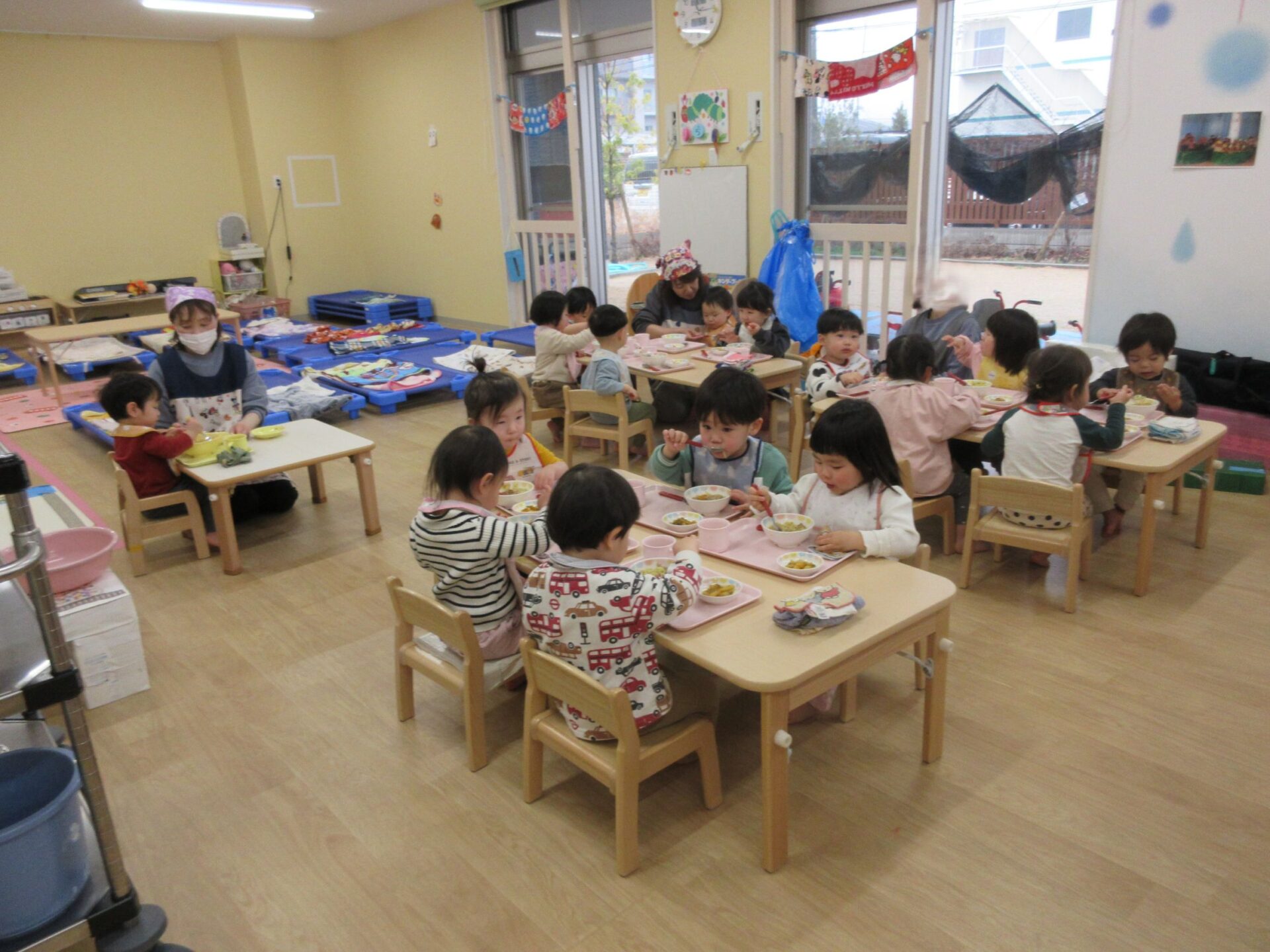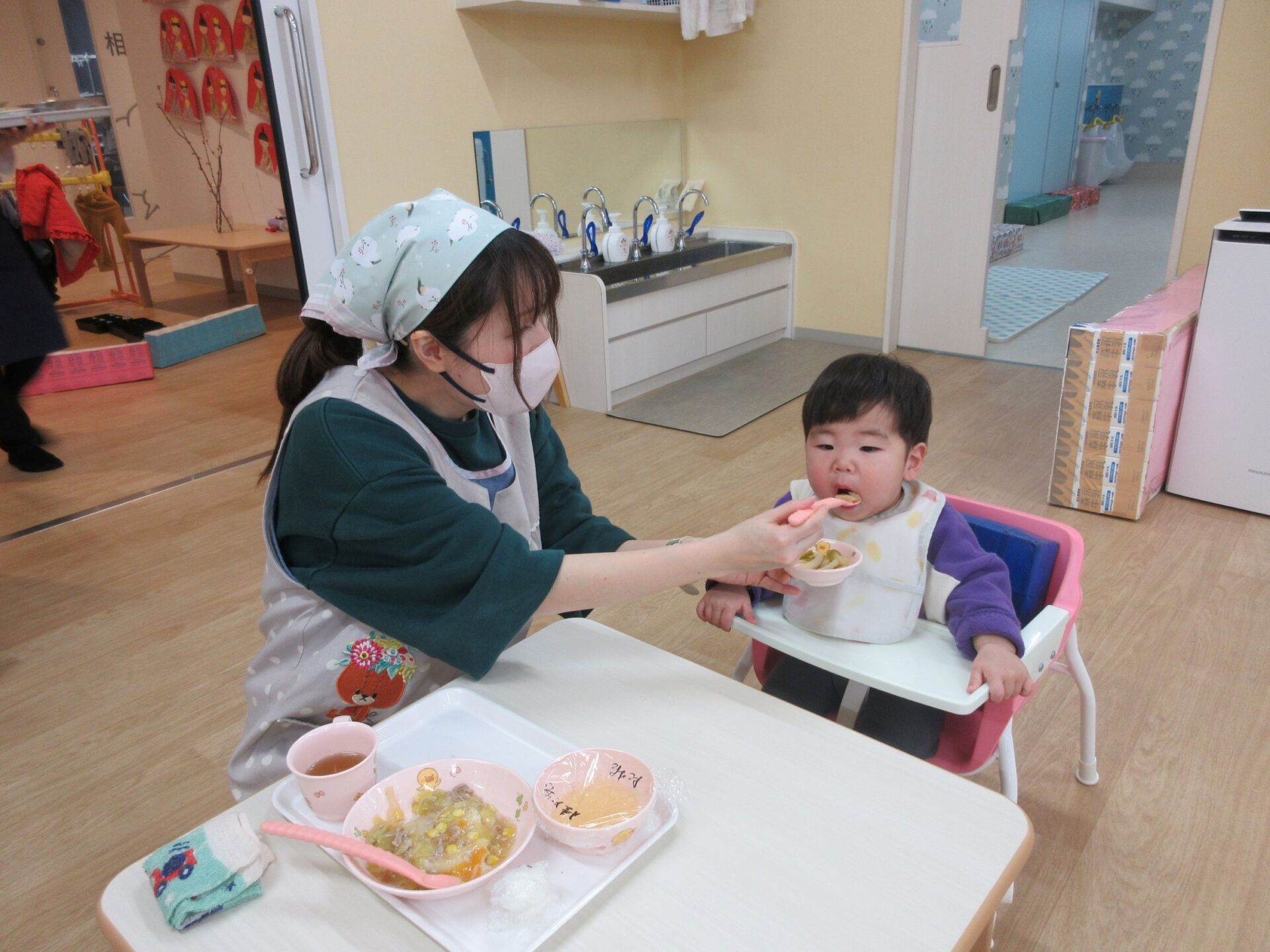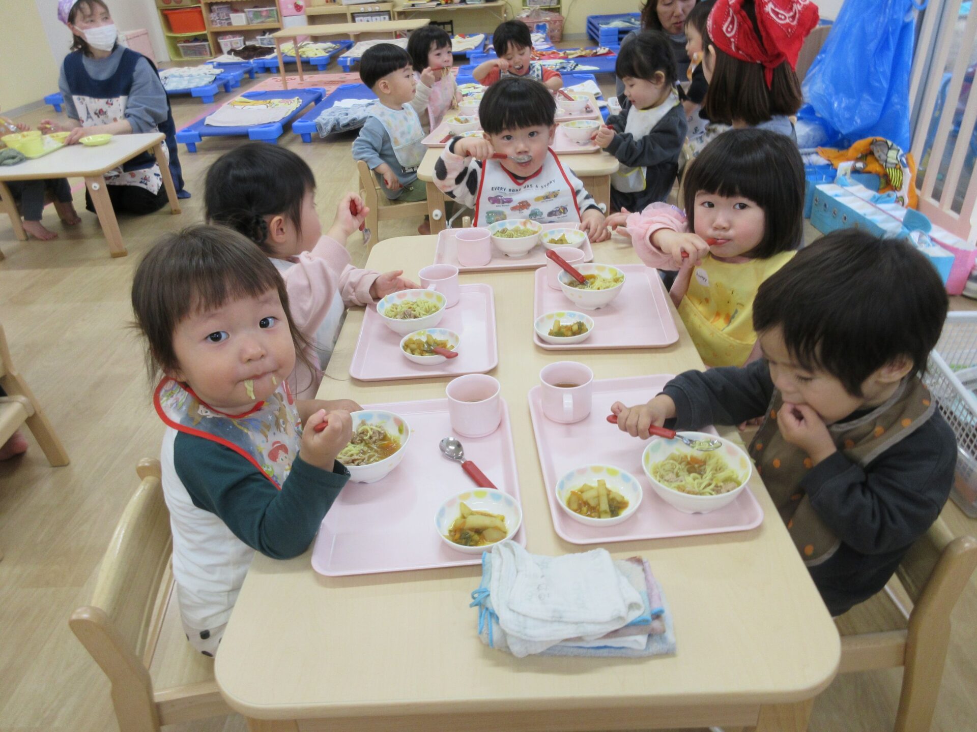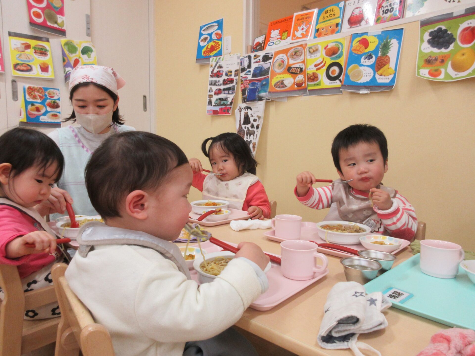 2025.03.11 お知らせ ブログ もうすぐ進級♪(うみ組、だいち組) 早いもので、もう3月ですね。今日は、うみ組さんはだいち組の保育室へ、だいち組さんはあめ組の保育室で給食を食べてみましたよ。 少し大きい机と椅子です!いつもの場所とは違うのでちょっとドキドキ! ラーメン、おいしいな♪ 4月からは、2歳あめ組になって、このお部屋ですごしますよ。楽しみですね。 0歳うみ組さんは、1歳だいち組の保育室で給食です。木の椅子が、ちょっと大きいかな。 みんな、上手に食べていて素晴らしいですね! フォークで上手に食べれますよ!すごいですね。つるつる~♪ もうすぐみんなは、1歳だいち組さん♪楽しみですね! 一覧へ戻る