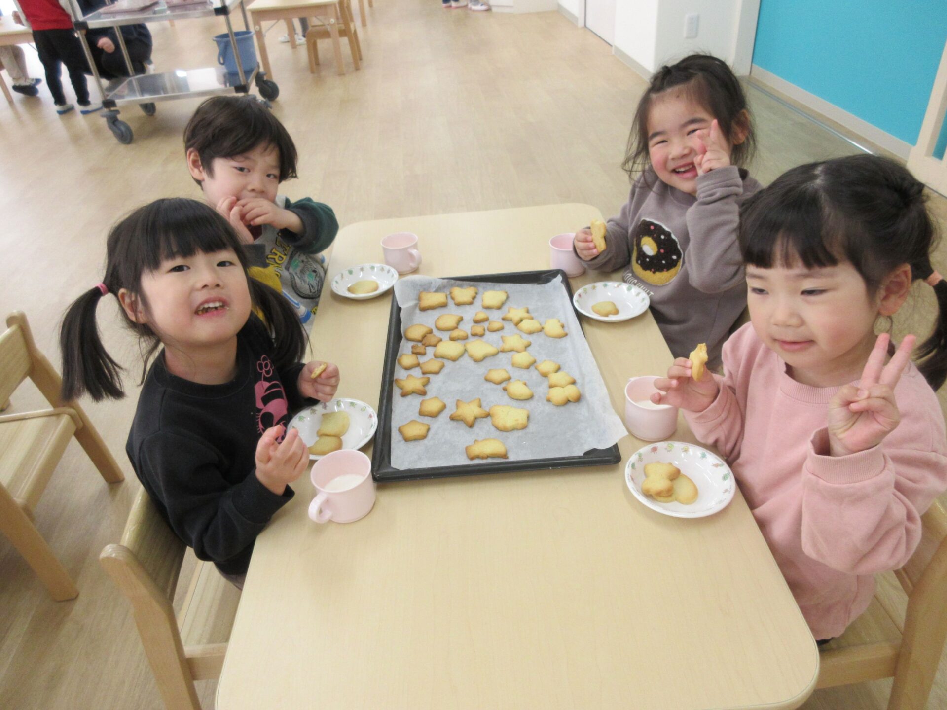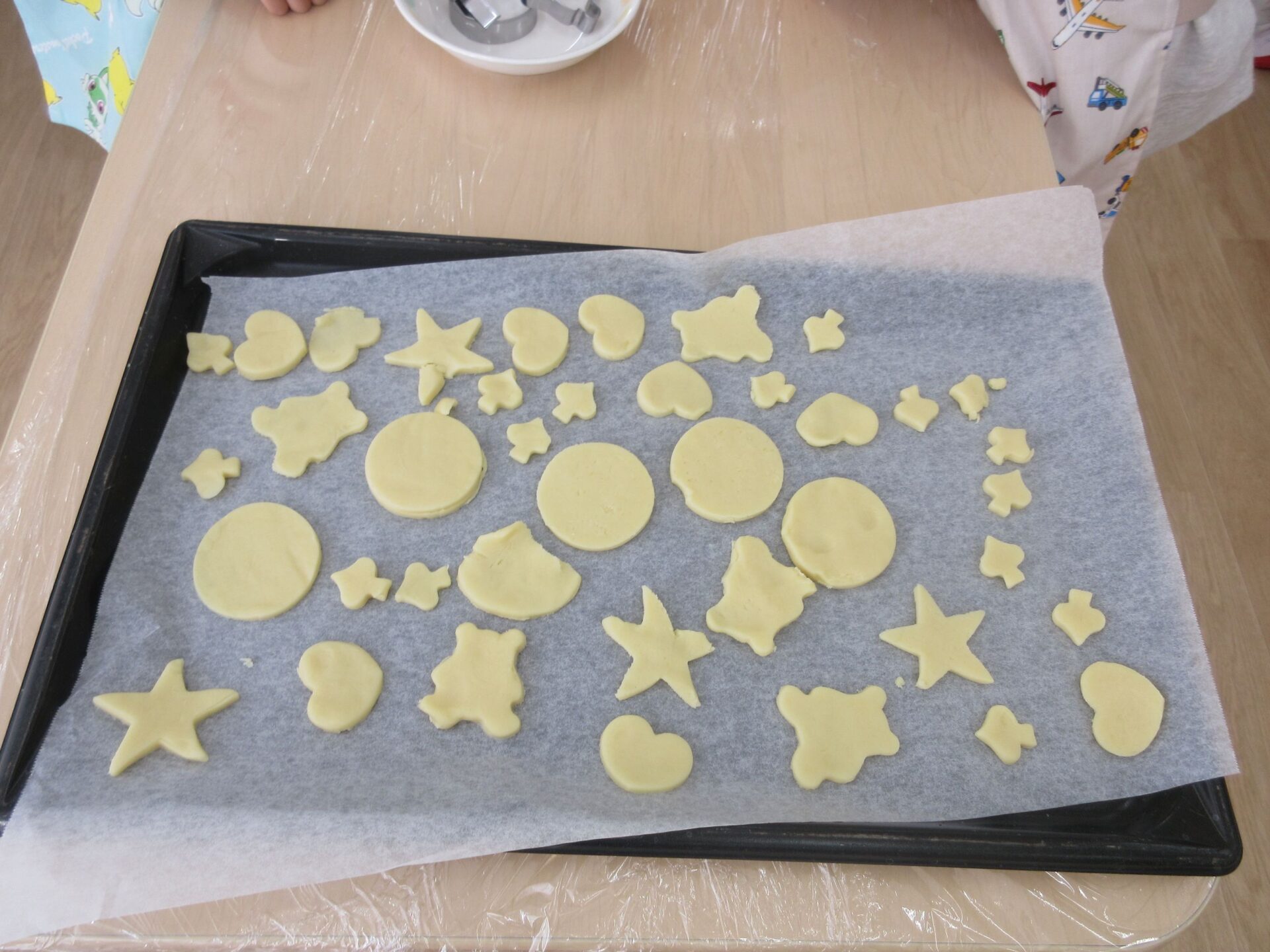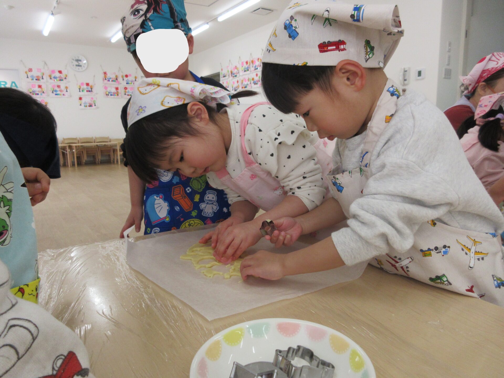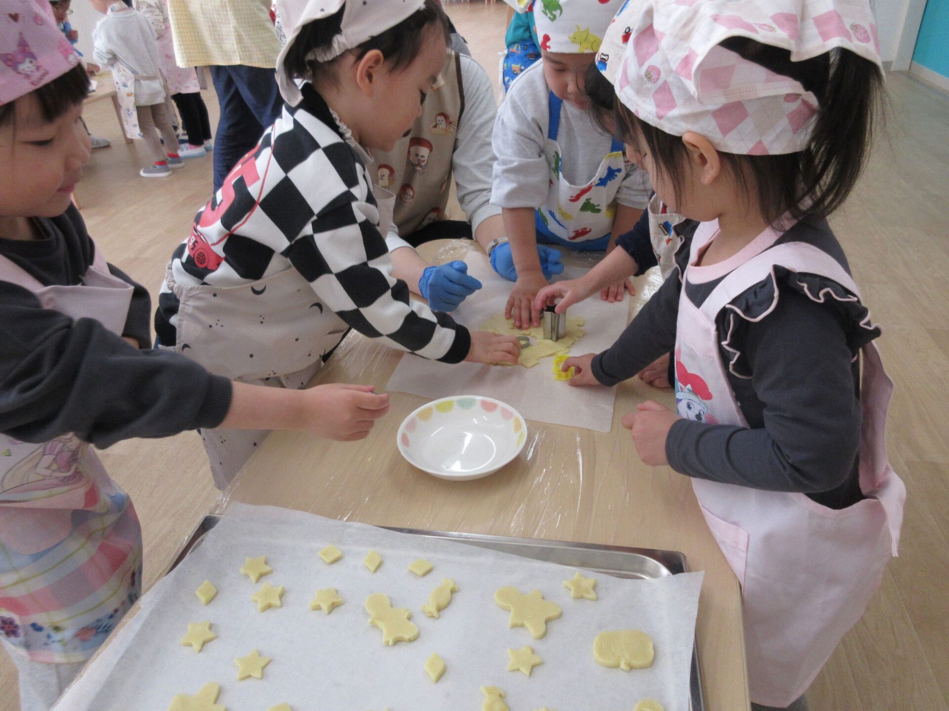 2025.03.24 お知らせ ブログ クッキング~クッキーの型抜き~(にじ組) 楽しみにしていたクッキング♪クッキーの型抜きに挑戦しました🍪 クッキーの生地に型抜きを置いて・・・ 上手にできるかな? 給食の先生にクッキーの生地をのばしてもらって・・・ お友だちと一緒に型抜きしたよ♪ 型抜きからクッキーの生地をとるよ!これが結構難しかったね! かわいい形がいっぱい☆♡上手にできたでしょ!! みんなでおいしくいただきました(*^^*) どのグループも、完食でしたよ♪ 一覧へ戻る