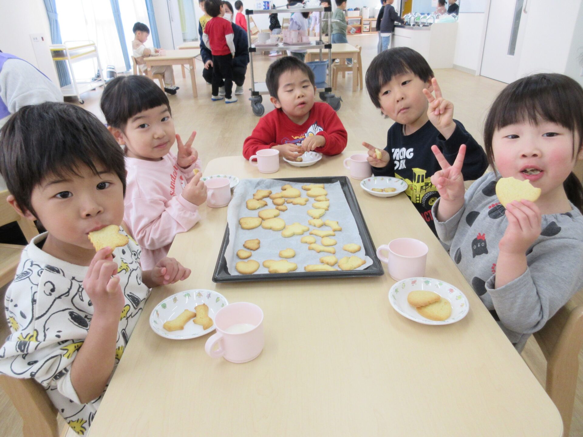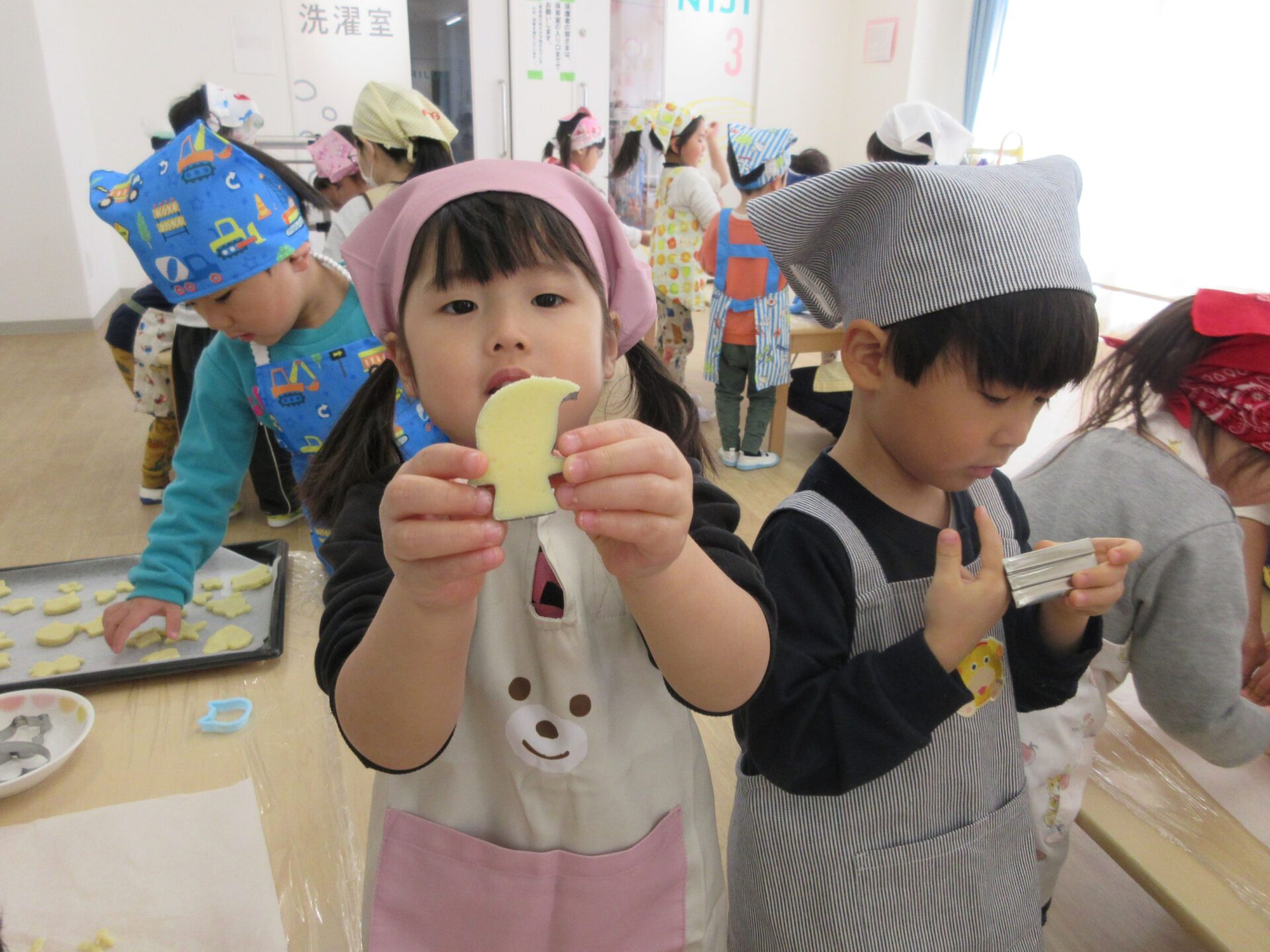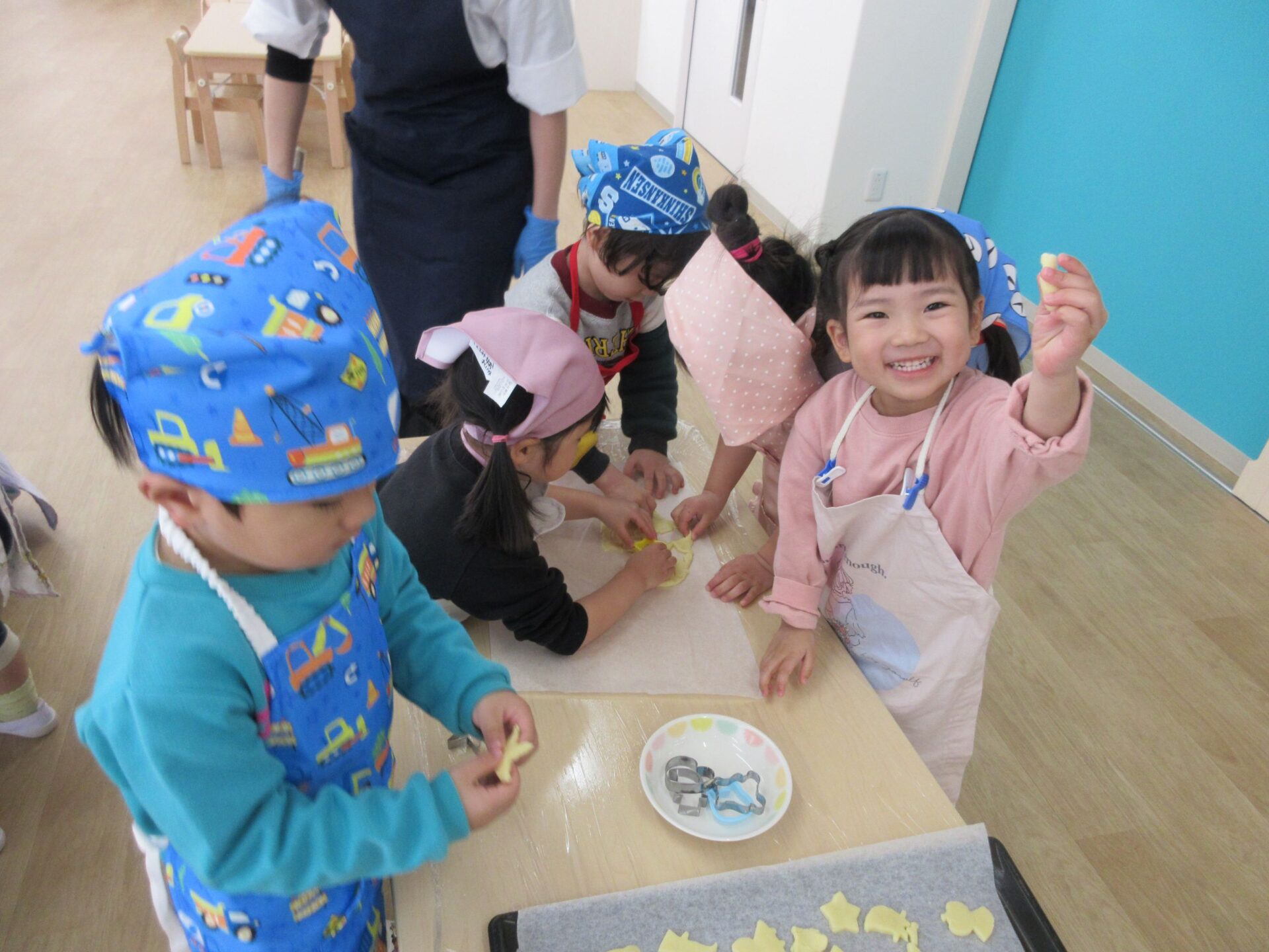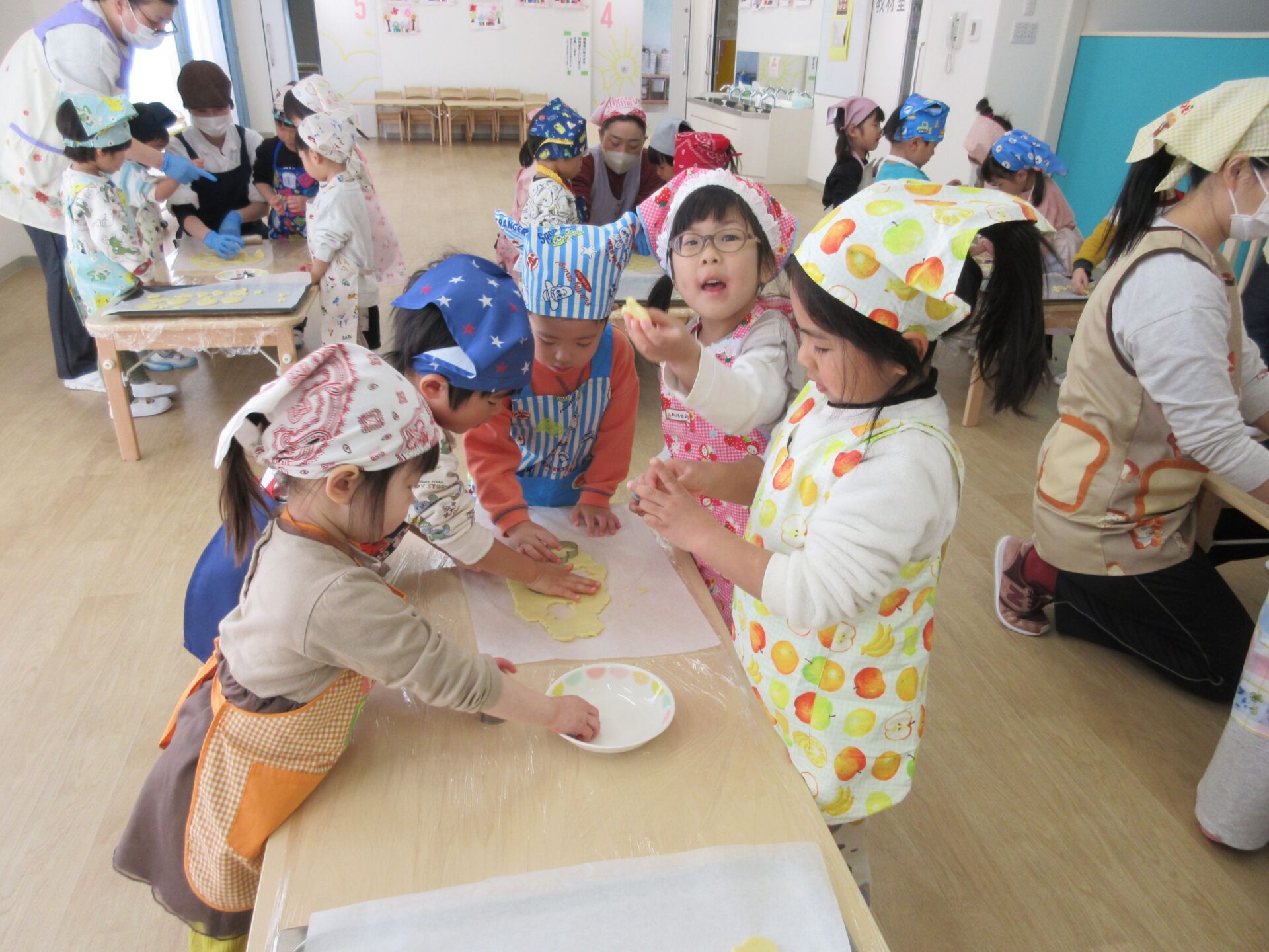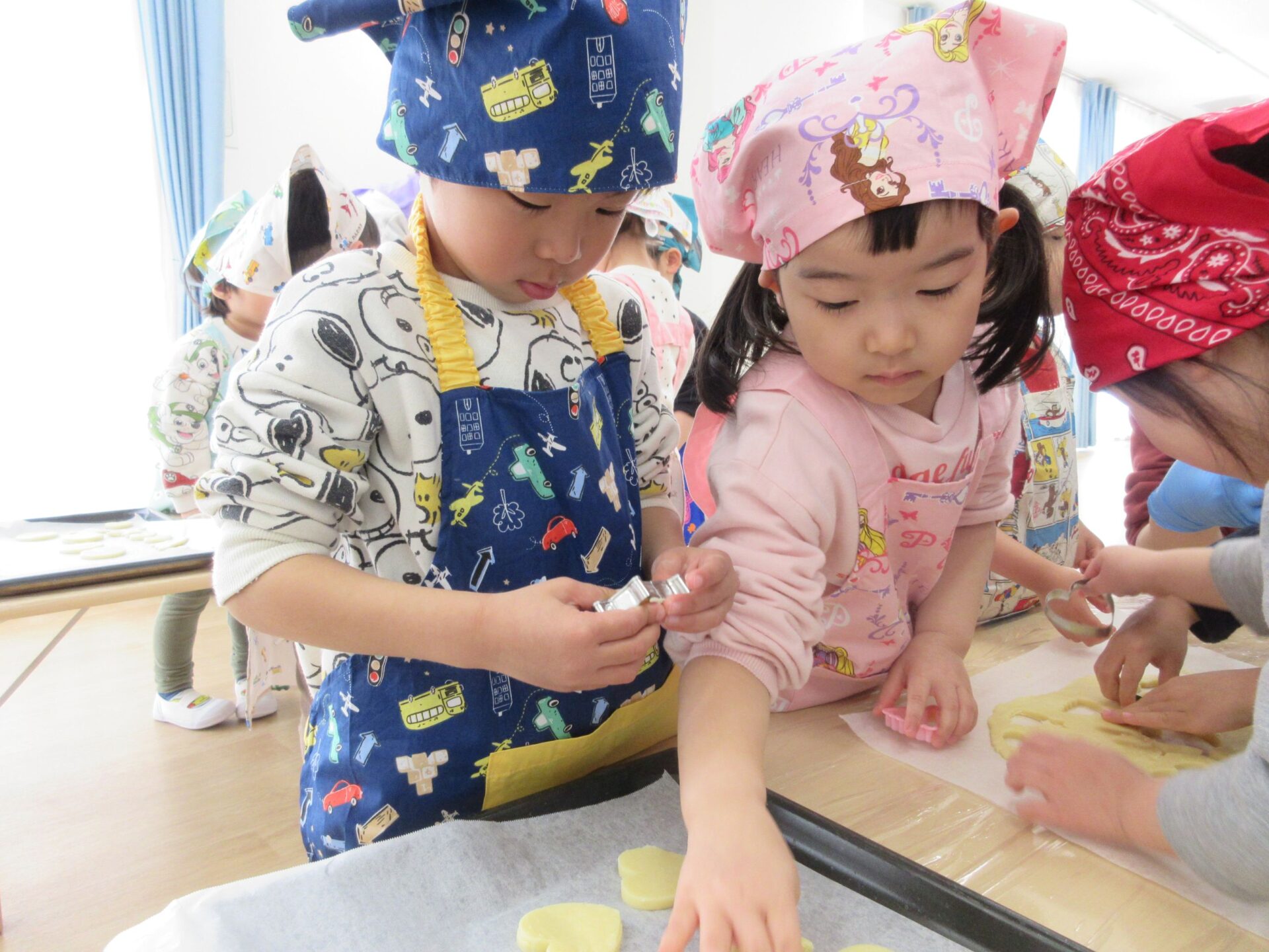 2025.03.24 お知らせ ブログ クッキング~クッキーの型抜き~(にじ組) 楽しみにしていたクッキング♪クッキーの型抜きに挑戦しました🍪 クッキーの生地に型抜きを置いて・・・ 上手にできるかな? 給食の先生にクッキーの生地をのばしてもらって・・・ お友だちと一緒に型抜きしたよ♪ 型抜きからクッキーの生地をとるよ!これが結構難しかったね! かわいい形がいっぱい☆♡上手にできたでしょ!! みんなでおいしくいただきました(*^^*) どのグループも、完食でしたよ♪ 一覧へ戻る