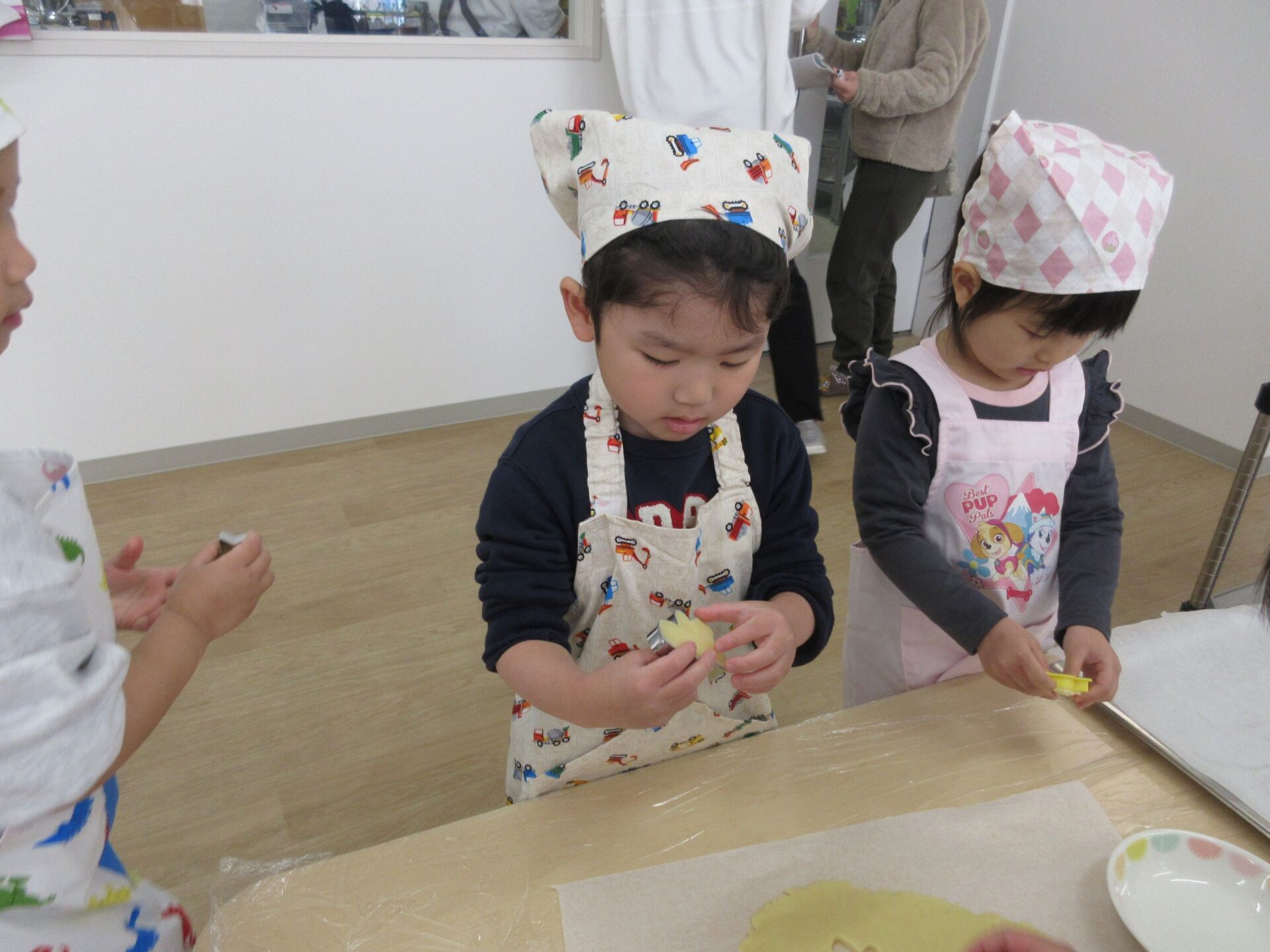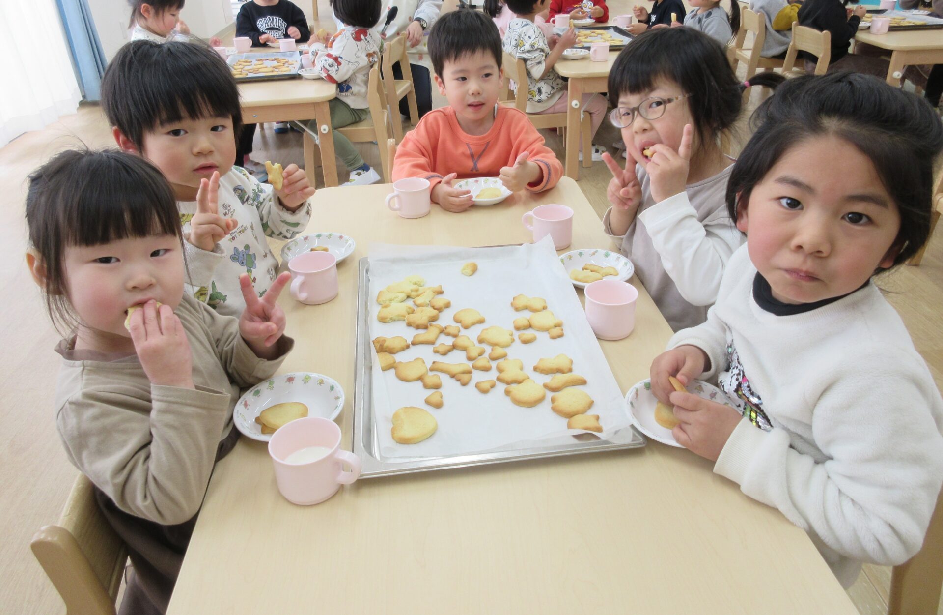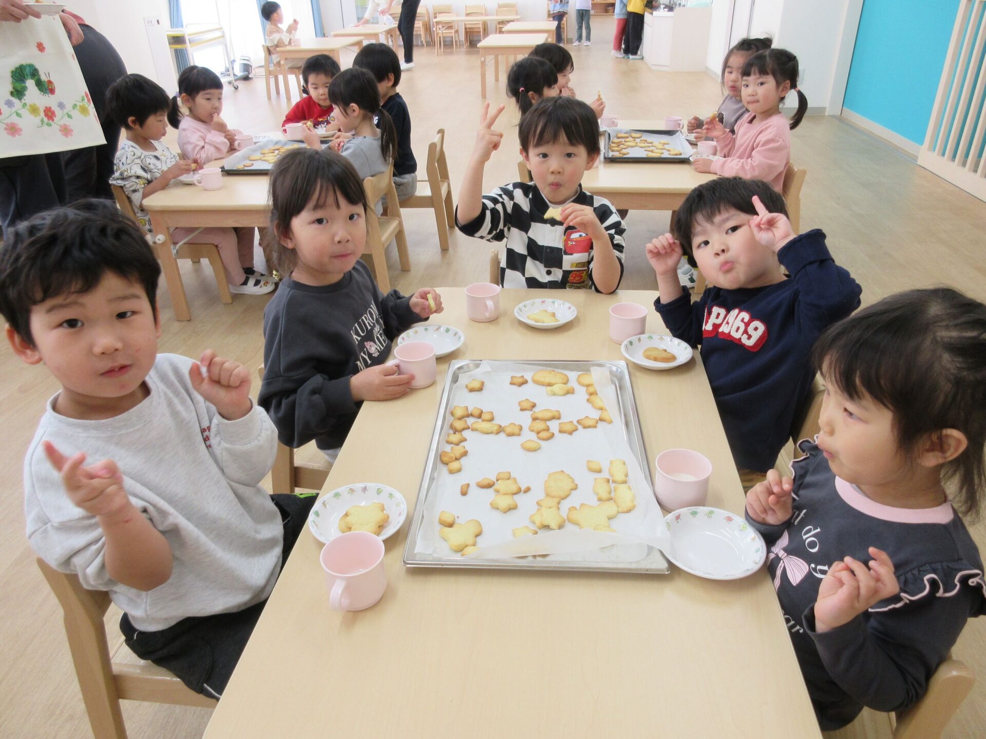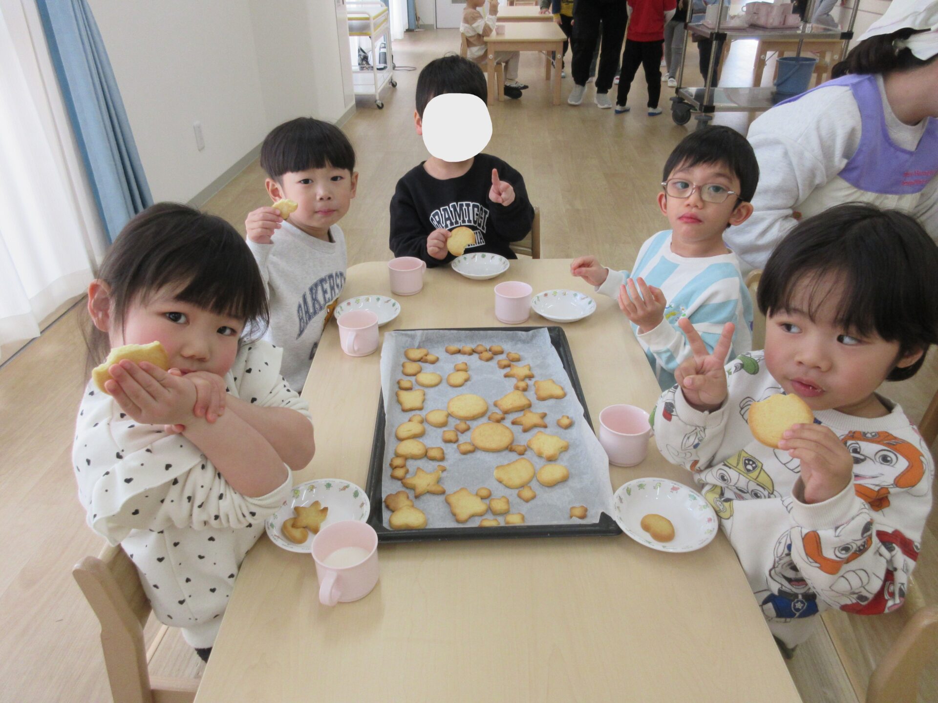 2025.03.24 お知らせ ブログ クッキング~クッキーの型抜き~(にじ組) 楽しみにしていたクッキング♪クッキーの型抜きに挑戦しました🍪 クッキーの生地に型抜きを置いて・・・ 上手にできるかな? 給食の先生にクッキーの生地をのばしてもらって・・・ お友だちと一緒に型抜きしたよ♪ 型抜きからクッキーの生地をとるよ!これが結構難しかったね! かわいい形がいっぱい☆♡上手にできたでしょ!! みんなでおいしくいただきました(*^^*) どのグループも、完食でしたよ♪ 一覧へ戻る