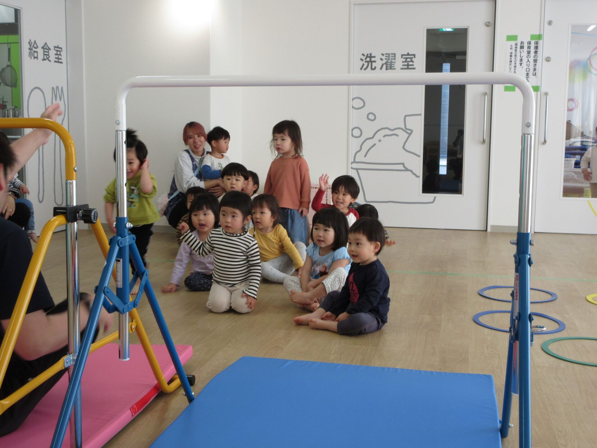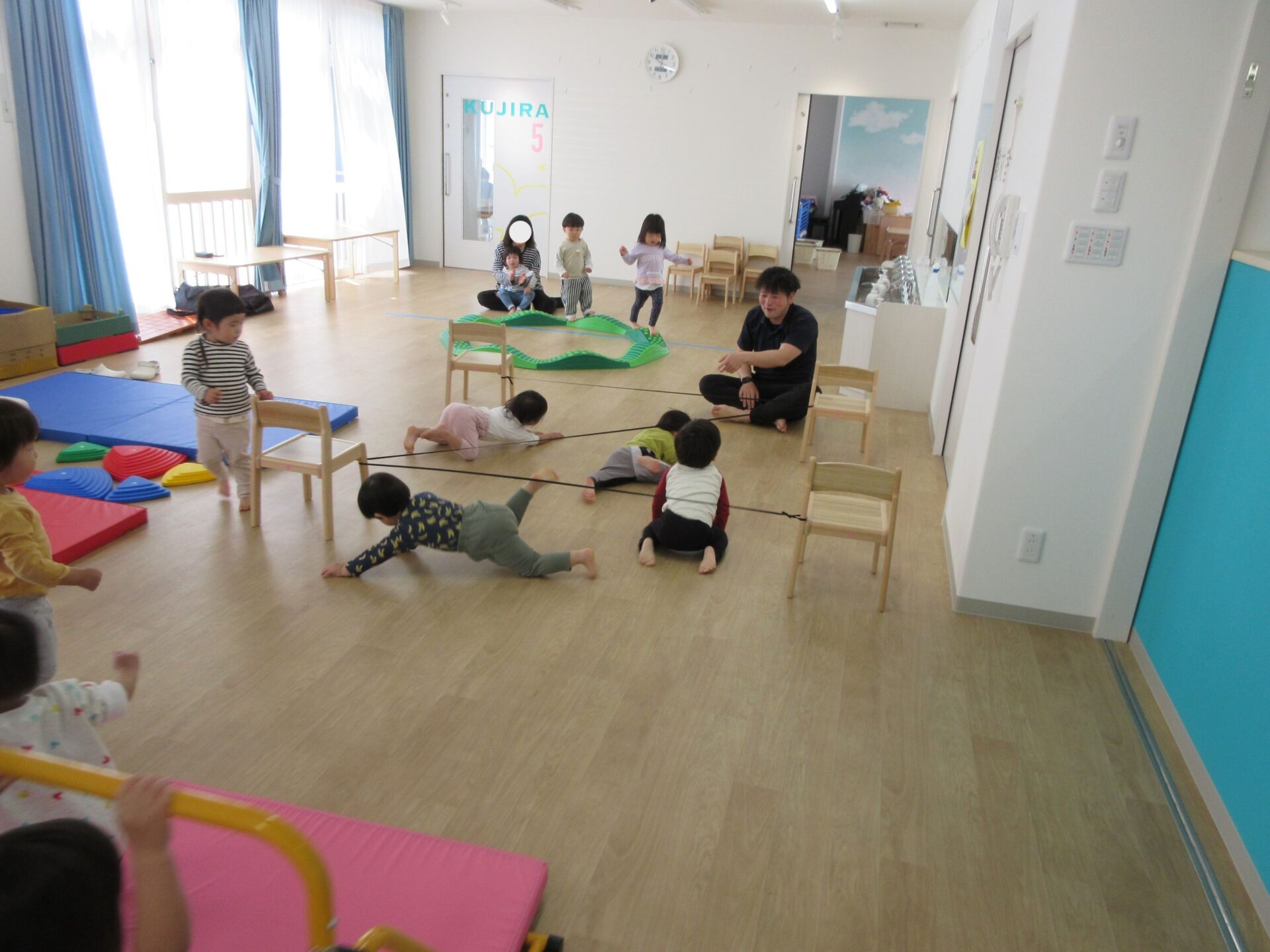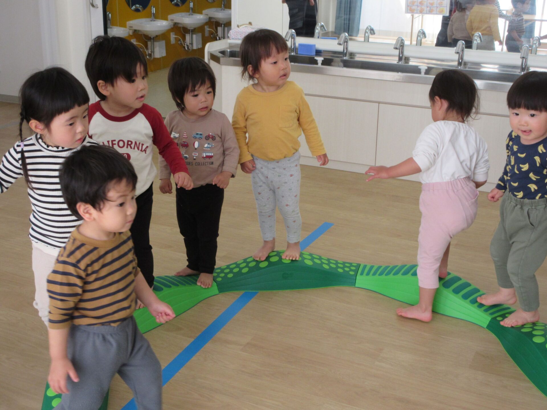 2025.04.28 お知らせ ブログ 元気いっぱい!運動遊び教室(2歳 あめ組) 4月11日(金曜日)はじめての、運動遊び教室に参加しましたよ♪ おっとっと~!落ちないよう、上手に渡ることができるかな?? ゆっくりと慎重に渡る子どもたち・・・ 鉄棒は、子どもたちから大人気でした! 鉄棒をぎゅっと握ってぶら~ん♪ よいしょ!ロープに引っかからないようにワニさん歩きでくぐります! マットでは、おしりを上げてクマさん歩きです♪ 体操の先生のお話やお手本も、静かに聞いたり見たりすることができたあめ組さん。次回の運動遊び教室も楽しみですね☆彡 一覧へ戻る