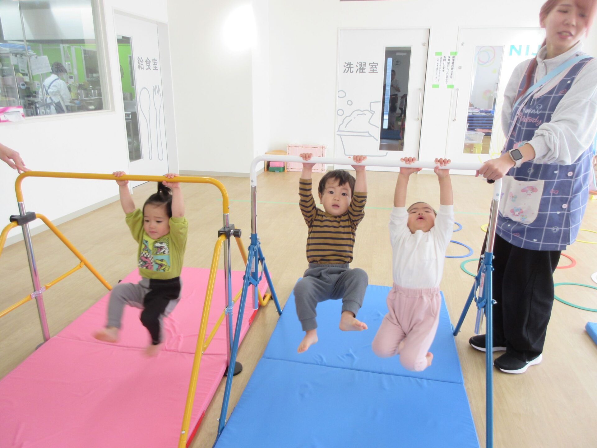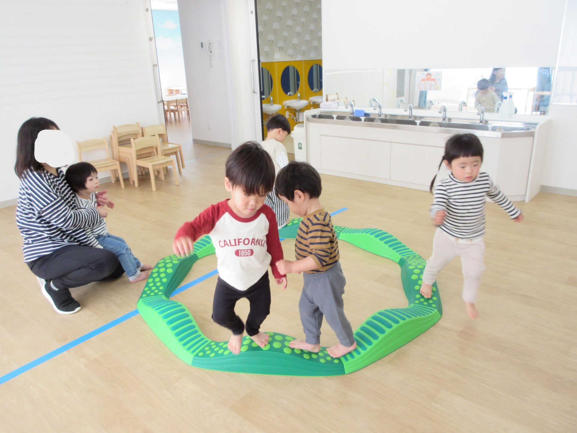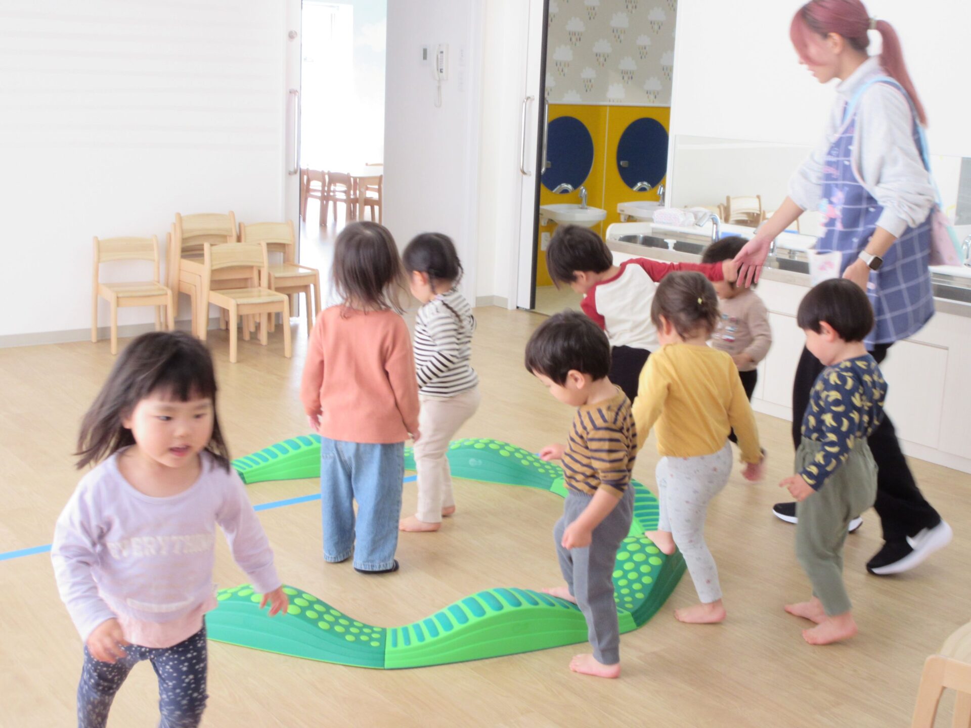 2025.04.28 お知らせ ブログ 元気いっぱい!運動遊び教室(2歳 あめ組) 4月11日(金曜日)はじめての、運動遊び教室に参加しましたよ♪ おっとっと~!落ちないよう、上手に渡ることができるかな?? ゆっくりと慎重に渡る子どもたち・・・ 鉄棒は、子どもたちから大人気でした! 鉄棒をぎゅっと握ってぶら~ん♪ よいしょ!ロープに引っかからないようにワニさん歩きでくぐります! マットでは、おしりを上げてクマさん歩きです♪ 体操の先生のお話やお手本も、静かに聞いたり見たりすることができたあめ組さん。次回の運動遊び教室も楽しみですね☆彡 一覧へ戻る