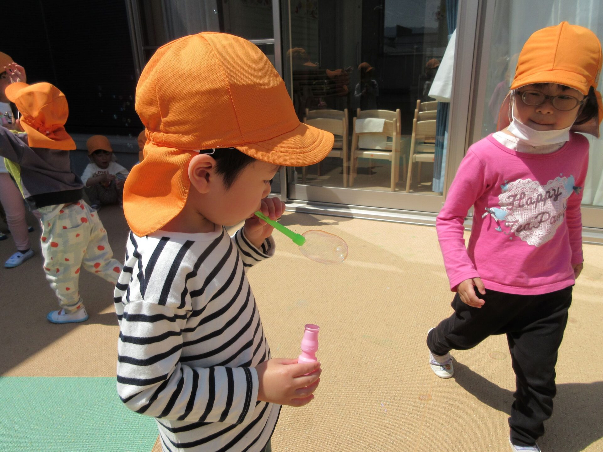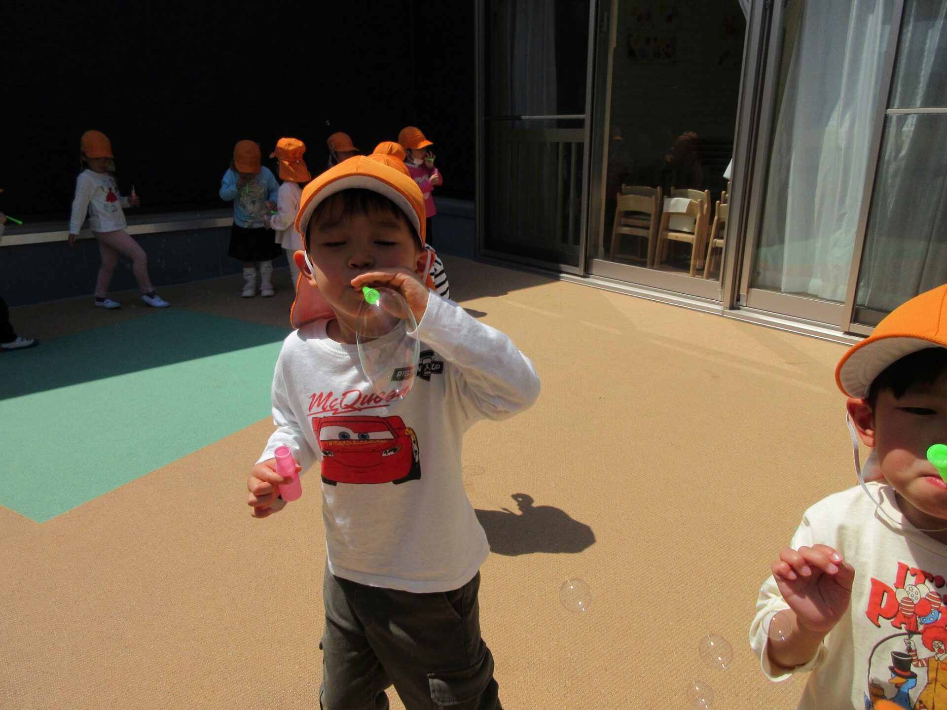 2025.04.30 お知らせ ブログ みんなでパス!(4歳 そら組) 4月17日にテラスでしゃぼん玉とボール遊びをしました。 ゆっくりと大きなしゃぼん玉にちょうせん! みんな一所懸命にふくらませています。 ゆっくりと、ふぅ~ 次は、2チームに分かれてボールを使って遊びました。 足を開いて下からボールをパス! がんばれ!がんばれ!みんな一所懸命です。 次は、頭の上からパス!できるかな? がんばれ!がんばれ!最後まで! どっちのチームもがんばって、ボールは先頭のおともだちに戻りました! 一覧へ戻る