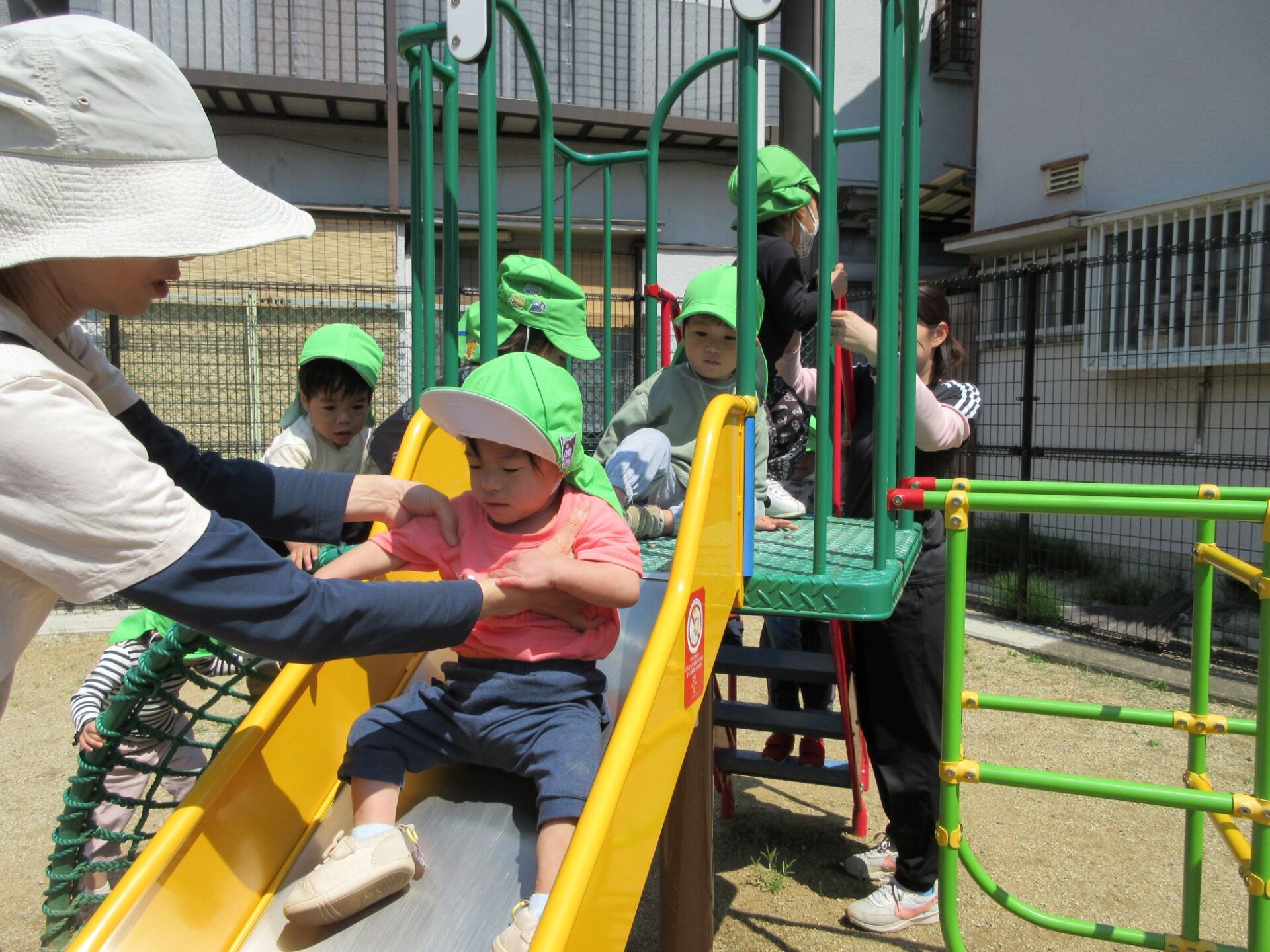 すべり台の上から手を振ったりポーズを取ってくれたりしました☆