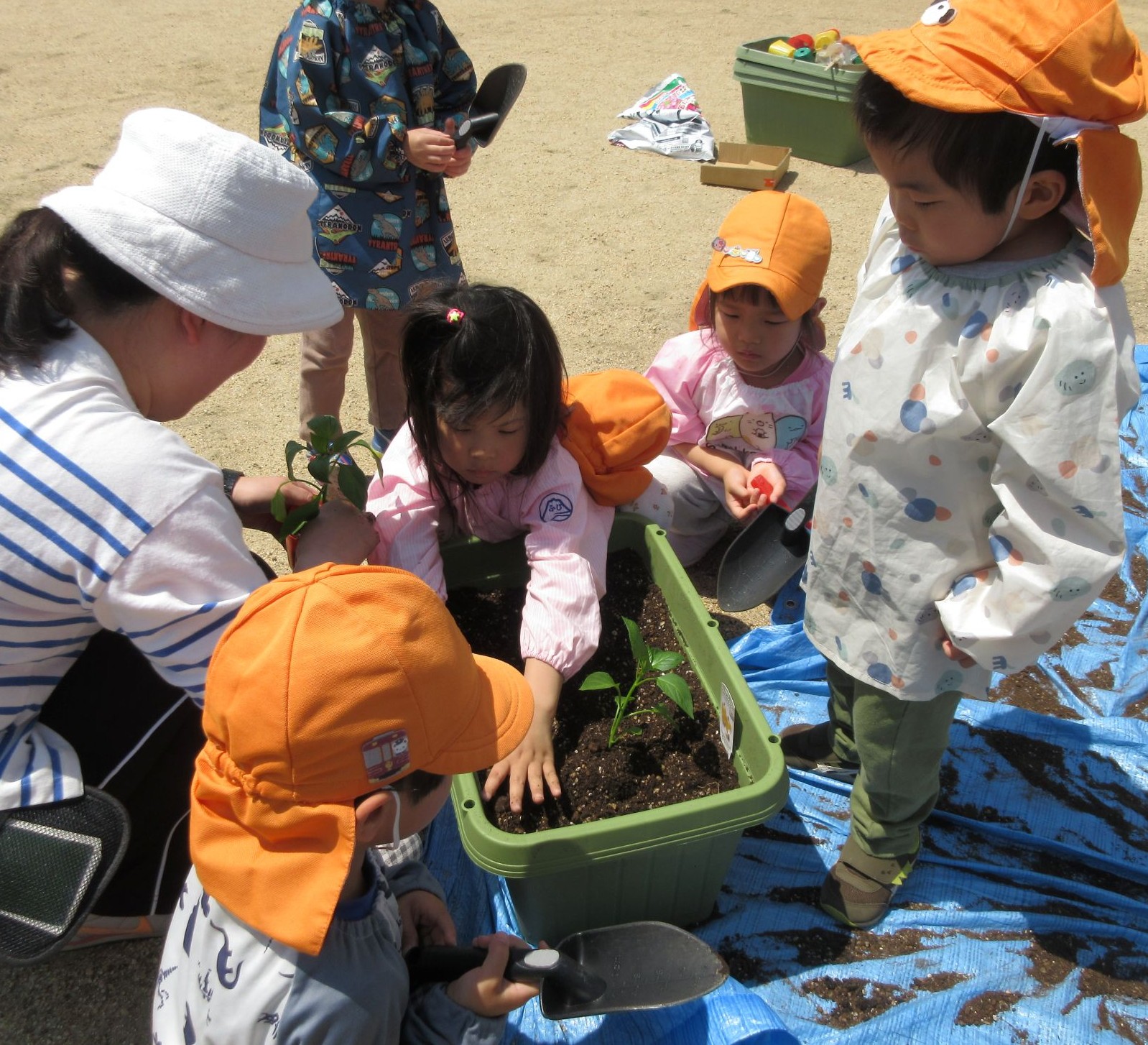 2025.05.16 お知らせ ブログ パプリカとラディッシュを植えました♪(4歳 そら組) はじめに、プランターに土を入れたよ。 どんどん土を入れないと~ 準備O K !パプリカの苗を植えるよ♪ ちょっとだけ葉っぱをさわろ~♪ やさしく、やさしく。 そ~っと、そ~っと。 最後にたっぷりとお水をやりました。元気に育ってね。 一覧へ戻る