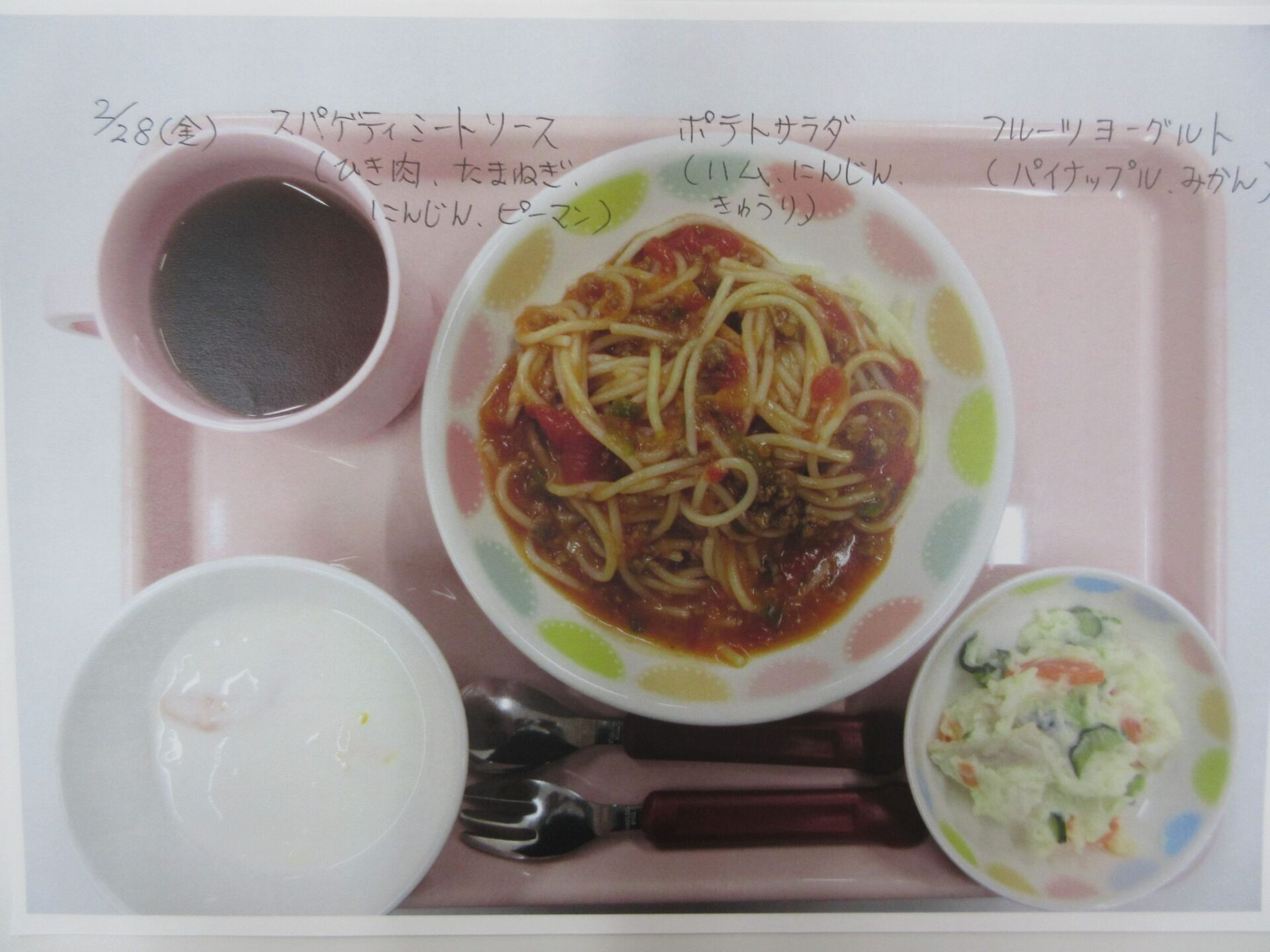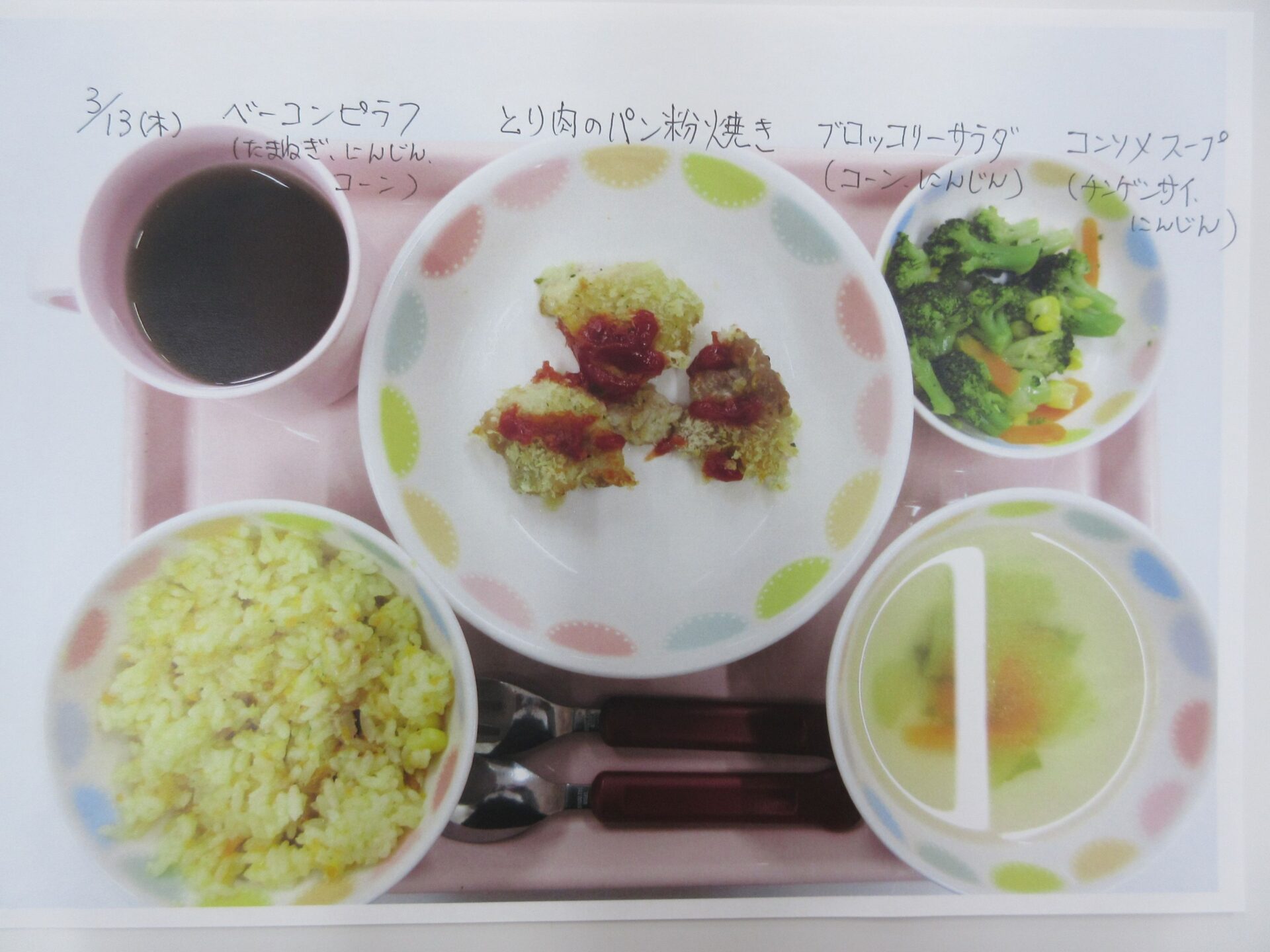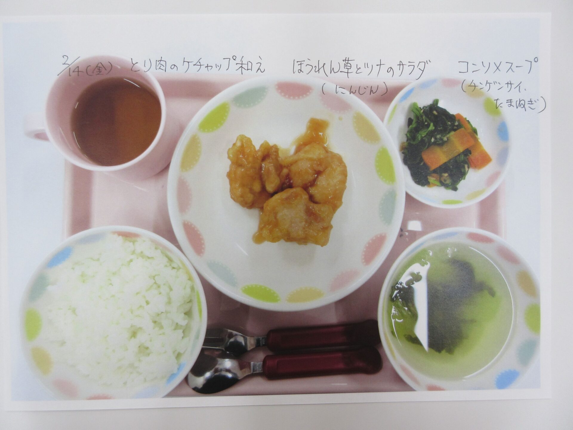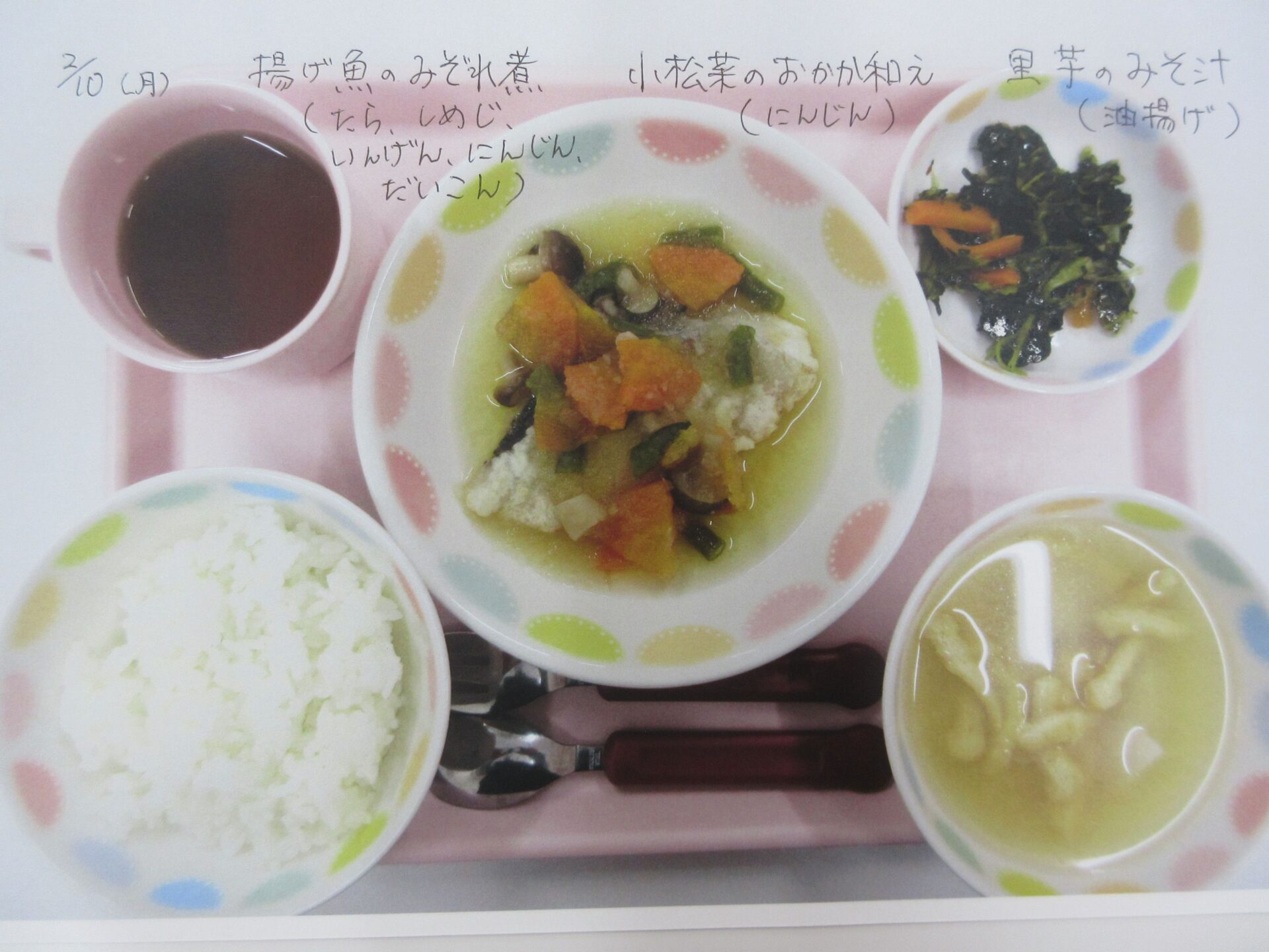 2025.05.28 お知らせ ブログ 給食献立ランキング ベスト20! 昨年12月から3月の献立の人気献立ベスト20を報告します。(1位から20位は、決めていません。) まず、何と言っても大人気、カレーライス!今回は、ポークカレー。チキンカレーの時もありますよ。 これから、とり肉シリーズ。これも人気の「唐揚げ」です。 とり肉のパン粉焼きも、なかなかの美味。ベーコンピラフもうれしい♪ 「とり肉のケチャップ和え」もおいしかったですね。 とり肉シリーズの次は、「照り焼き」です。今回のピラフは、コーンツナピラフでした。 「トマト煮」も、なかなかおいしかったです。とり肉も、いろいろなお料理があるんですね。 「クリームシチュー」もよかったです。パンも、月に1~2回出てきます。 よく似ているけど、こちらは「クリーム煮」。違いは、・・・。(よく似ていました♪) 続いて、どんぶりシリーズ。マーボー丼です。辛さ控えめの優しいお味です。 これは、「中華丼」。どちらの丼もおいしくて、順位をつけがたい。 次に、めん類シリーズ。「みそラーメン」。麺もお出汁も、抜群でした。 「あんかけうどん」、寒い季節には温まりますね。 「スパゲティミートソース」も大好き!ポテサラも、うれしかった。 ここからは、お魚料理シリーズ。「鮭フライのタルタルソース」。タルタルソース、大好き!いろいろなものにかけて食べたいな♪ 「サバのみそ煮」。和風の献立ですね。 「揚げ魚のみぞれ煮」、大根でさっぱり味になっていました。 「白身魚のカレーフライ」。おいしかったけど、カレーライスが食べたくなりました。 寒い季節に、温かい「おでん」。最高です。炊き込みご飯も、おいしかったですよ。 「煮込みハンバーグ」、とても美味しかったです。次は、もう少し大きいのがいいな~♪ 最後は、「ホイコーロー」。ご飯が進む、いいお味でした。調理員の皆さん、いつもおいしい給食、ありがとうございます! 一覧へ戻る