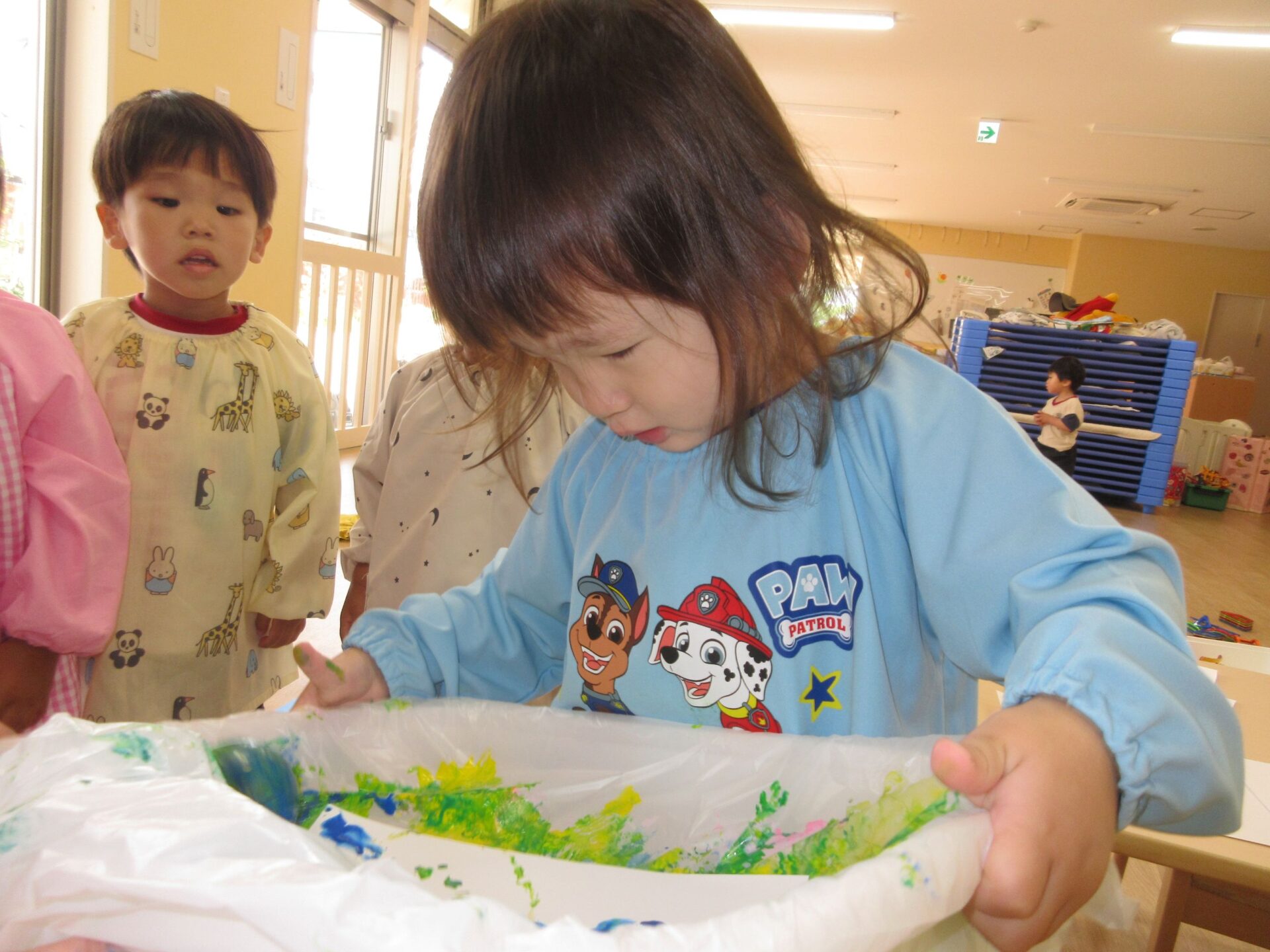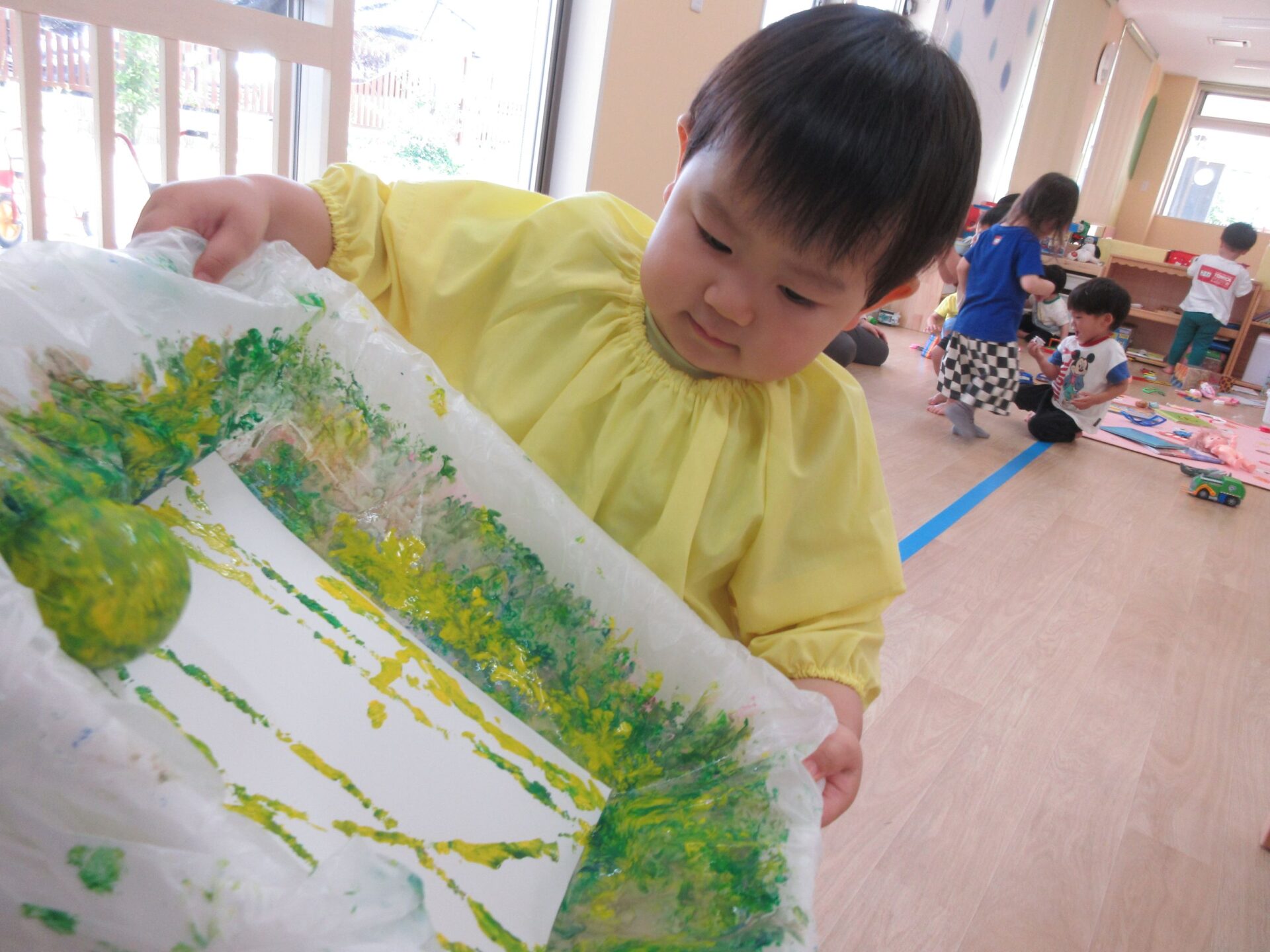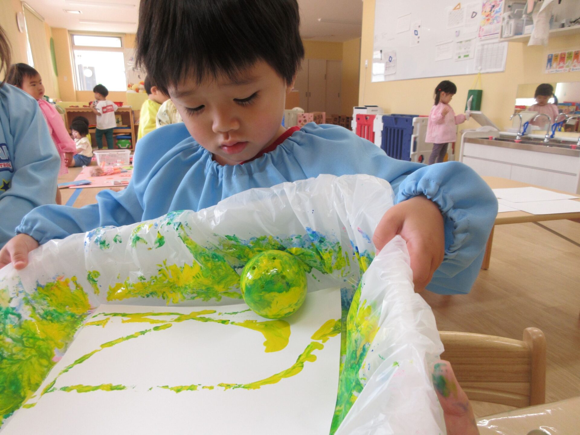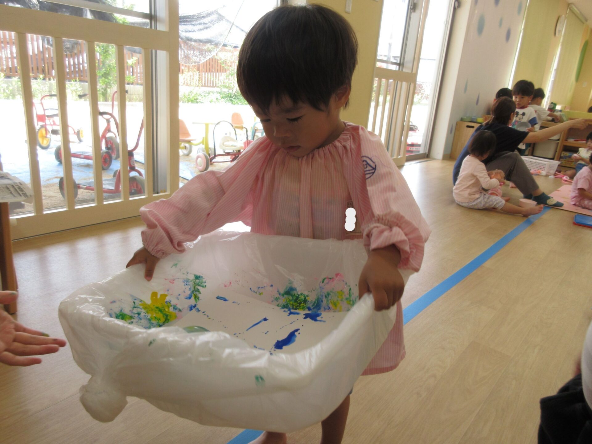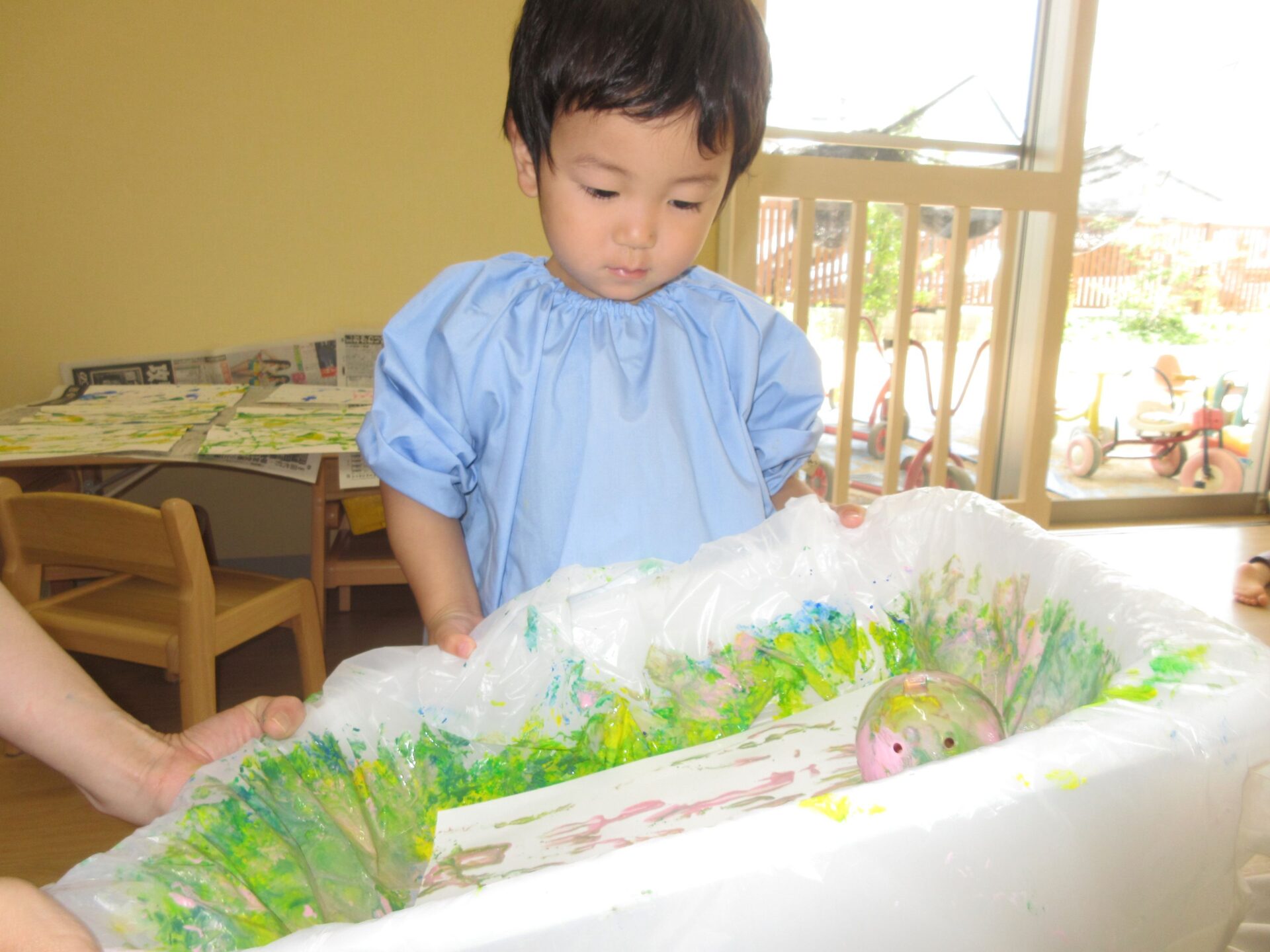 2025.05.30 お知らせ ブログ ころころしたよ!(2歳あめ組) 5月20日(火曜日)大きな箱とガチャガチャのカプセルを使って、ころころ製作をしました! きいろ、みどり、あお、ピンク・・・その中から自分で好きな色を選びました! 箱の中からカプセルが落っこちないようにコロコロ~ なかなか転がらなくて大きく傾けてみたり・・・ カラフルな模様ができてきて、嬉しそうな子どもたち😊 真剣に製作をしていると・・・👀 順番待ちしている友だちがたくさん集まってきました😆 たくさんころころできたね! 今回の製作も楽しかったね!これからもいろんな製作を楽しもうね🤩 一覧へ戻る