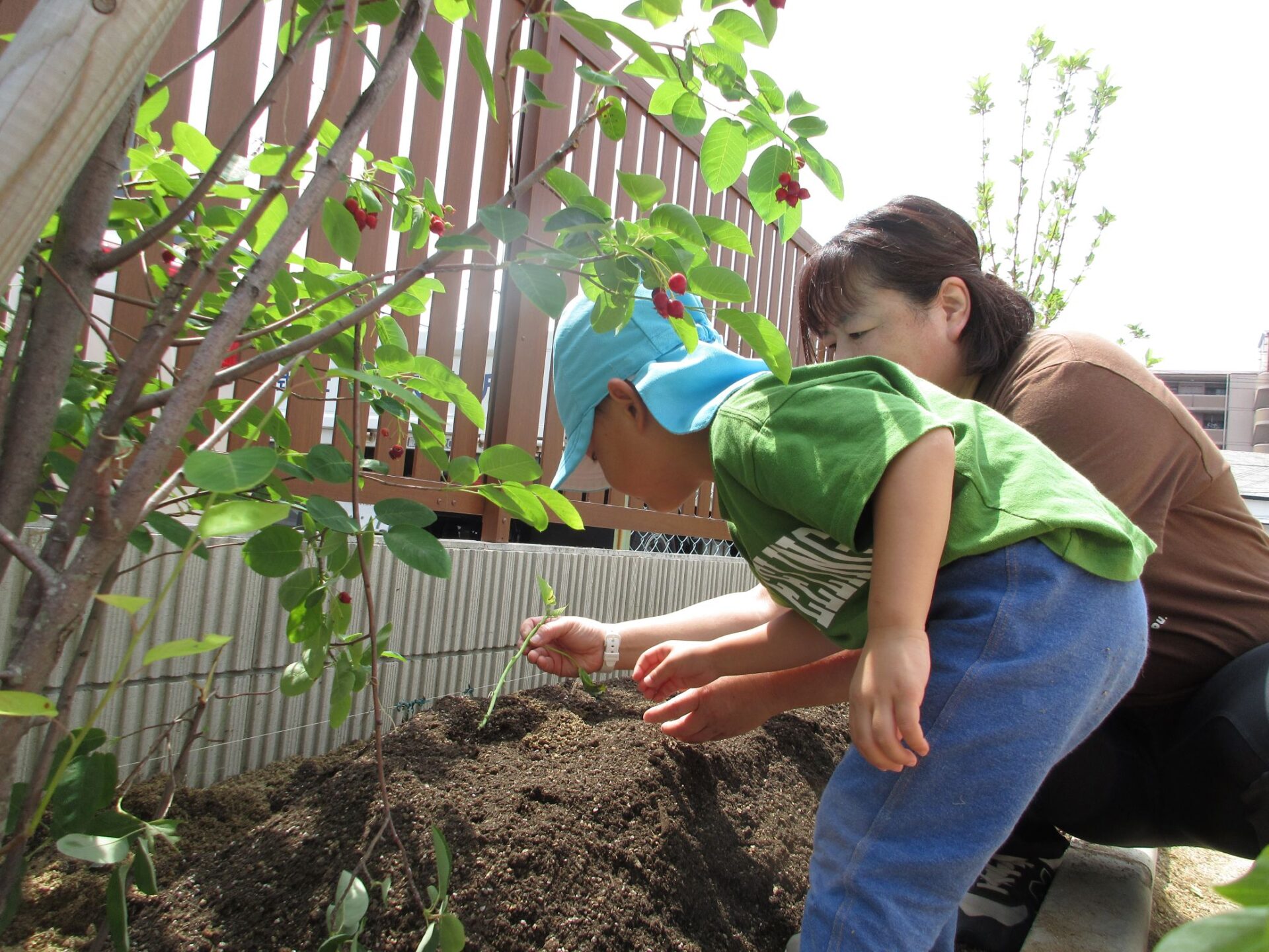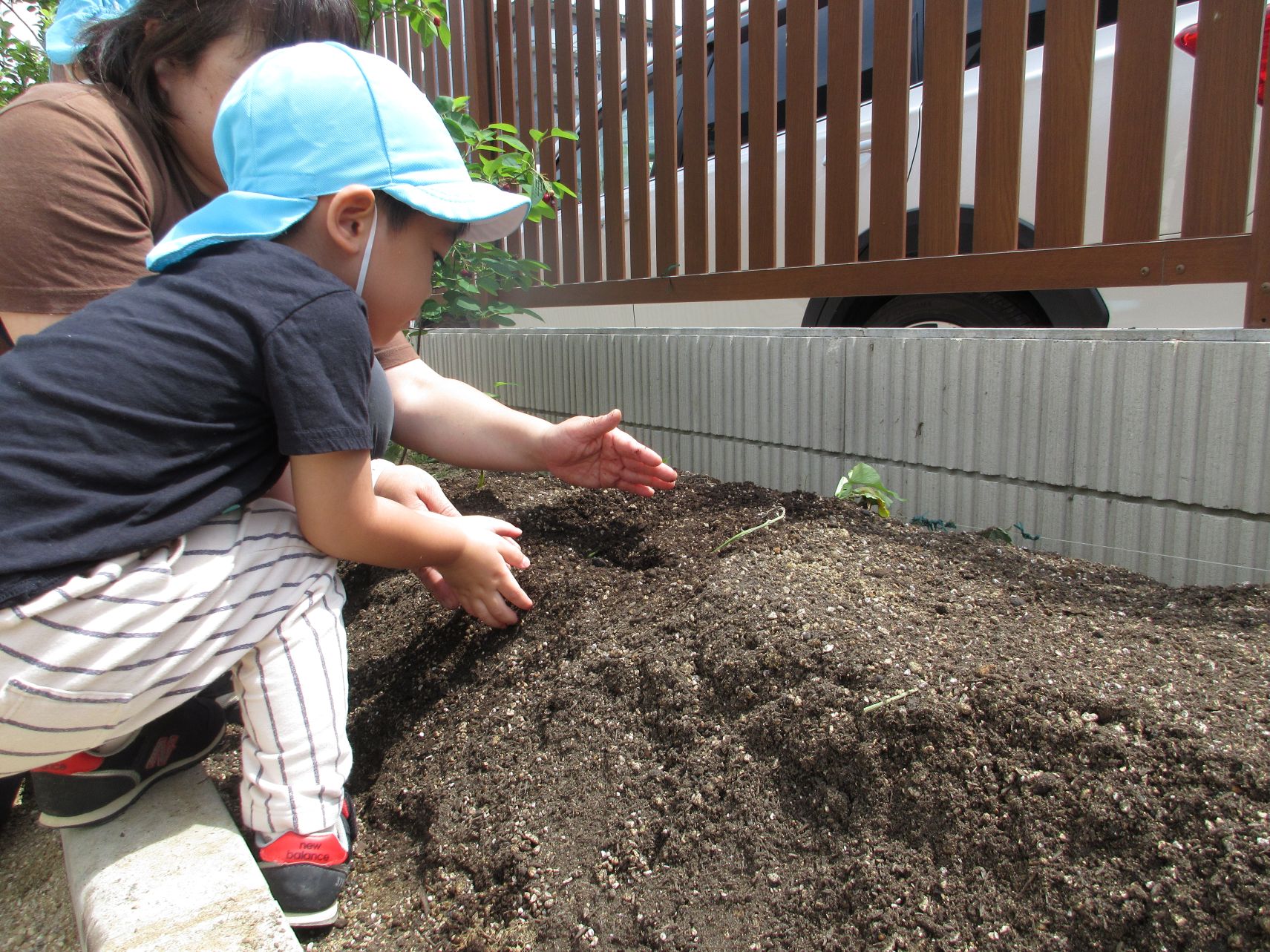 先生と一緒に「大きくな~れ!」と言いながら植えていきます♪