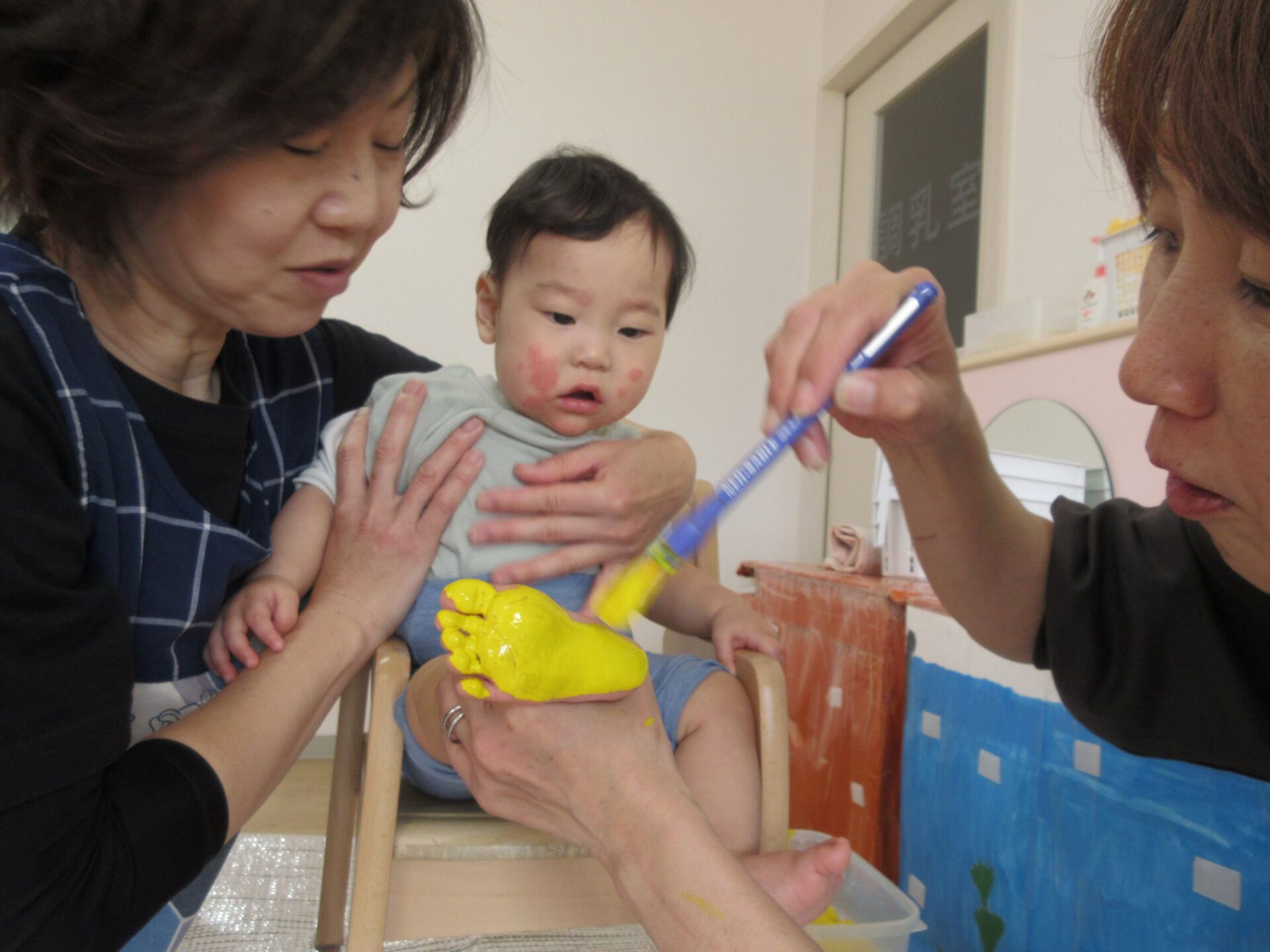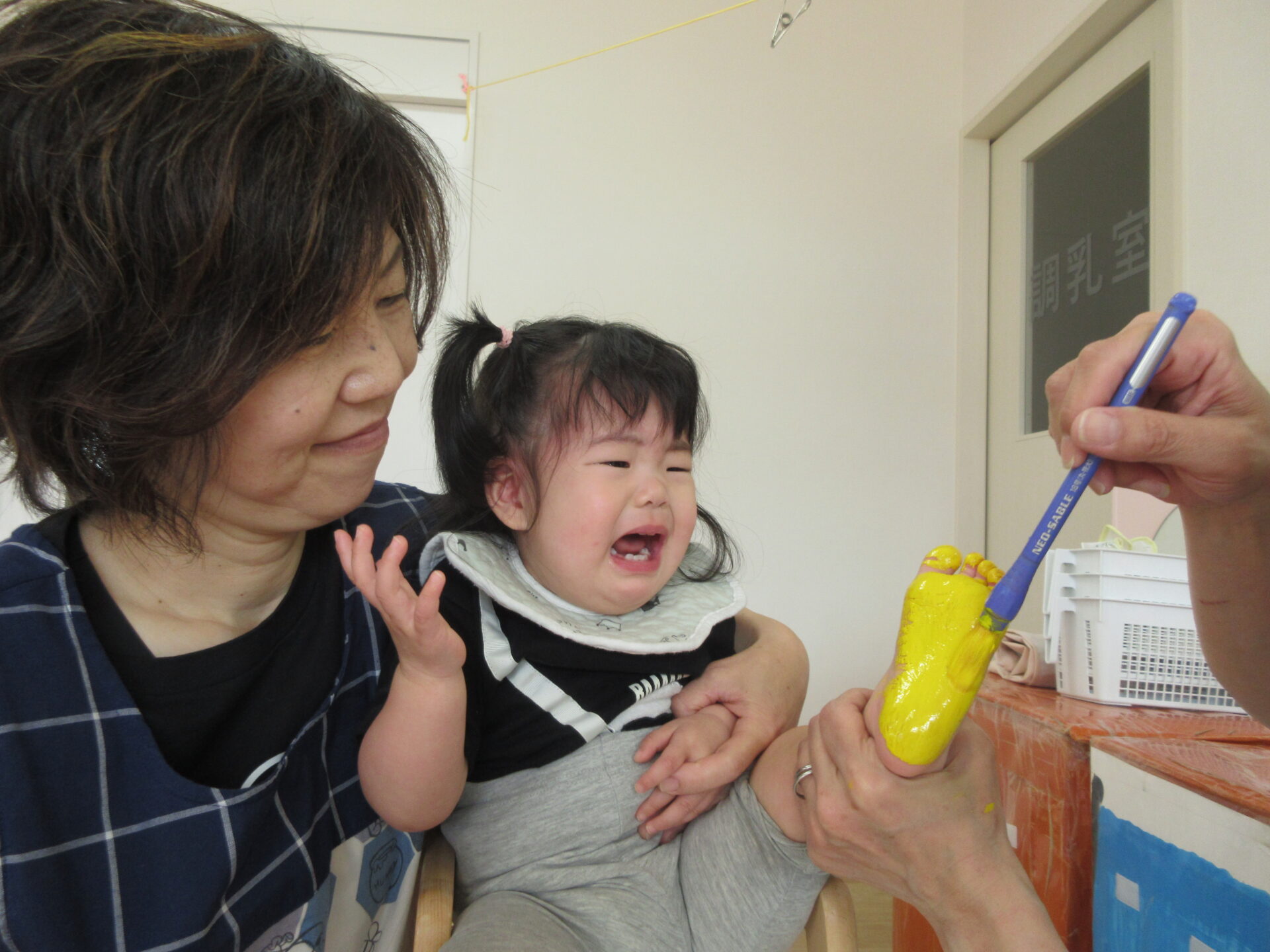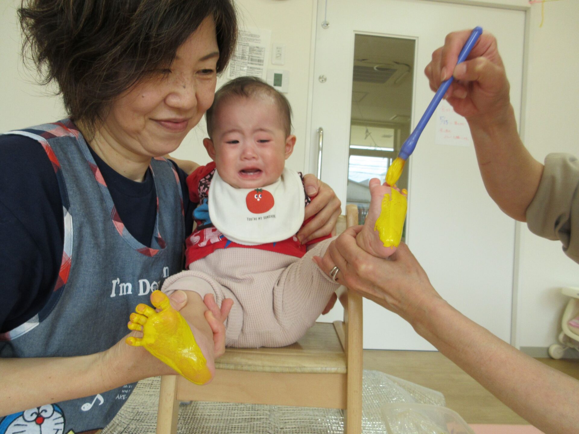 2025.06.03 お知らせ ブログ はちさんを作ったよ(0歳 うみ組) 初めて足型をとってみましたよ♪ 初めての感触にドキドキ 何だかこわいなあ・・・ あー泣いちゃった 左足もがんばって、とるよ♪ 取った足型に帽子と羽をつけて お顔を描いたら、かわいいはちの出来上がり!みんなよく頑張りました♥ 一覧へ戻る