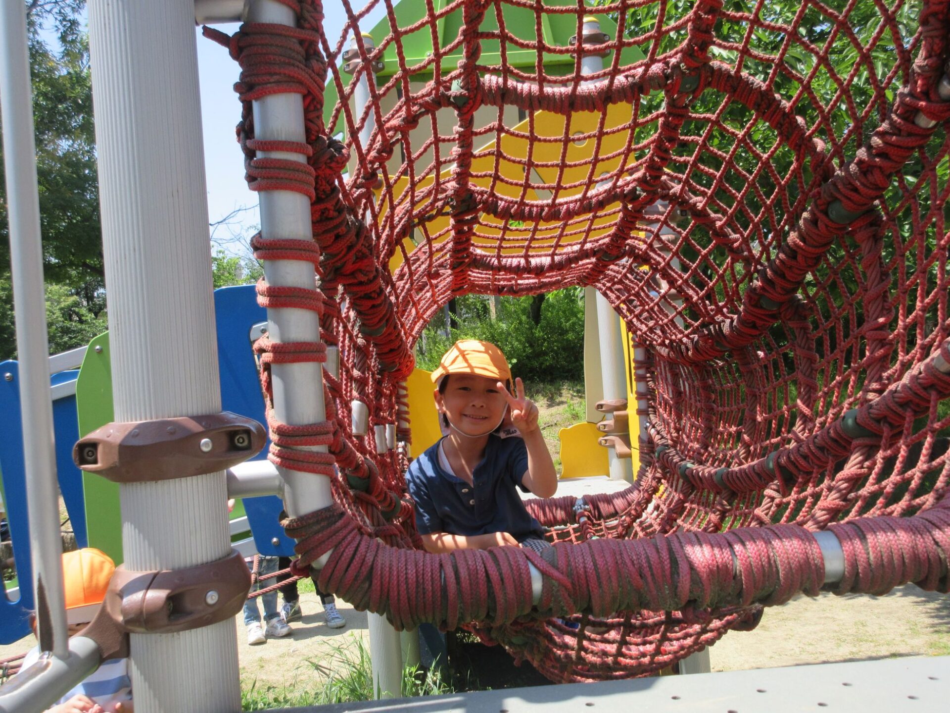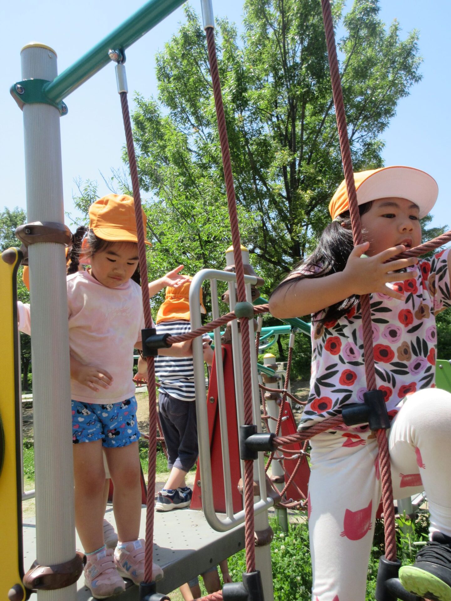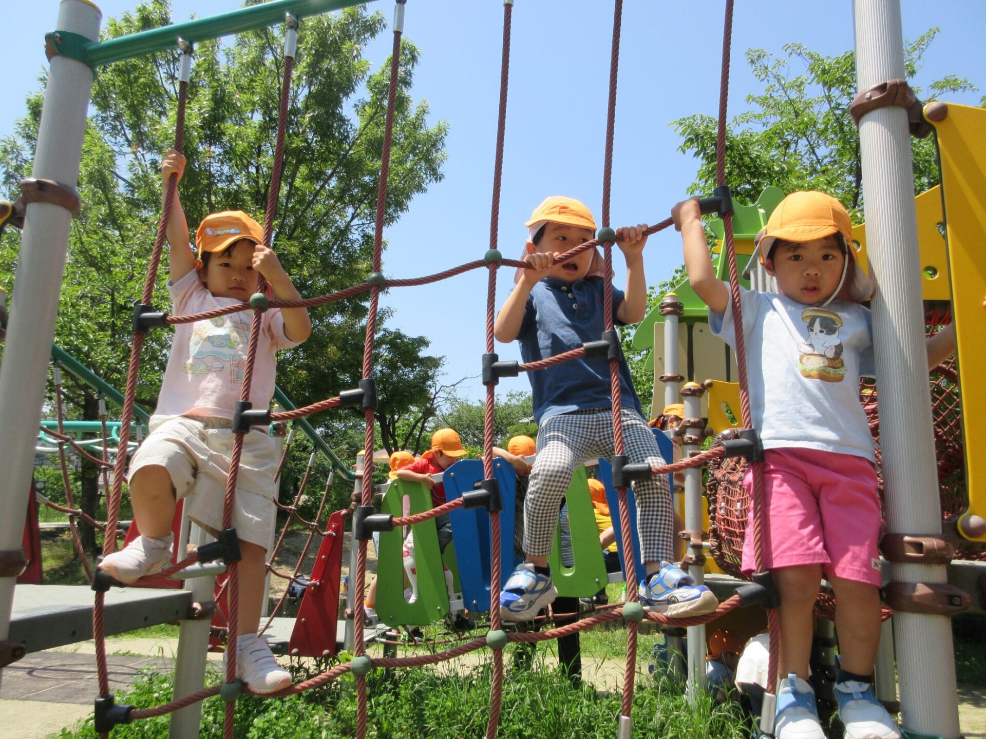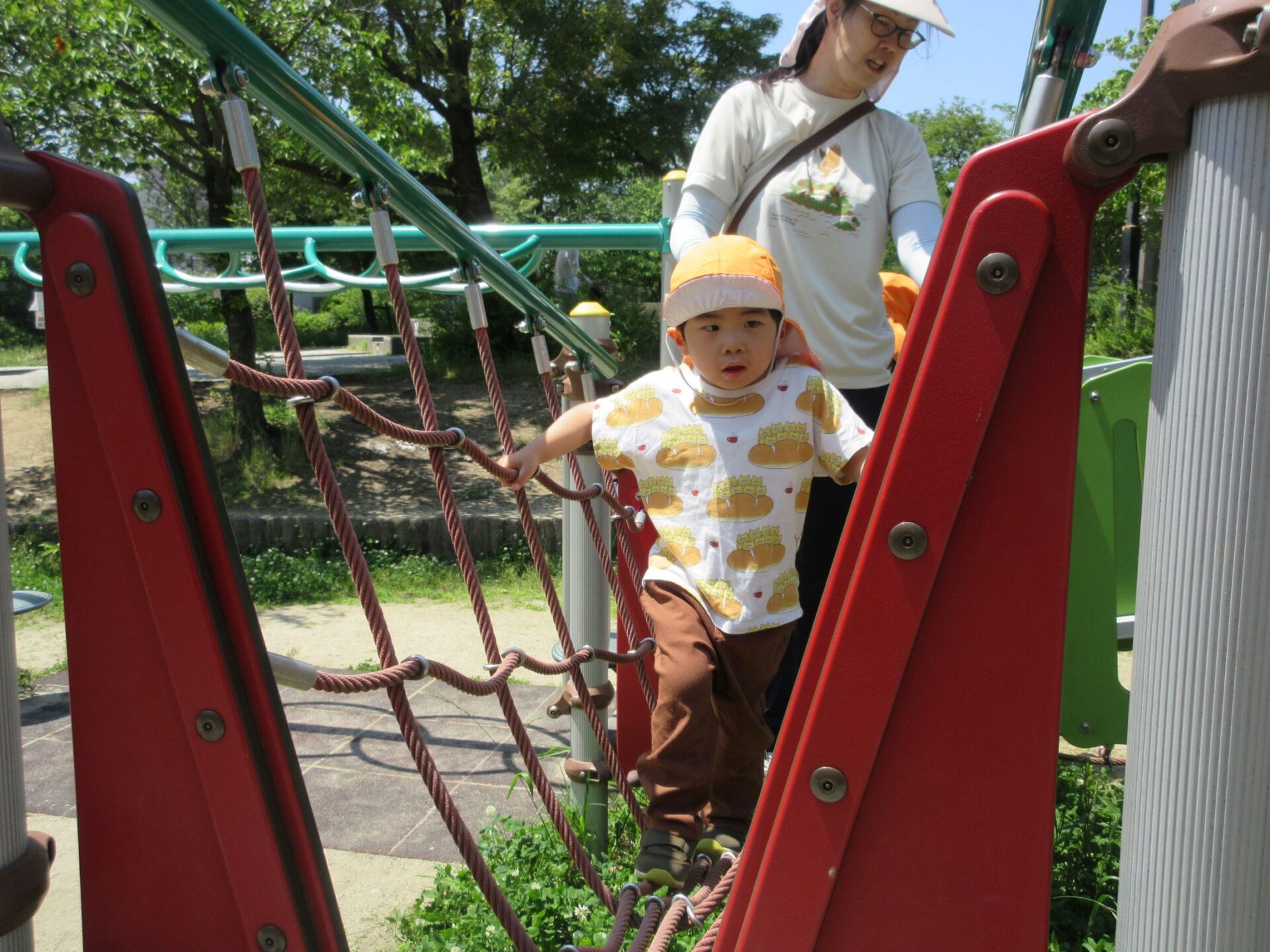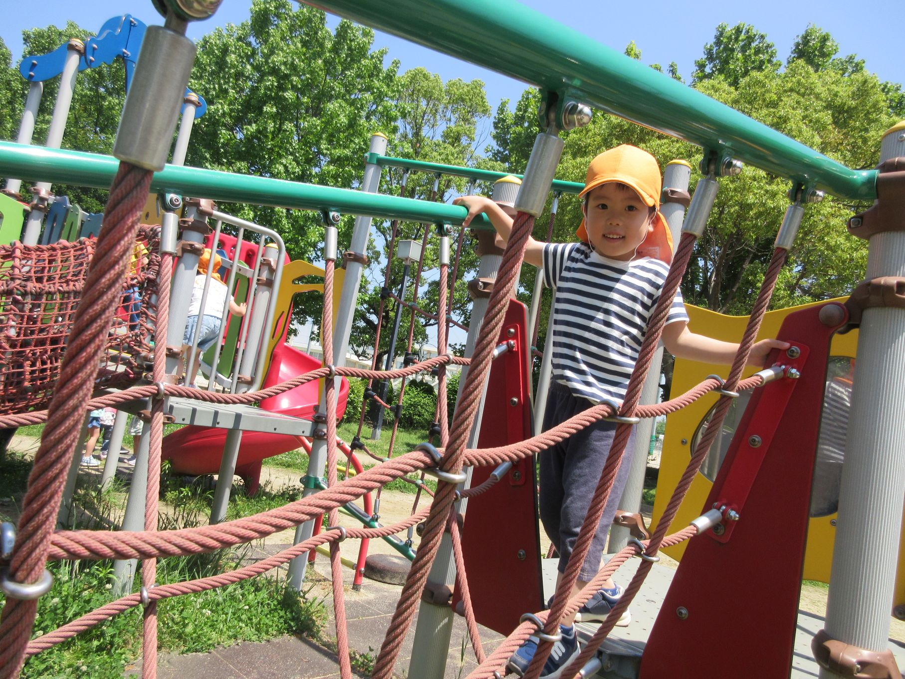 2025.06.10 お知らせ ブログ 美園公園に行ったよ♪(4歳そら組) 6月5日(木)、4歳そら組は、近くの美園公園に散歩に行きました。 この日はとても良いお天気でした。 大型の遊具で遊びます。 みんな、ずいぶん慣れてきましたね。 トンネルもあります。 それから、滑り台も。 ロープのつり橋ですね。 緑もいっぱい! とても暑かったけど、楽しかったよ。 また、遊びに来ようね♪ 一覧へ戻る