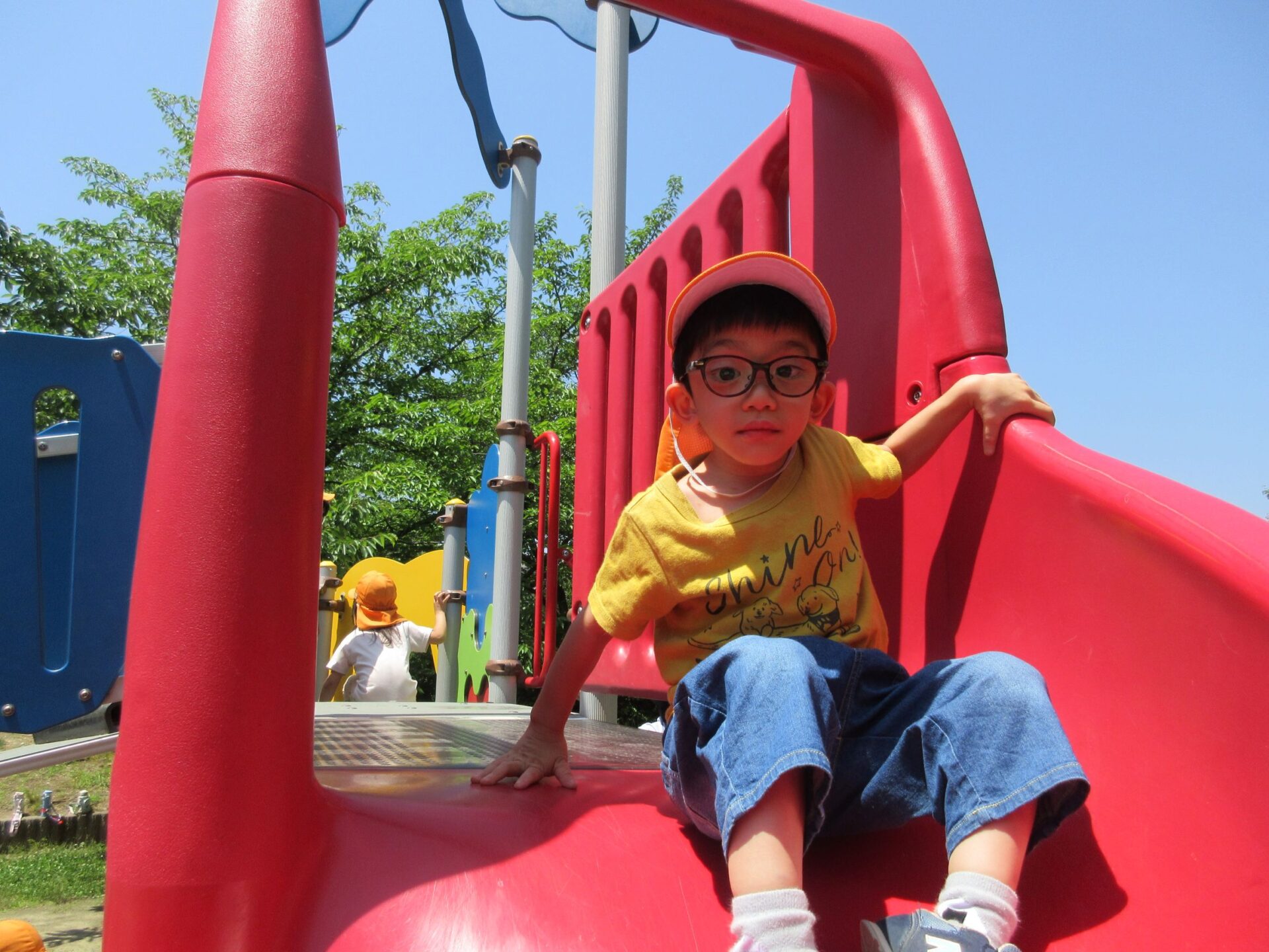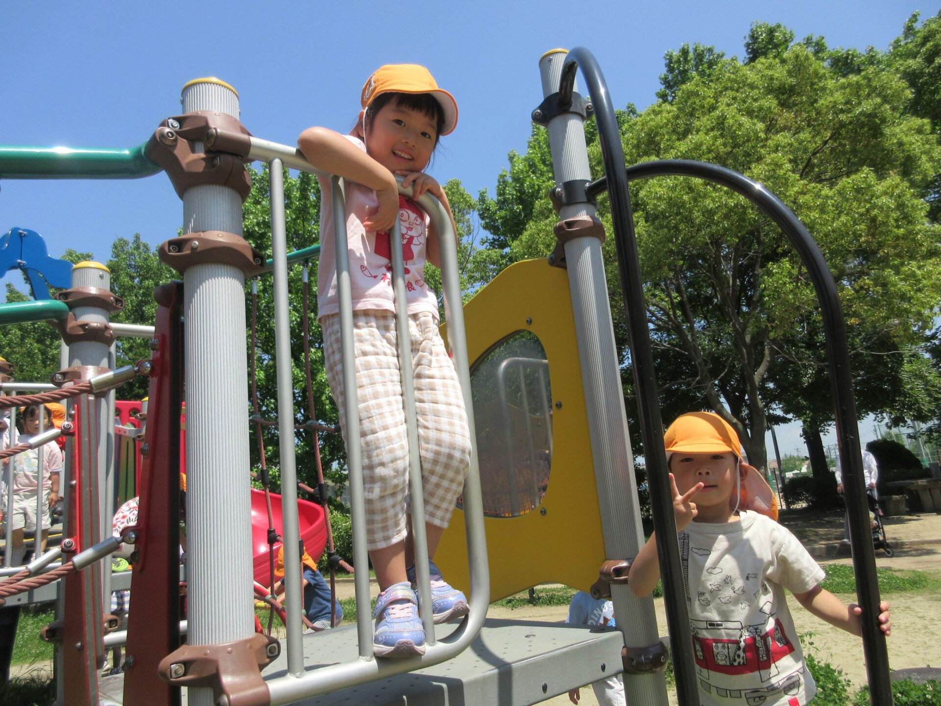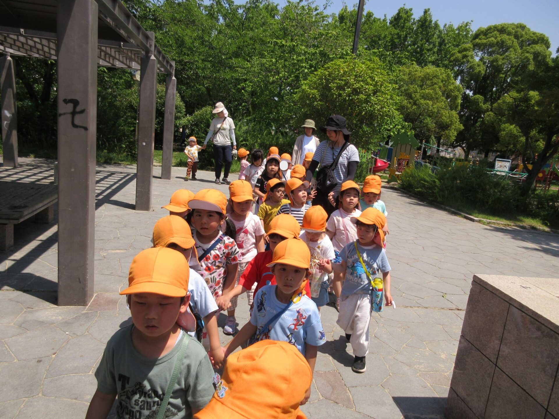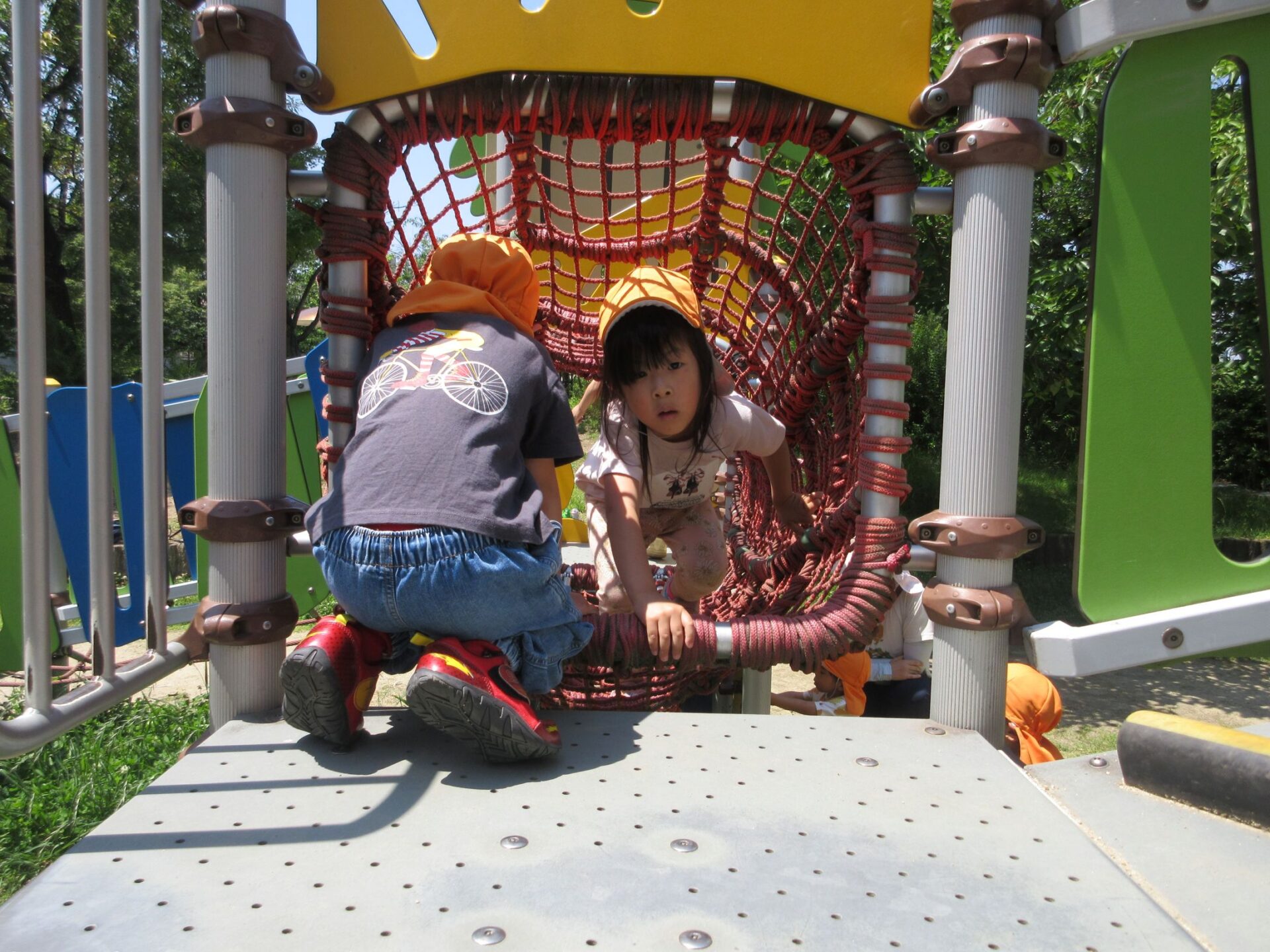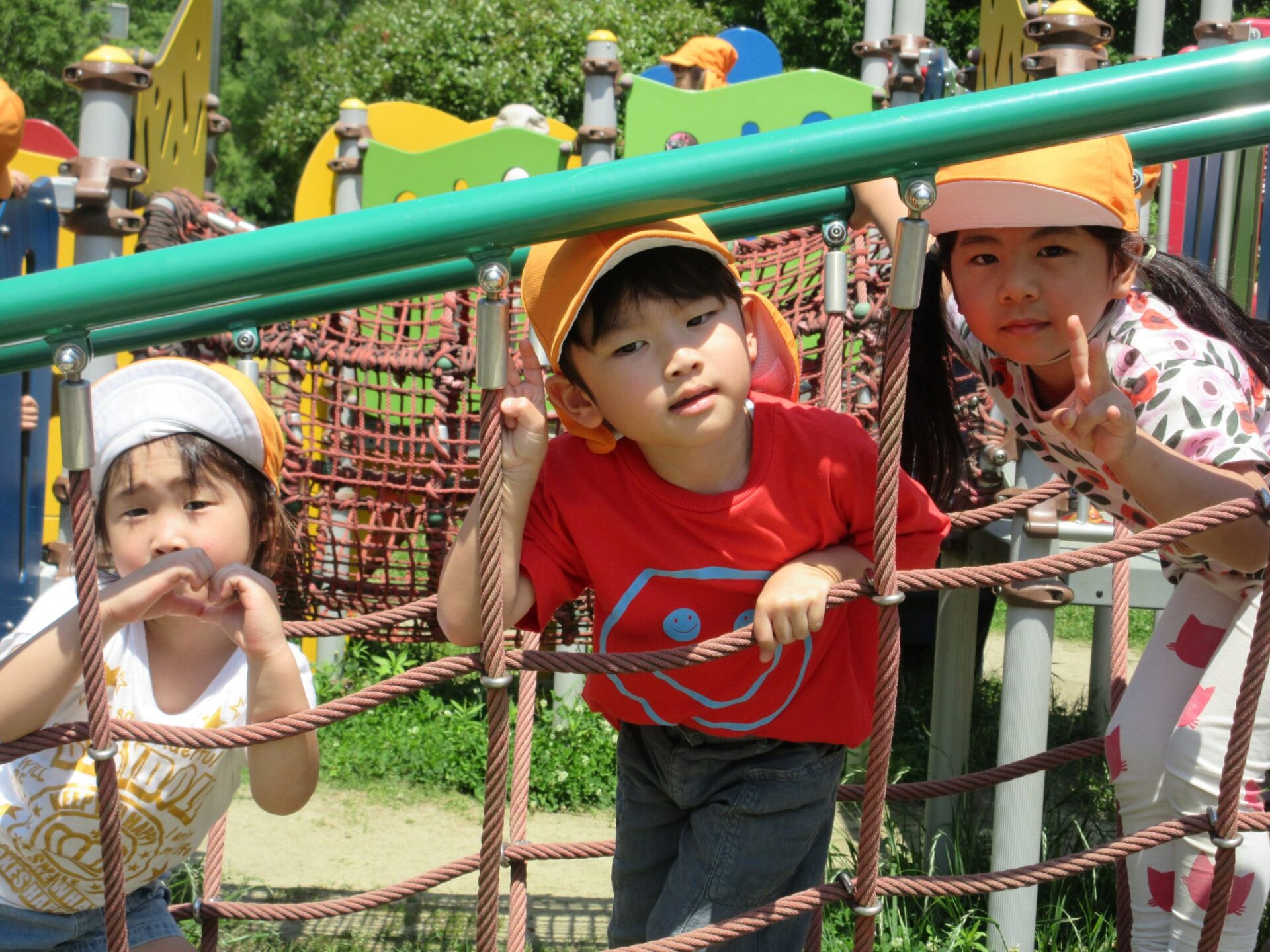 2025.06.10 お知らせ ブログ 美園公園に行ったよ♪(4歳そら組) 6月5日(木)、4歳そら組は、近くの美園公園に散歩に行きました。 この日はとても良いお天気でした。 大型の遊具で遊びます。 みんな、ずいぶん慣れてきましたね。 トンネルもあります。 それから、滑り台も。 ロープのつり橋ですね。 緑もいっぱい! とても暑かったけど、楽しかったよ。 また、遊びに来ようね♪ 一覧へ戻る