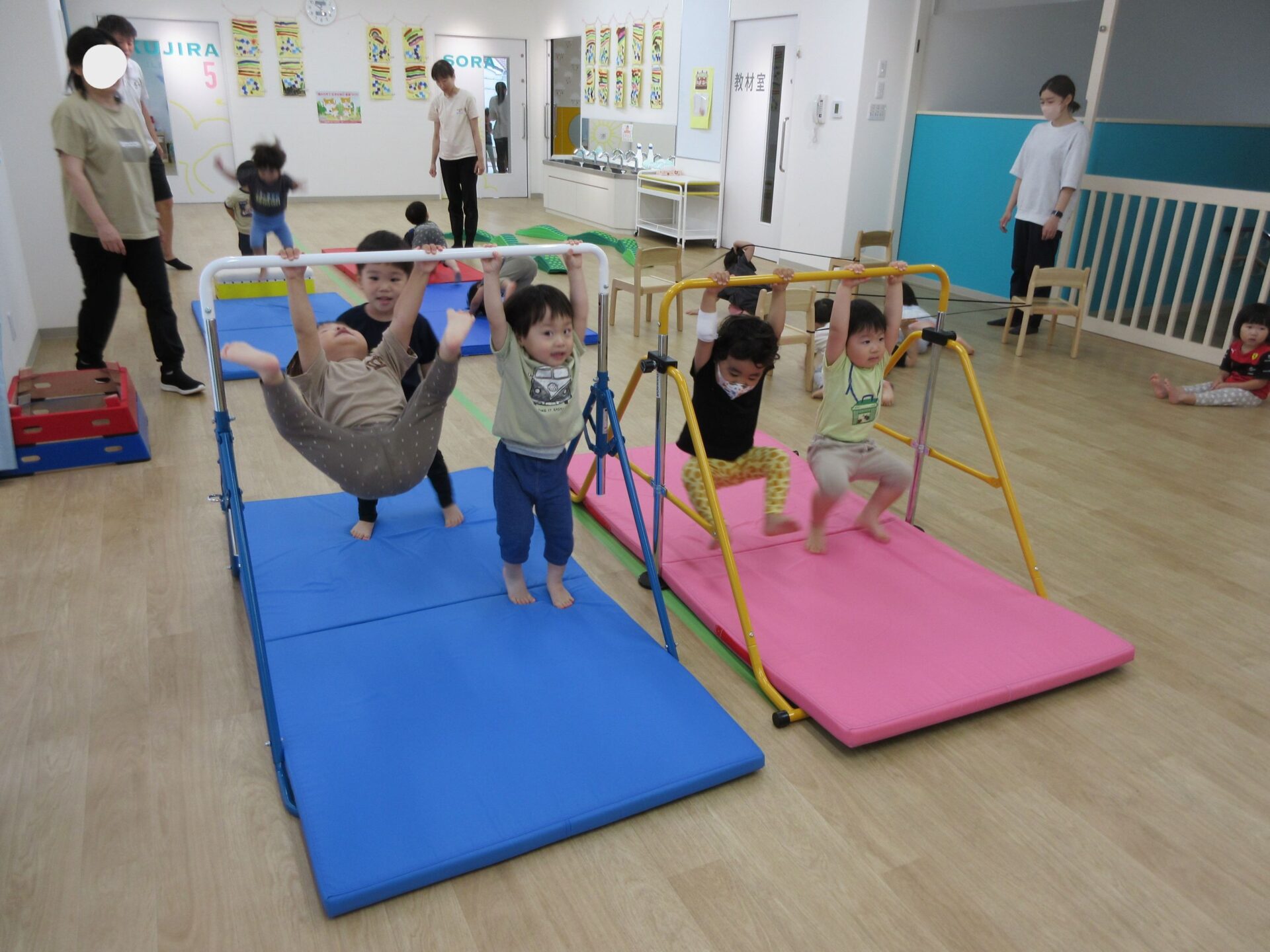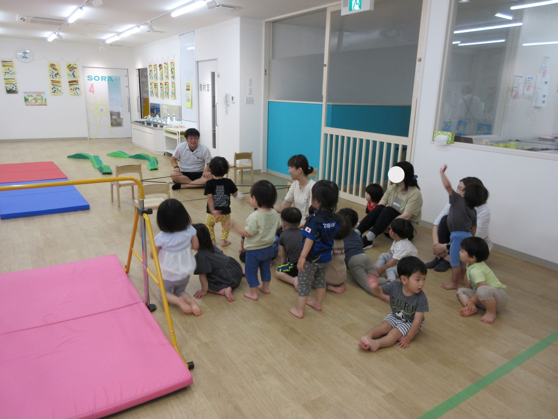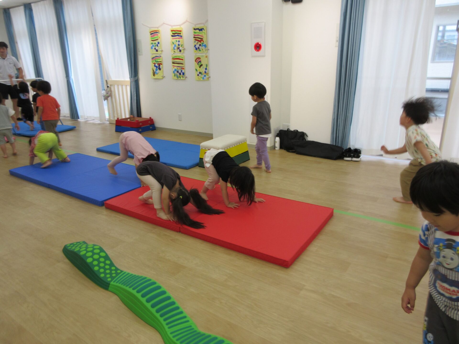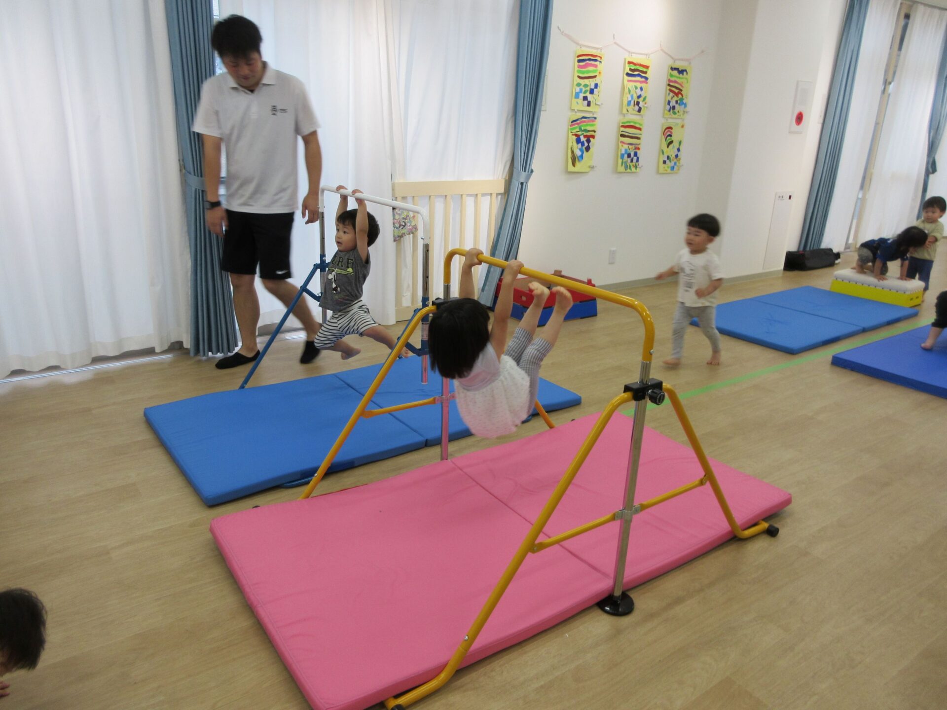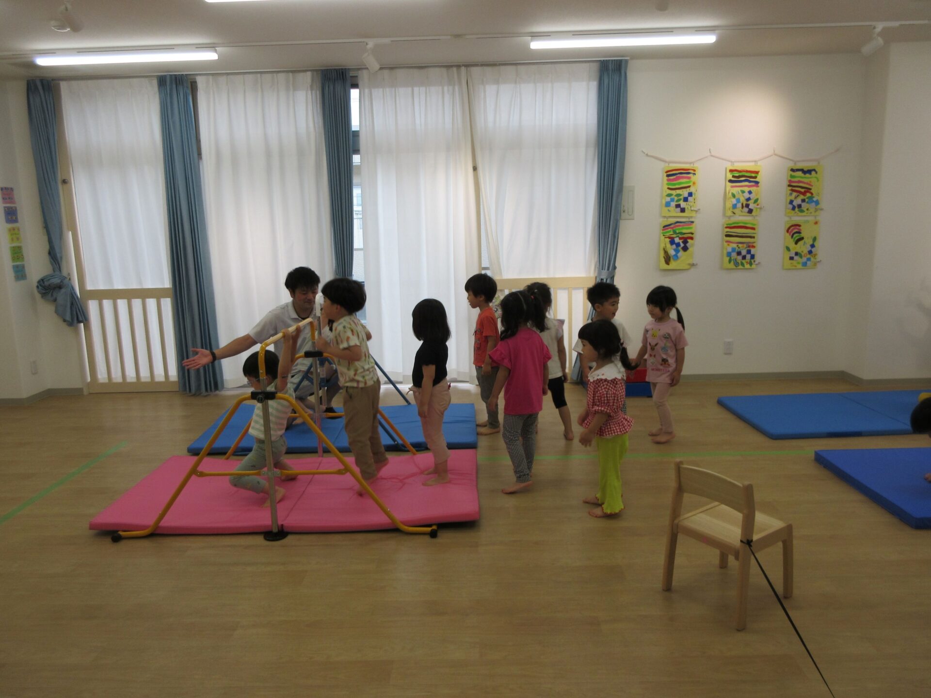 2025.06.16 お知らせ ブログ 6月の運動あそび(2歳あめ組、3歳にじ組) 6月11日(水)、朝から村上先生に来ていただいて運動遊び教室をしました。 前半は、2歳あめ組です。 鉄棒遊びの説明を聞いています。 ゴムの障害物をくぐって進みます。 かなりのスピードでした!「みんな、速いね♪」 バランスをとりながら一本橋渡り。マットは、後ろ向きでのくまさん歩き、跳び箱からのジャンプ! 3回目とは思えない上手さです! しっかりと、つかまって・・。 脚をバタバタ。 何度も楽しみます。 楽しくできていましたよ。 先生もお手本を見せてくれました。すごく注目です。 後半の3歳にじ組がスタート。 お友だちがお手本です。 ゴムの障害物を跳び越えます。 上手に跳び越えています。 ちゃんと並んで、順番を待ちます。 しっかりとバランスがとれていますね。 それっ!ジャ~ンプ! しっかりとぶらさがれていますよ。 みんなの前で、お手本です。 そして、そのあと、再開。 ジャ~ンプ! なんども繰り返して、楽しみました。 一覧へ戻る