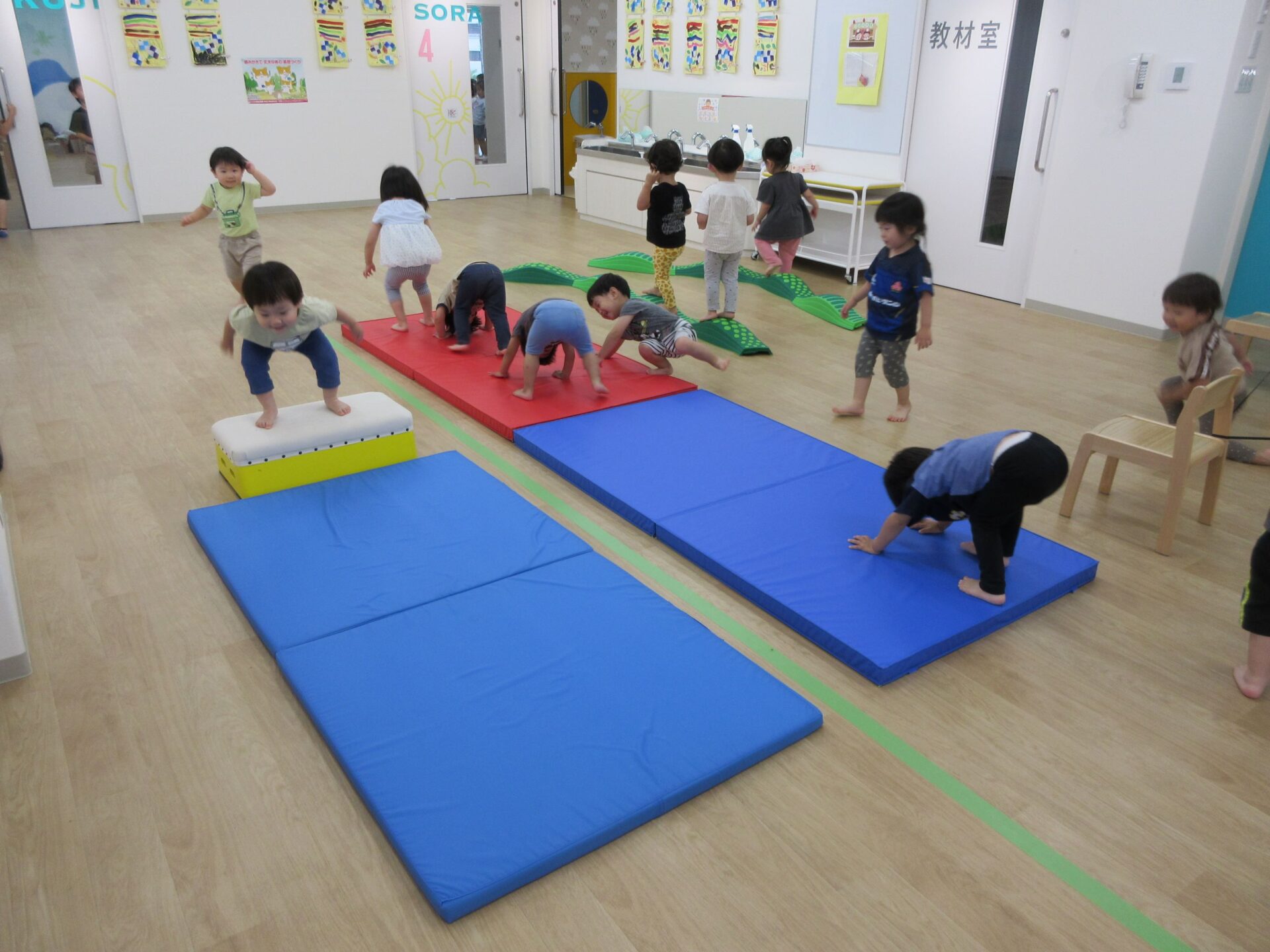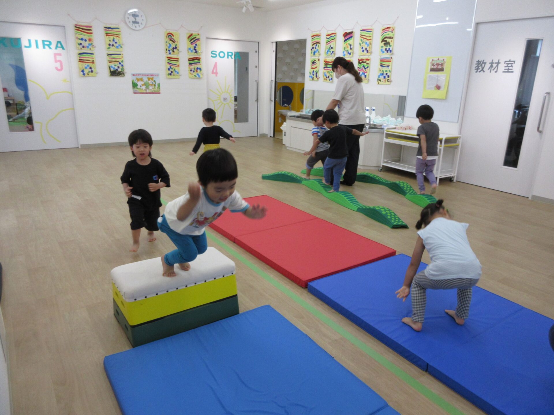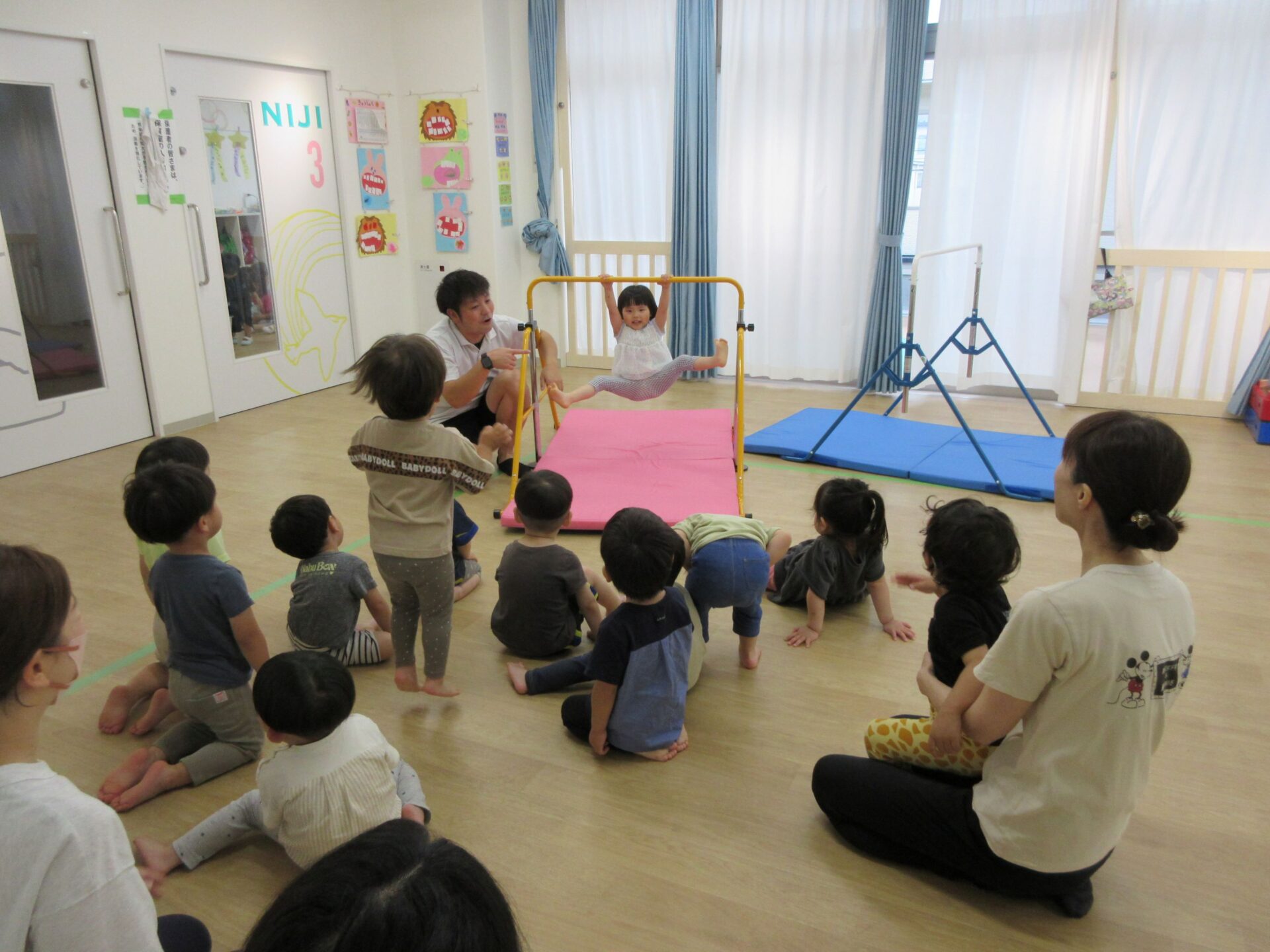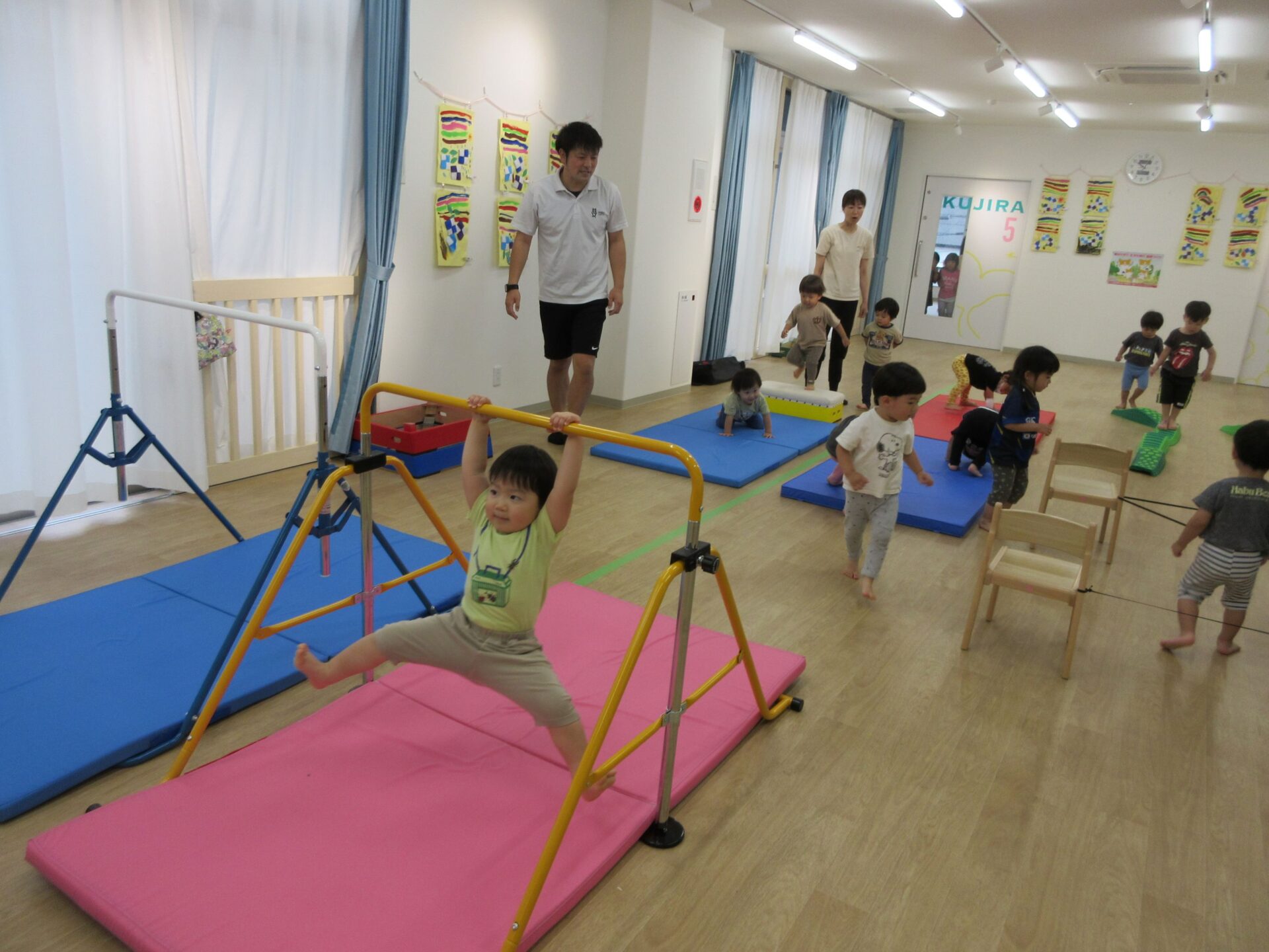 2025.06.16 お知らせ ブログ 6月の運動あそび(2歳あめ組、3歳にじ組) 6月11日(水)、朝から村上先生に来ていただいて運動遊び教室をしました。 前半は、2歳あめ組です。 鉄棒遊びの説明を聞いています。 ゴムの障害物をくぐって進みます。 かなりのスピードでした!「みんな、速いね♪」 バランスをとりながら一本橋渡り。マットは、後ろ向きでのくまさん歩き、跳び箱からのジャンプ! 3回目とは思えない上手さです! しっかりと、つかまって・・。 脚をバタバタ。 何度も楽しみます。 楽しくできていましたよ。 先生もお手本を見せてくれました。すごく注目です。 後半の3歳にじ組がスタート。 お友だちがお手本です。 ゴムの障害物を跳び越えます。 上手に跳び越えています。 ちゃんと並んで、順番を待ちます。 しっかりとバランスがとれていますね。 それっ!ジャ~ンプ! しっかりとぶらさがれていますよ。 みんなの前で、お手本です。 そして、そのあと、再開。 ジャ~ンプ! なんども繰り返して、楽しみました。 一覧へ戻る
