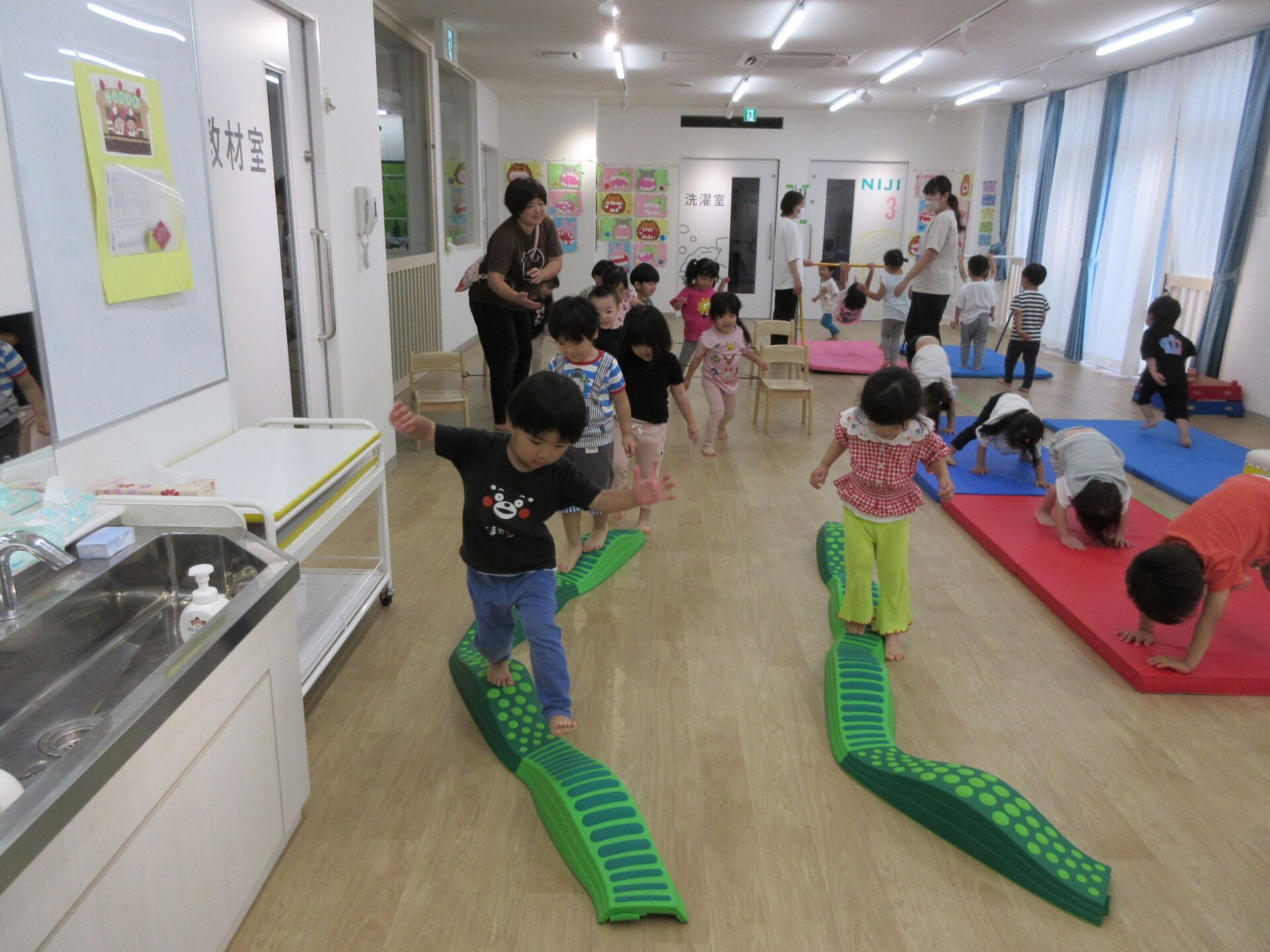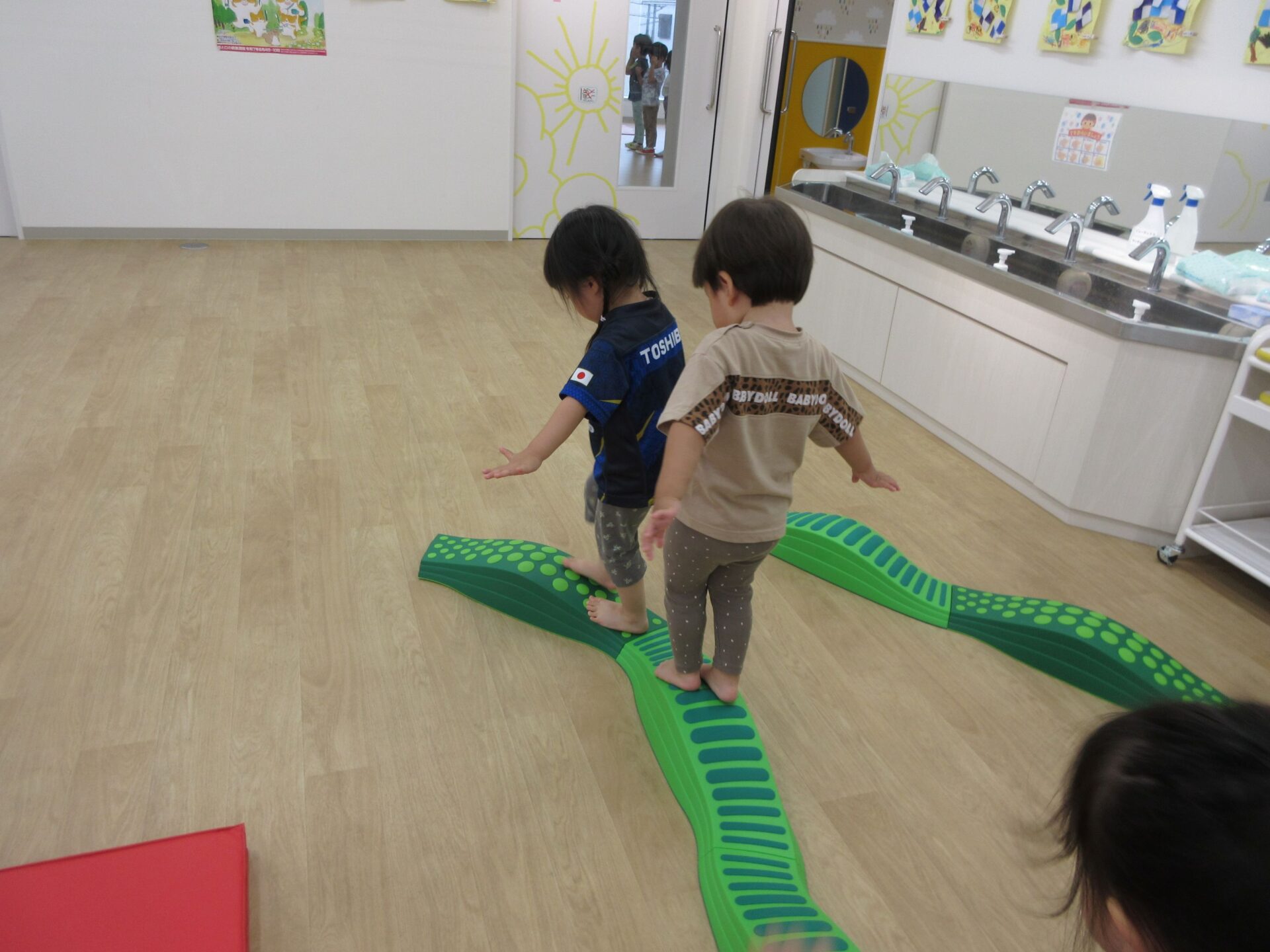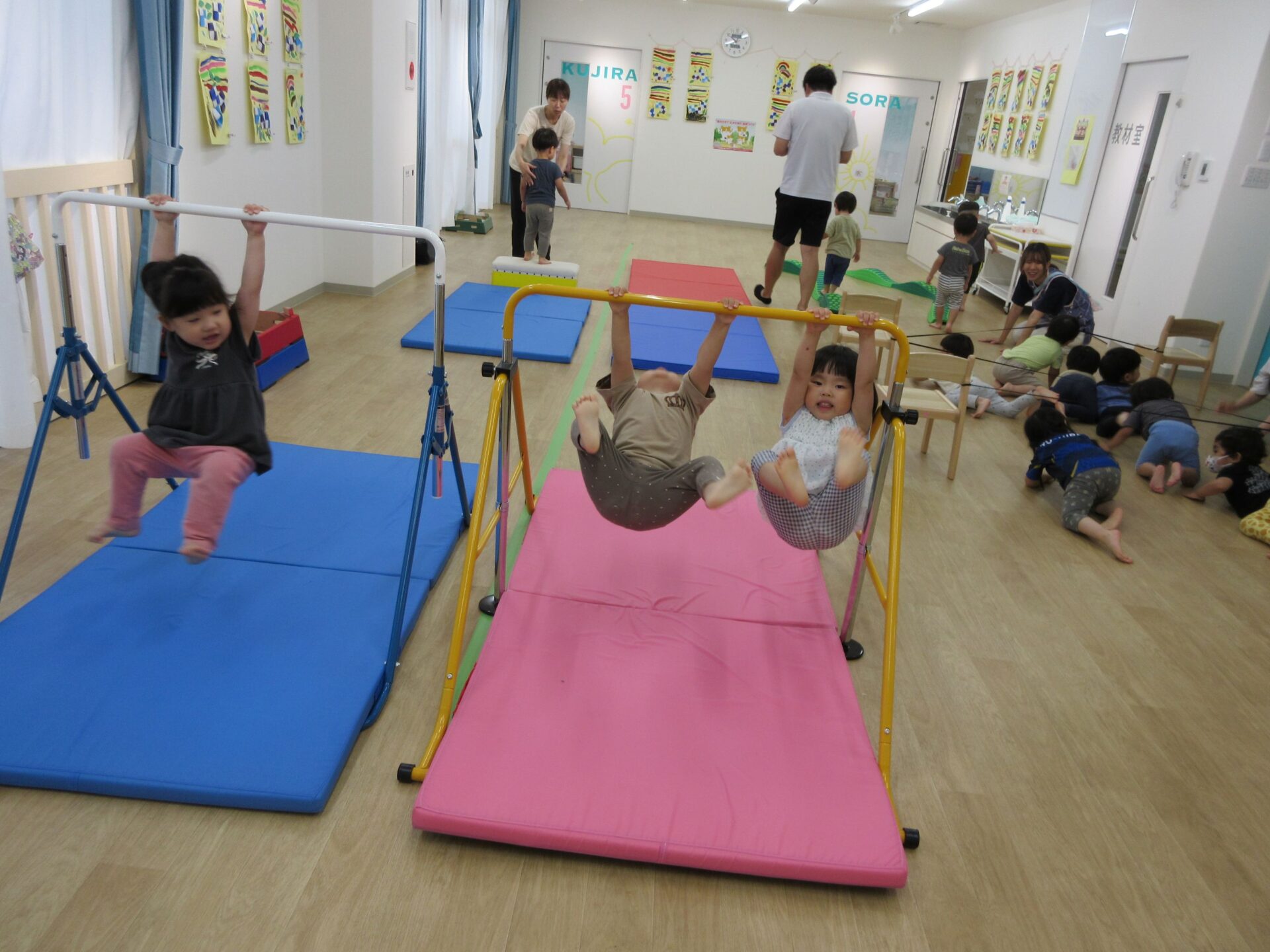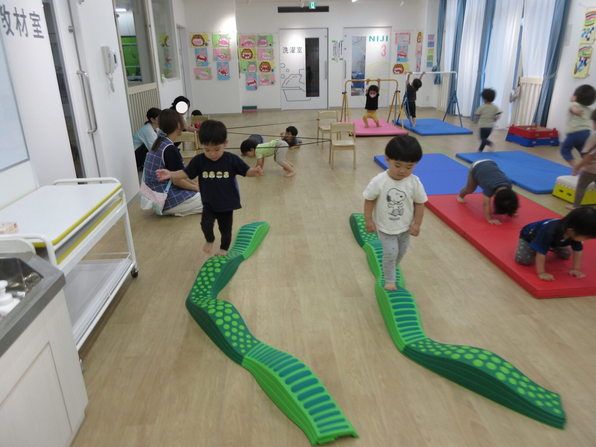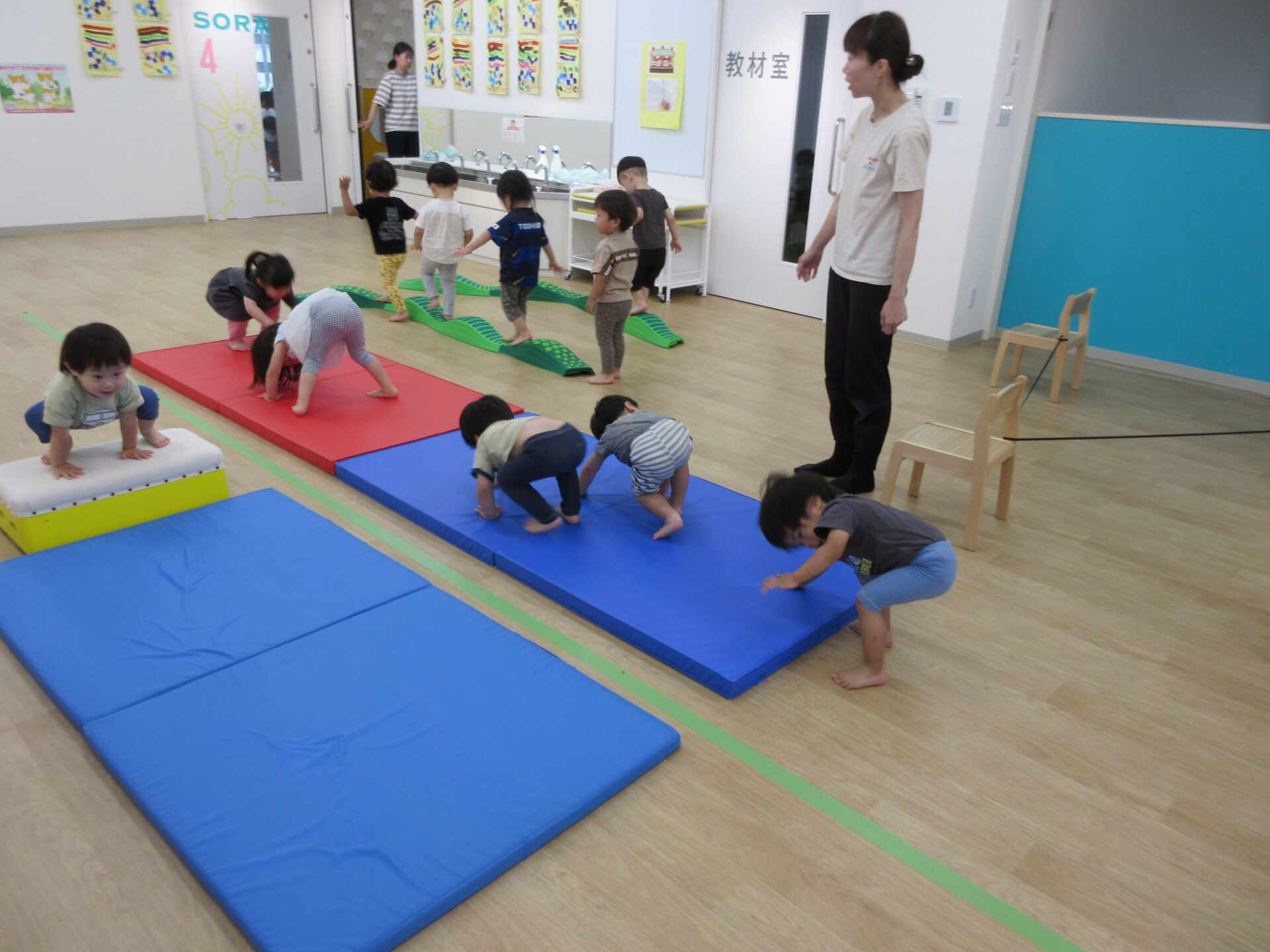 2025.06.16 お知らせ ブログ 6月の運動あそび(2歳あめ組、3歳にじ組) 6月11日(水)、朝から村上先生に来ていただいて運動遊び教室をしました。 前半は、2歳あめ組です。 鉄棒遊びの説明を聞いています。 ゴムの障害物をくぐって進みます。 かなりのスピードでした!「みんな、速いね♪」 バランスをとりながら一本橋渡り。マットは、後ろ向きでのくまさん歩き、跳び箱からのジャンプ! 3回目とは思えない上手さです! しっかりと、つかまって・・。 脚をバタバタ。 何度も楽しみます。 楽しくできていましたよ。 先生もお手本を見せてくれました。すごく注目です。 後半の3歳にじ組がスタート。 お友だちがお手本です。 ゴムの障害物を跳び越えます。 上手に跳び越えています。 ちゃんと並んで、順番を待ちます。 しっかりとバランスがとれていますね。 それっ!ジャ~ンプ! しっかりとぶらさがれていますよ。 みんなの前で、お手本です。 そして、そのあと、再開。 ジャ~ンプ! なんども繰り返して、楽しみました。 一覧へ戻る