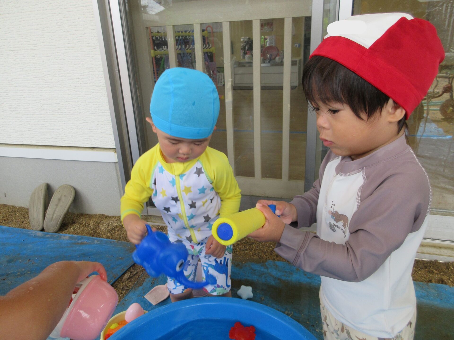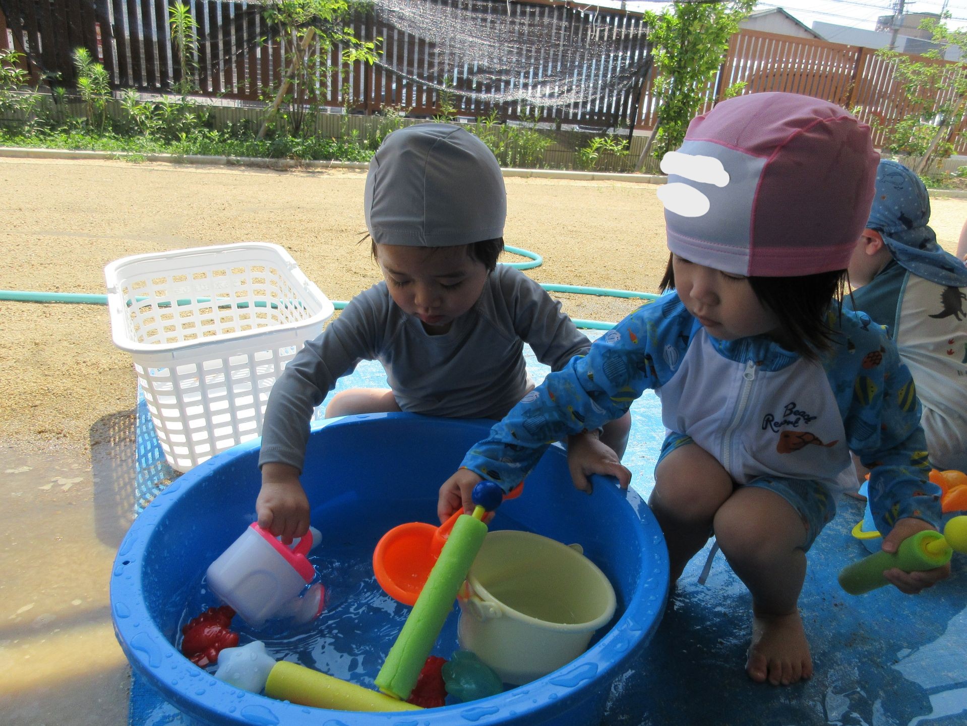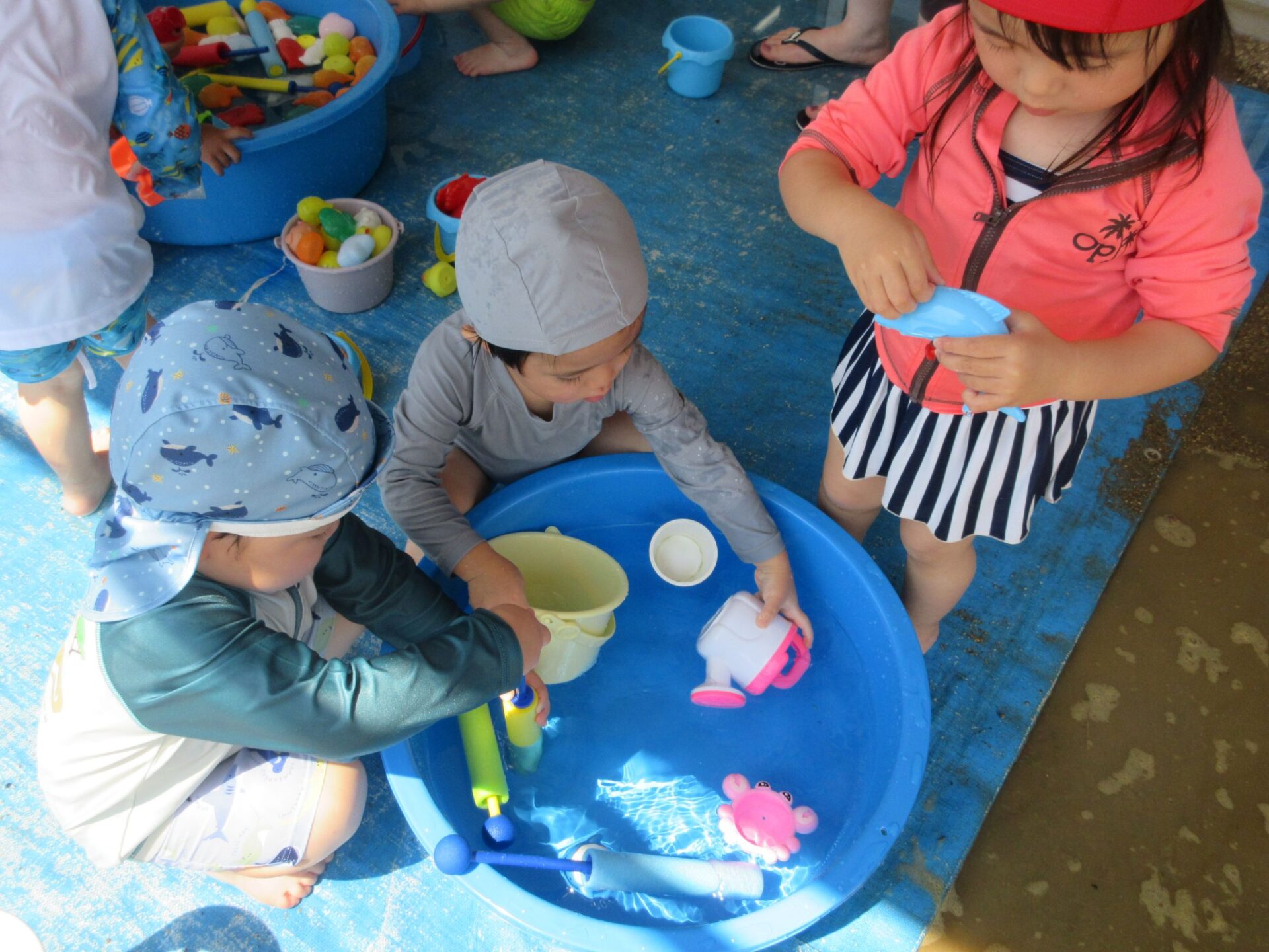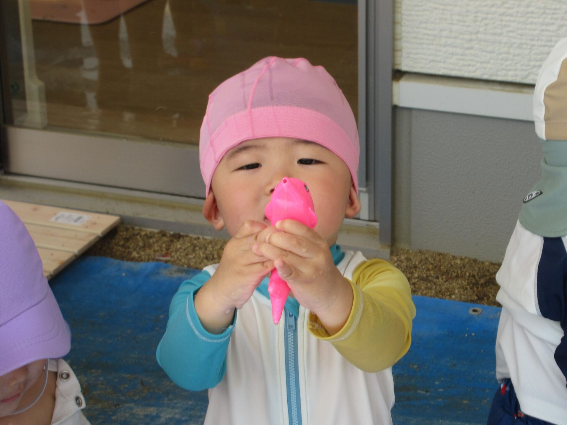 2025.07.11 お知らせ ブログ 夏が来たよ!🐳(2歳 あめ組) 6月下旬、待ちに待った水遊び、プール遊びが始まりました! みんな水着に着替えて、水遊び開始!! 水鉄砲をしたり・・・ 水をすくってみたり・・・ 友だちと仲良く遊んでいます♪ いろんなおもちゃの中から、自分の好きな物を選んで遊んでいました☆ あれっ・・、これはこちらを狙っていますね😀(イルカの水鉄砲) 久しぶりの水遊び。ちょっぴりドキドキしたみたいで、先生と一緒に楽しむ姿も見られました! まだまだ夏は始まったはかりなので、これから水遊びやプール遊びなどの夏の遊びを、いーっぱい楽しんでいきたいと思います✨ 一覧へ戻る