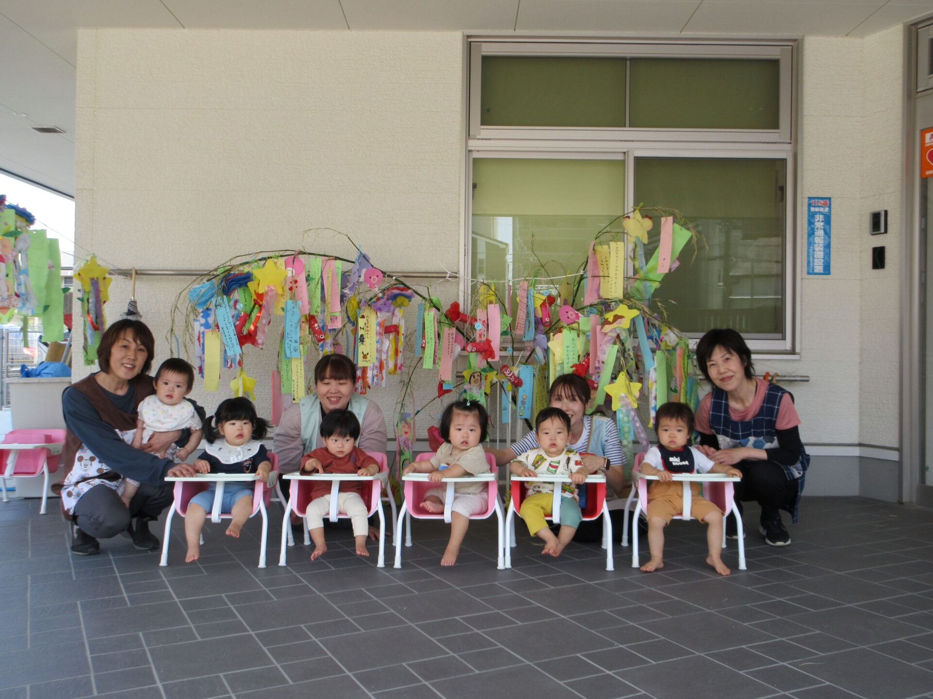0歳うみ組。どのクラスも、みんながカメラの方を向くのは、とても難しい・・・。