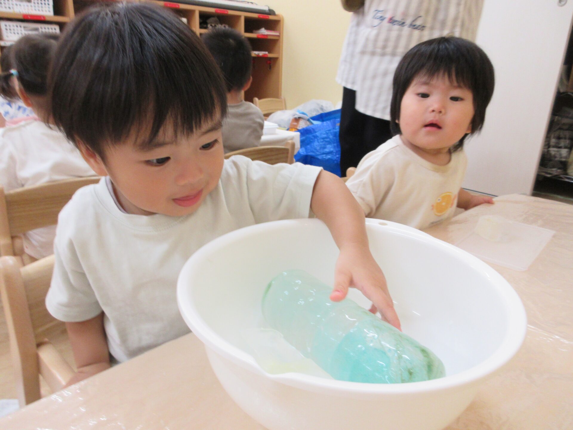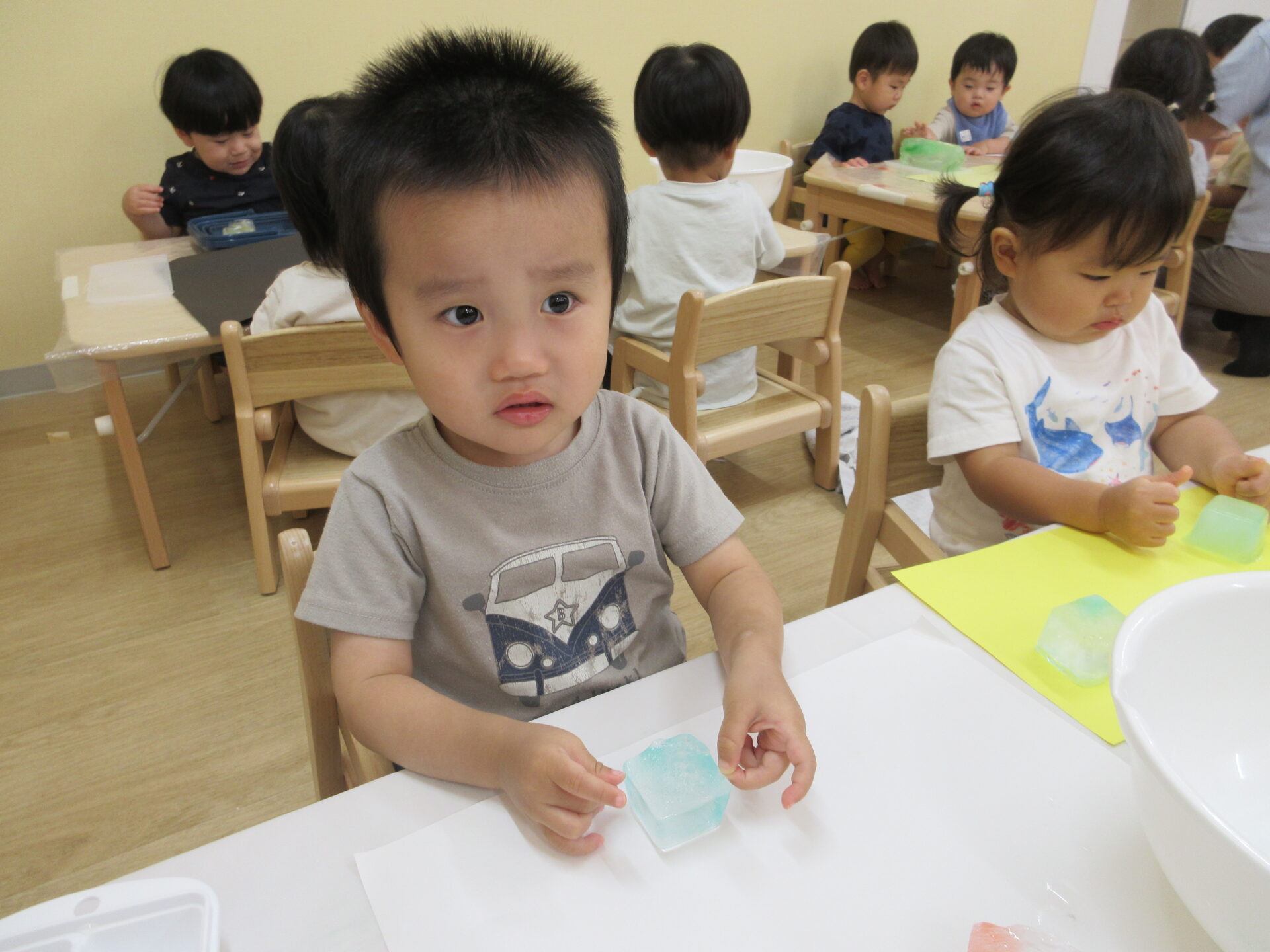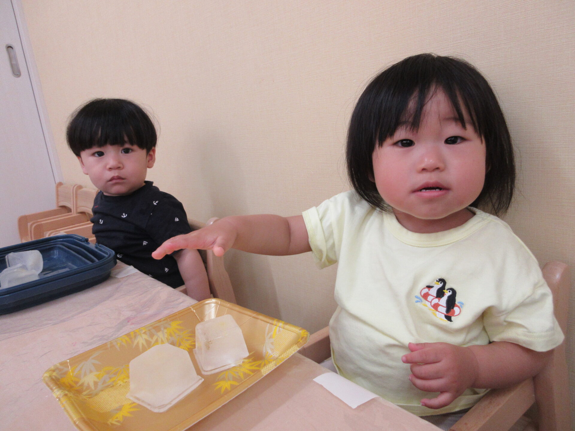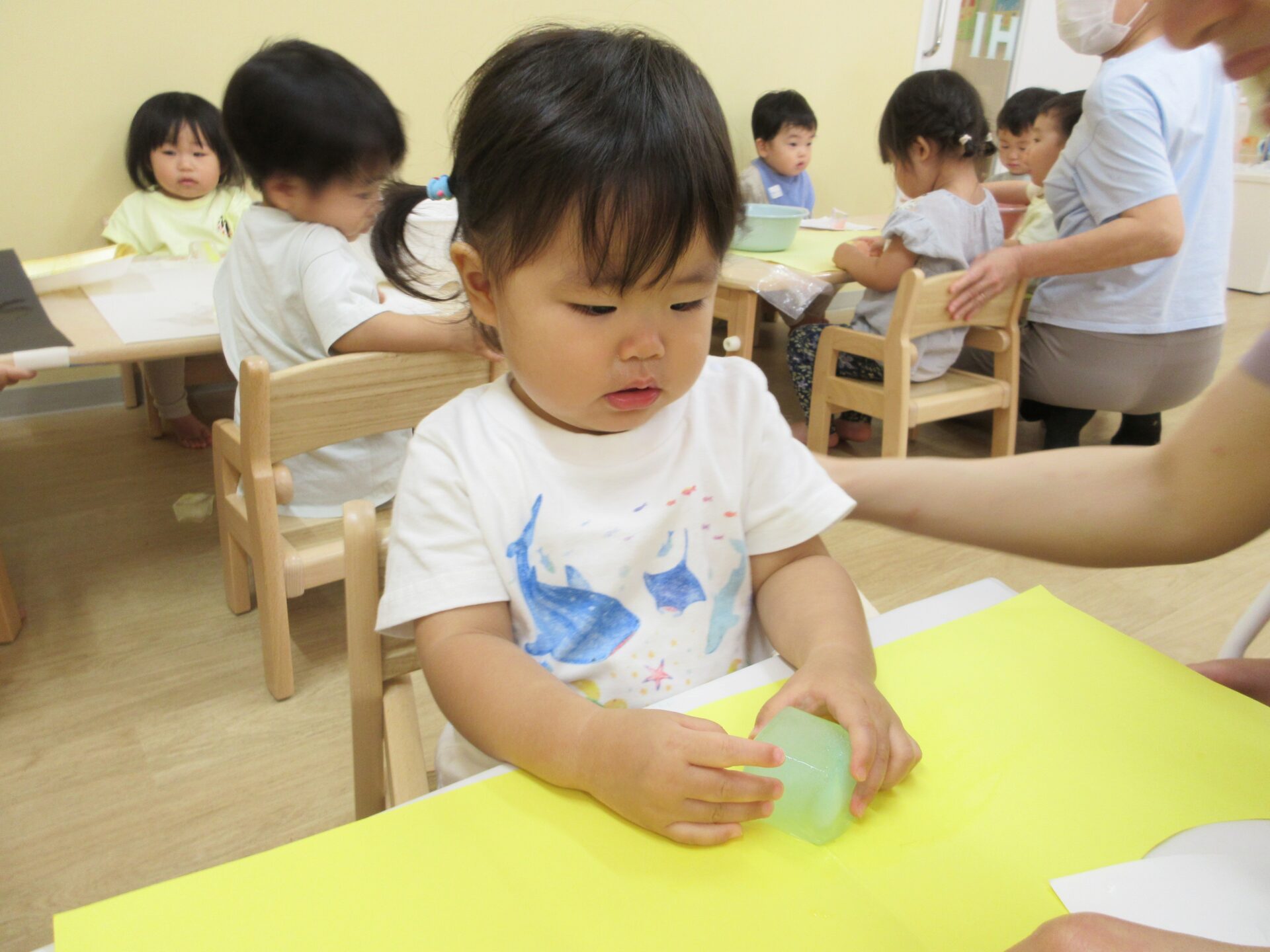 感触遊び☆氷・寒天 (1歳 だいちぐみ)