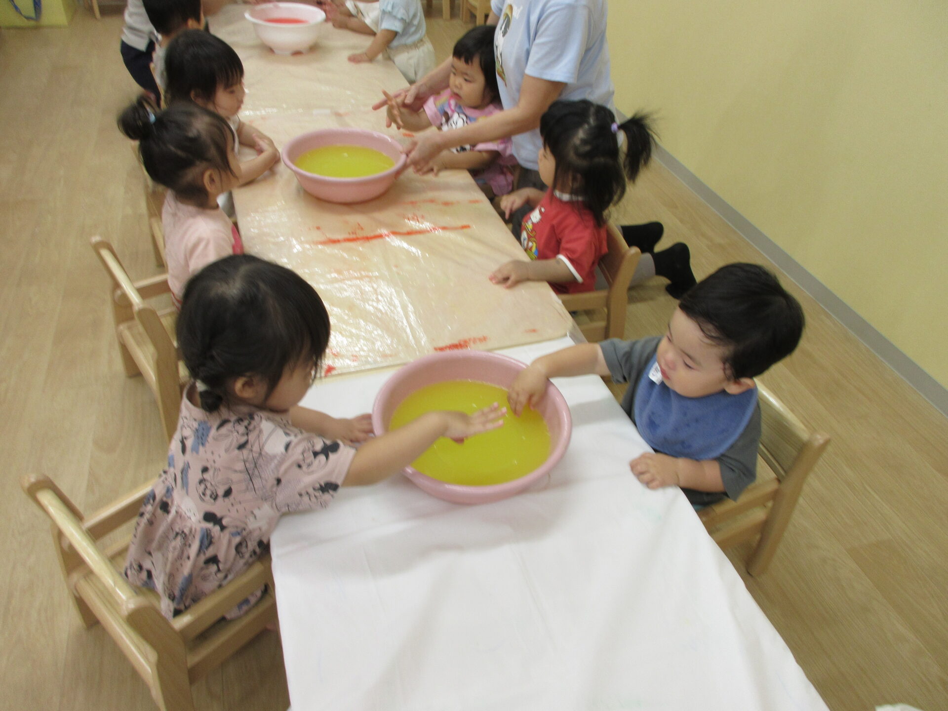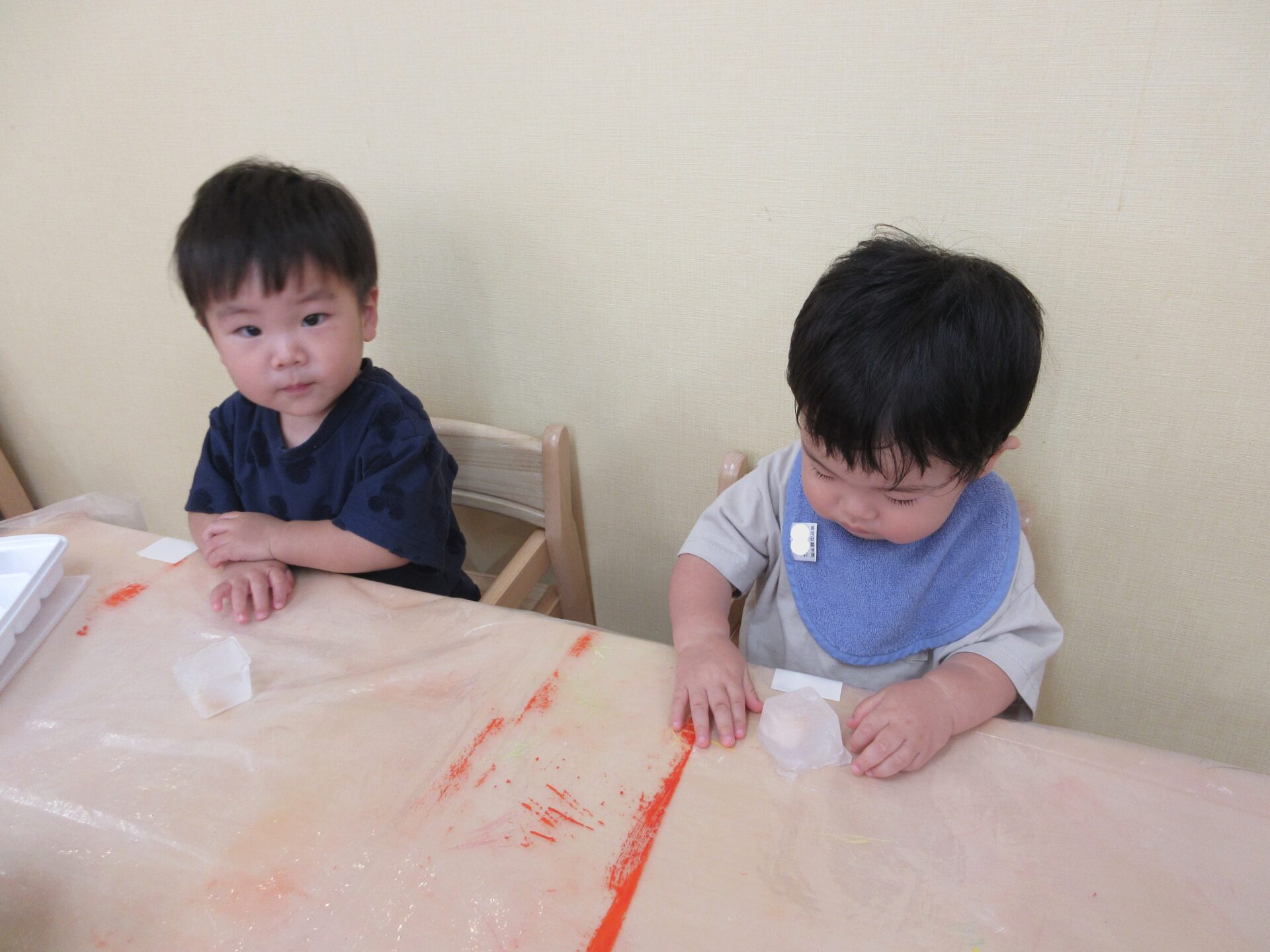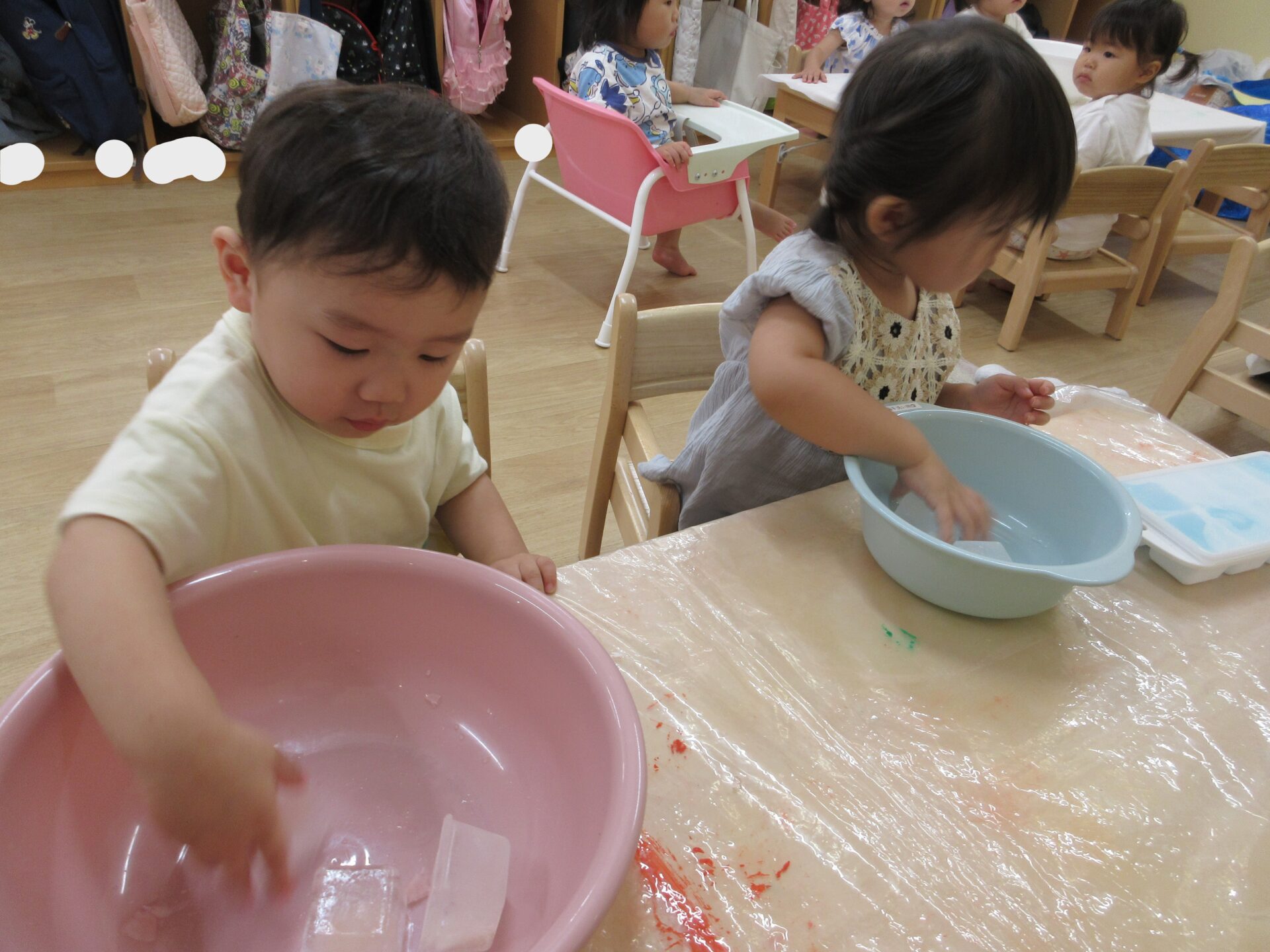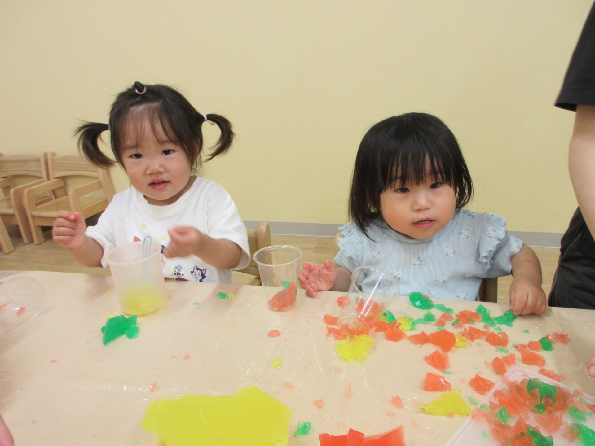 感触遊び☆氷・寒天 (1歳 だいちぐみ)
