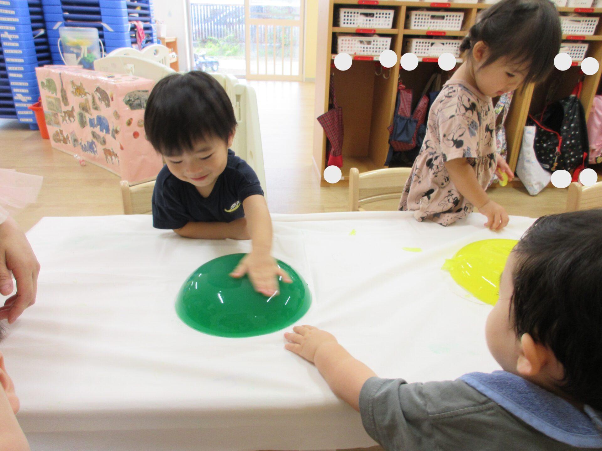 触ってみると、「つめた!」「ぷにぷに~」と言って、感触を楽しんでいました!