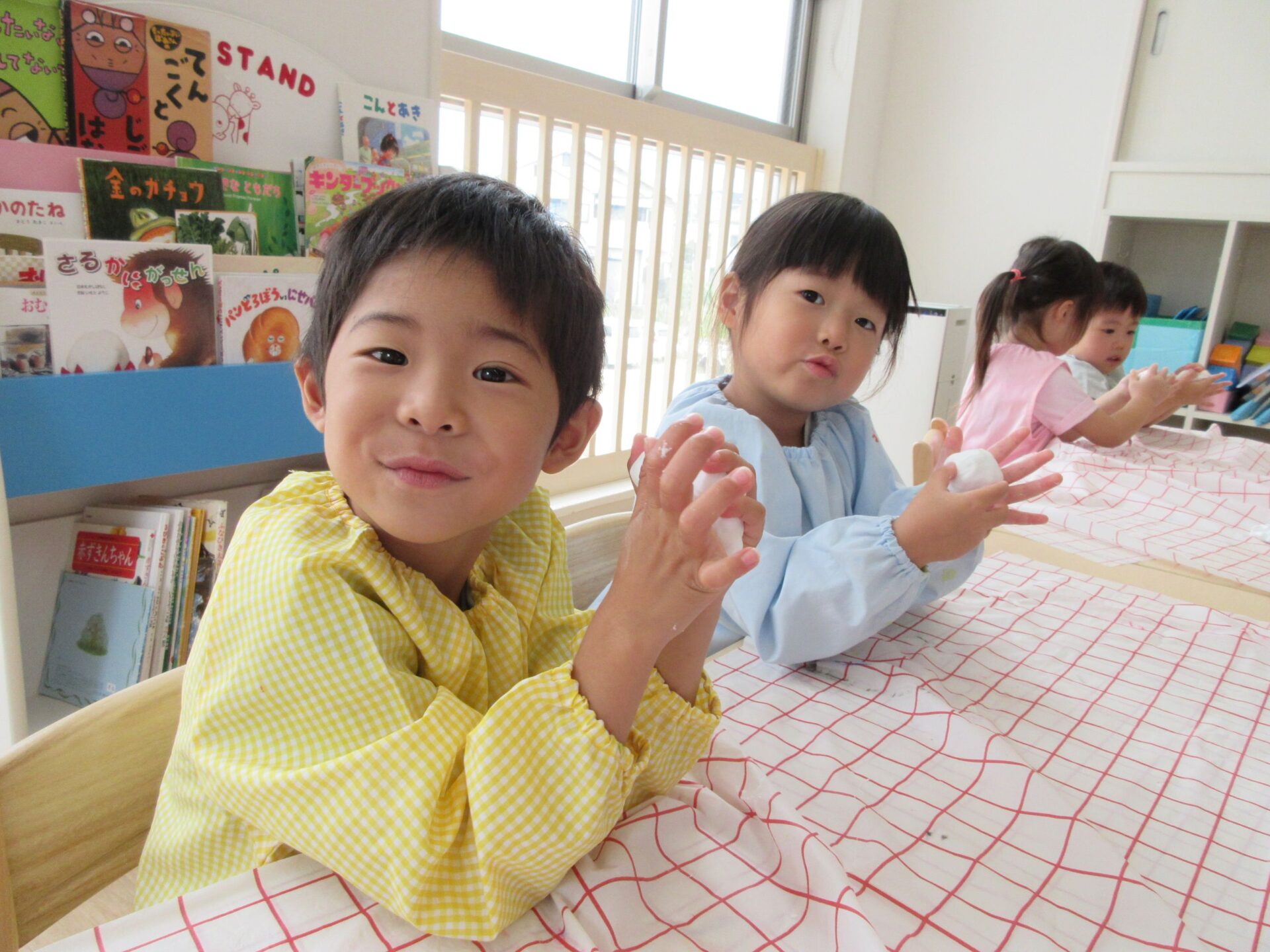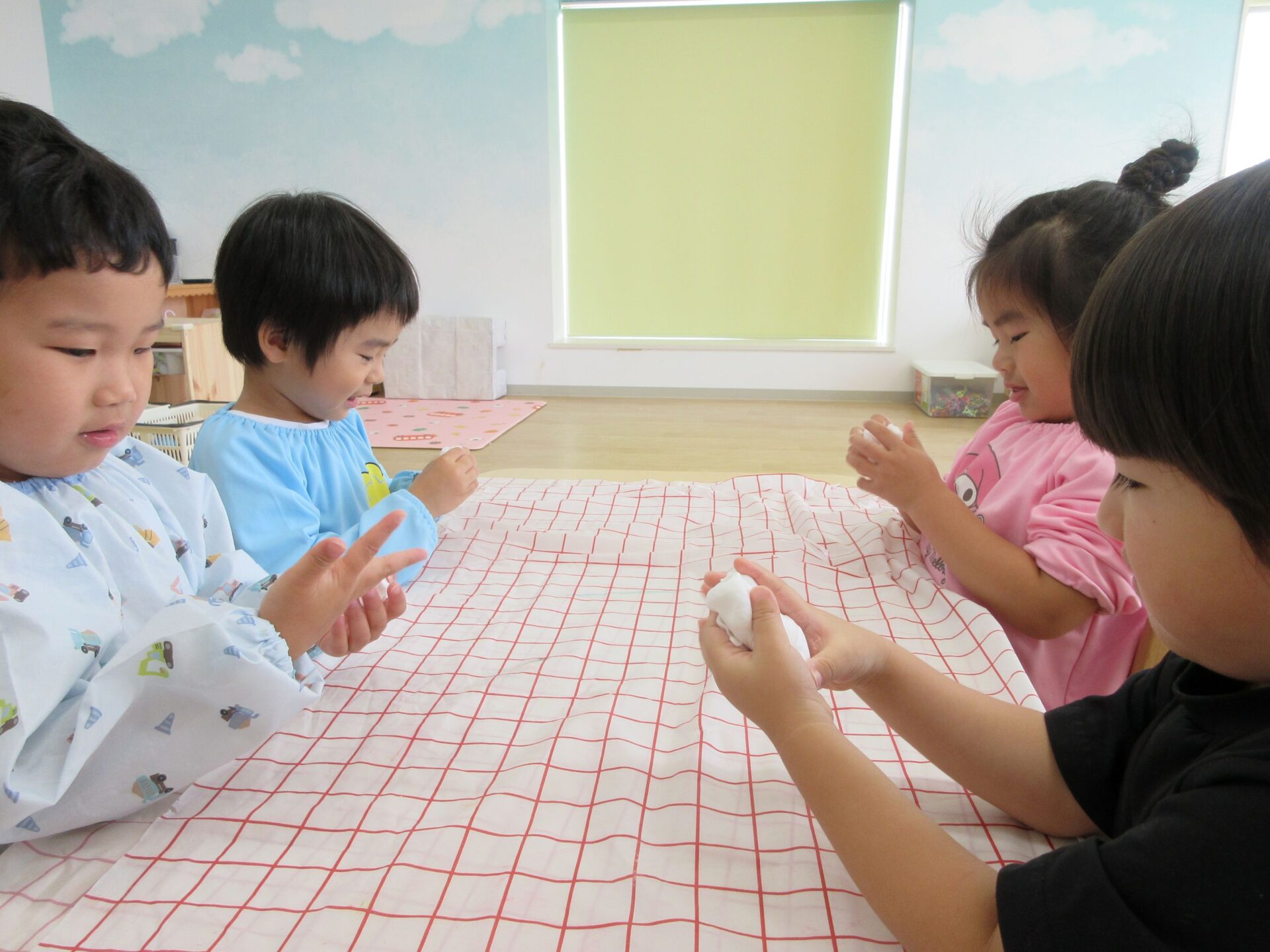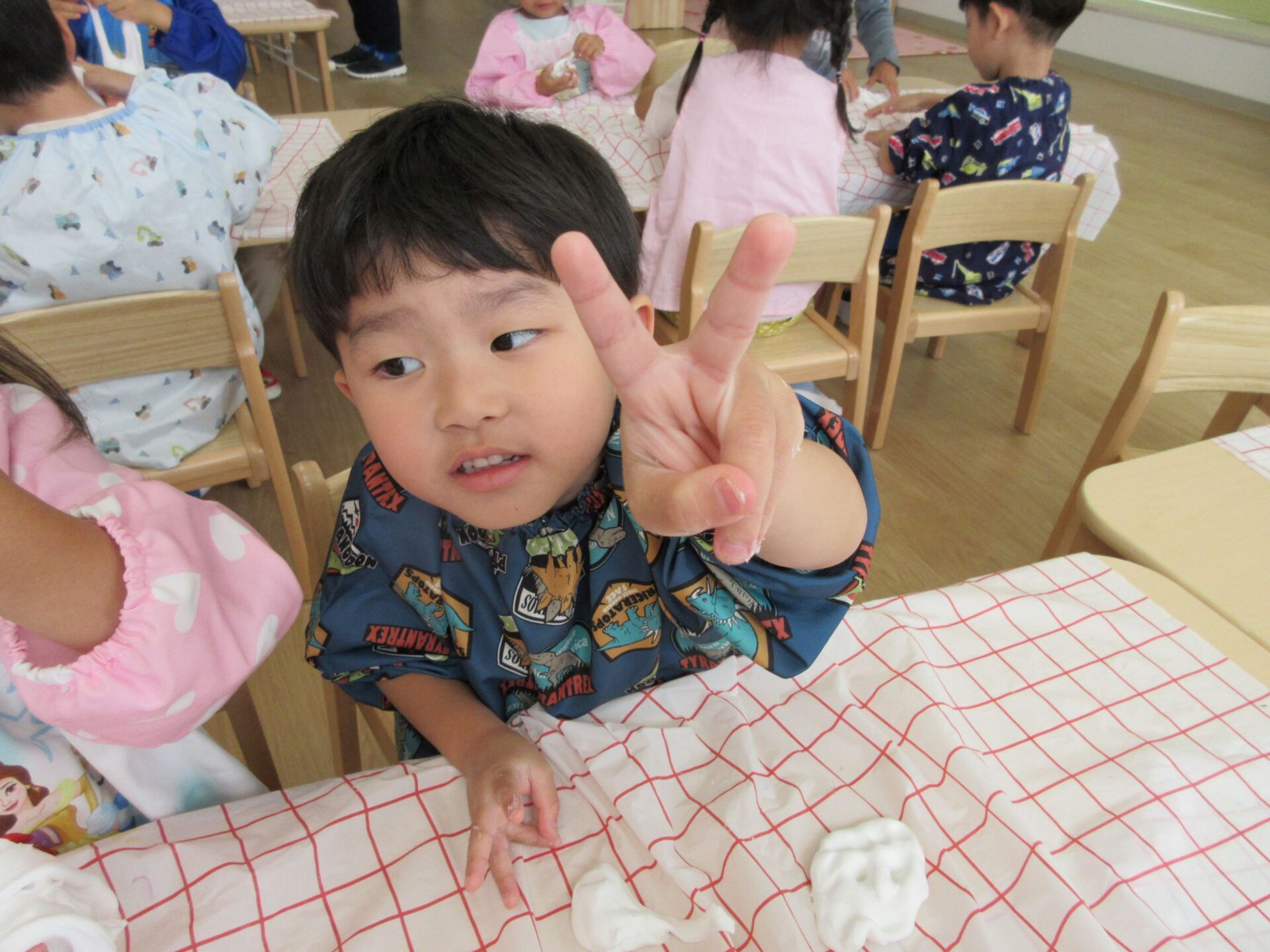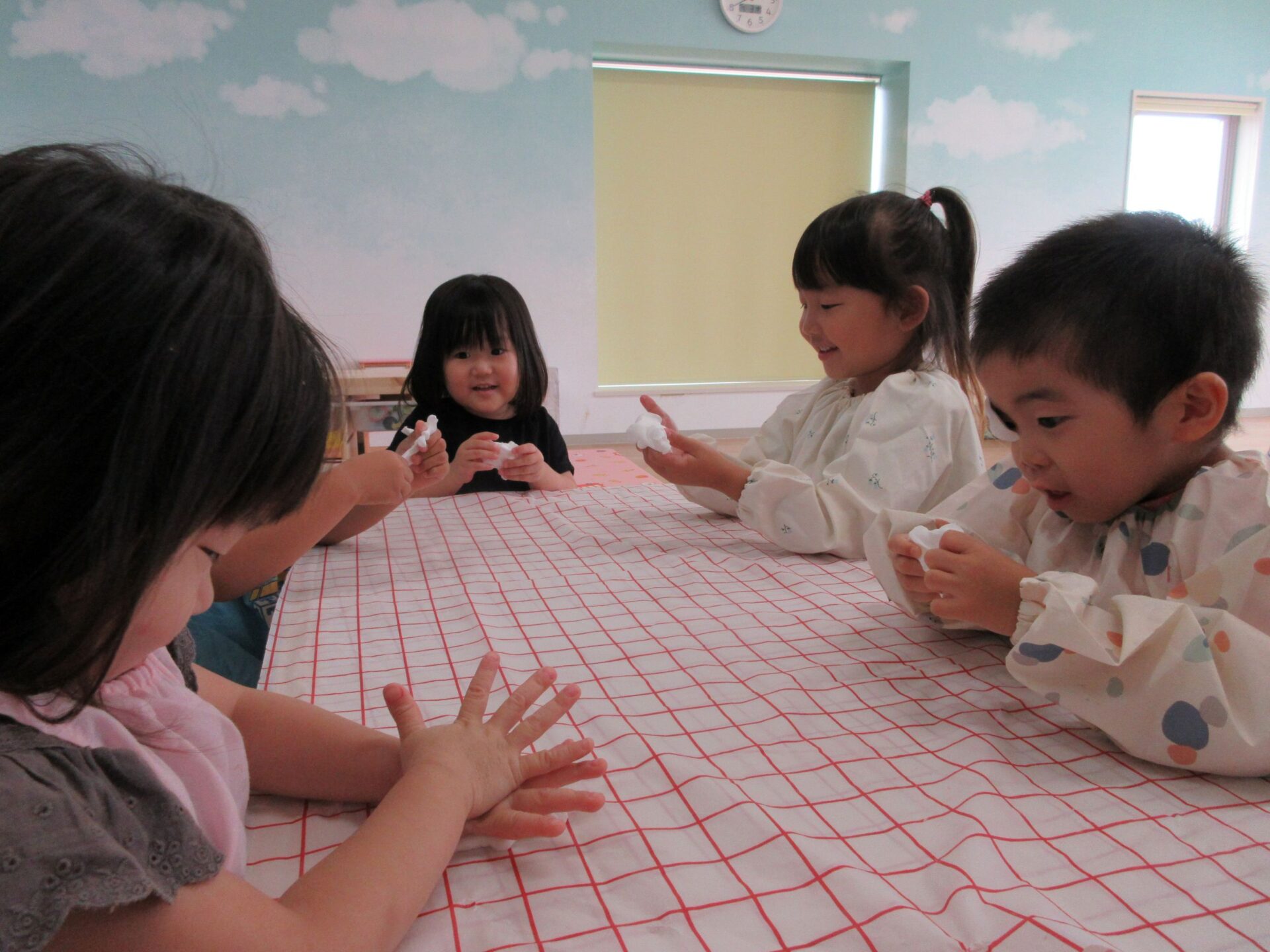 2025.07.23 お知らせ ブログ とろとろ♪ネバネバ!感触遊びをしたよ♪(4歳そら組) 7月3日(木)、先生が何か面白いものを見せてくれました。ネバネバ、トロトロ・・・。 みんなに配ってもらって。 「なんだか不思議な感触‥。」 自然に笑顔がこぼれます♪ ビヨーン! ビヨーン!! ピヨーン!ながーい! いい笑顔ですね。 スライムっておもしろい! こんなに長くなったよ♪ 楽しいスライムの感触遊びでした。 一覧へ戻る