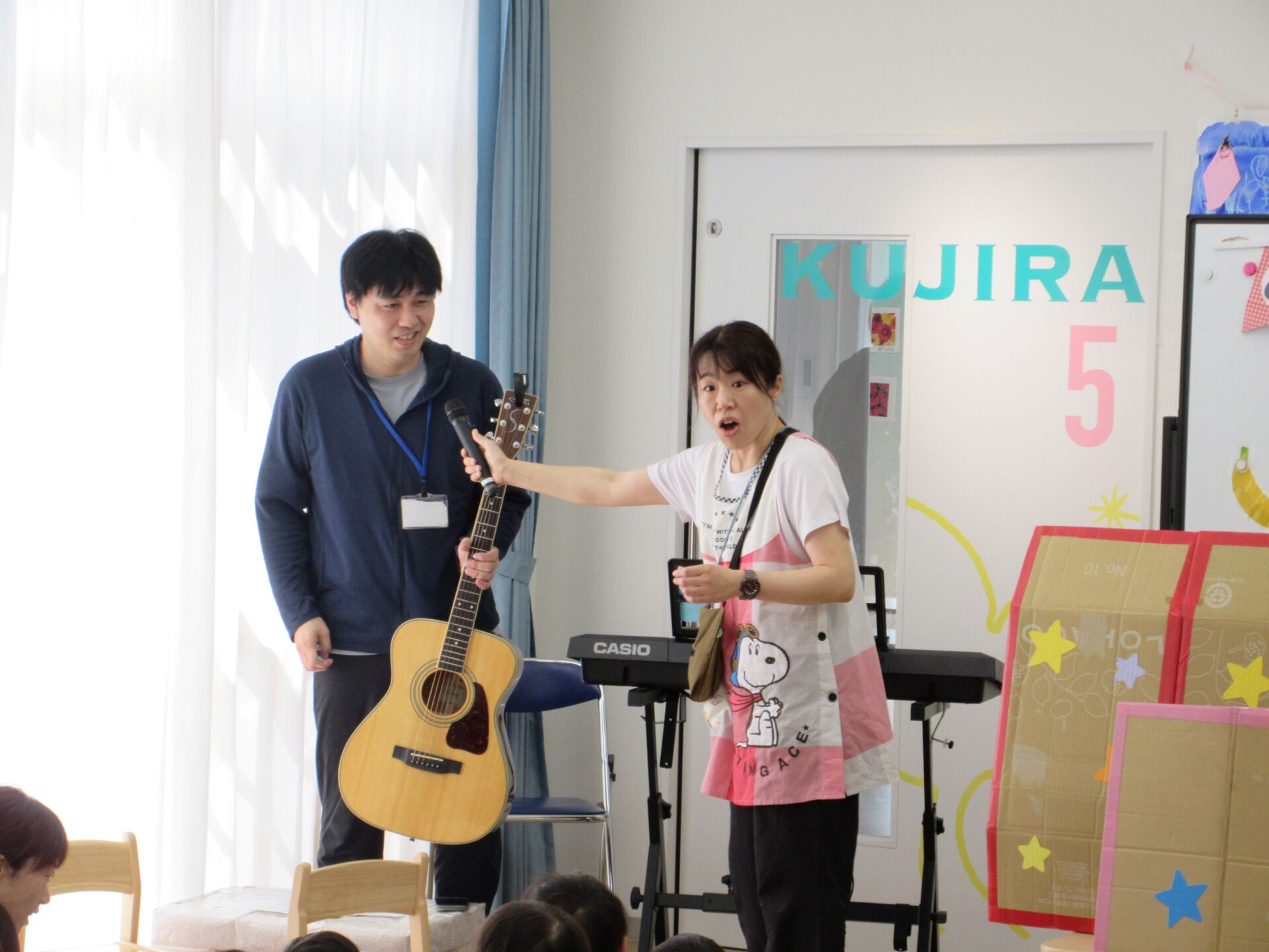 今回は、スペシャルゲストが!音楽教室で指導されている清水さんが、ギターの演奏に来てくださいました。