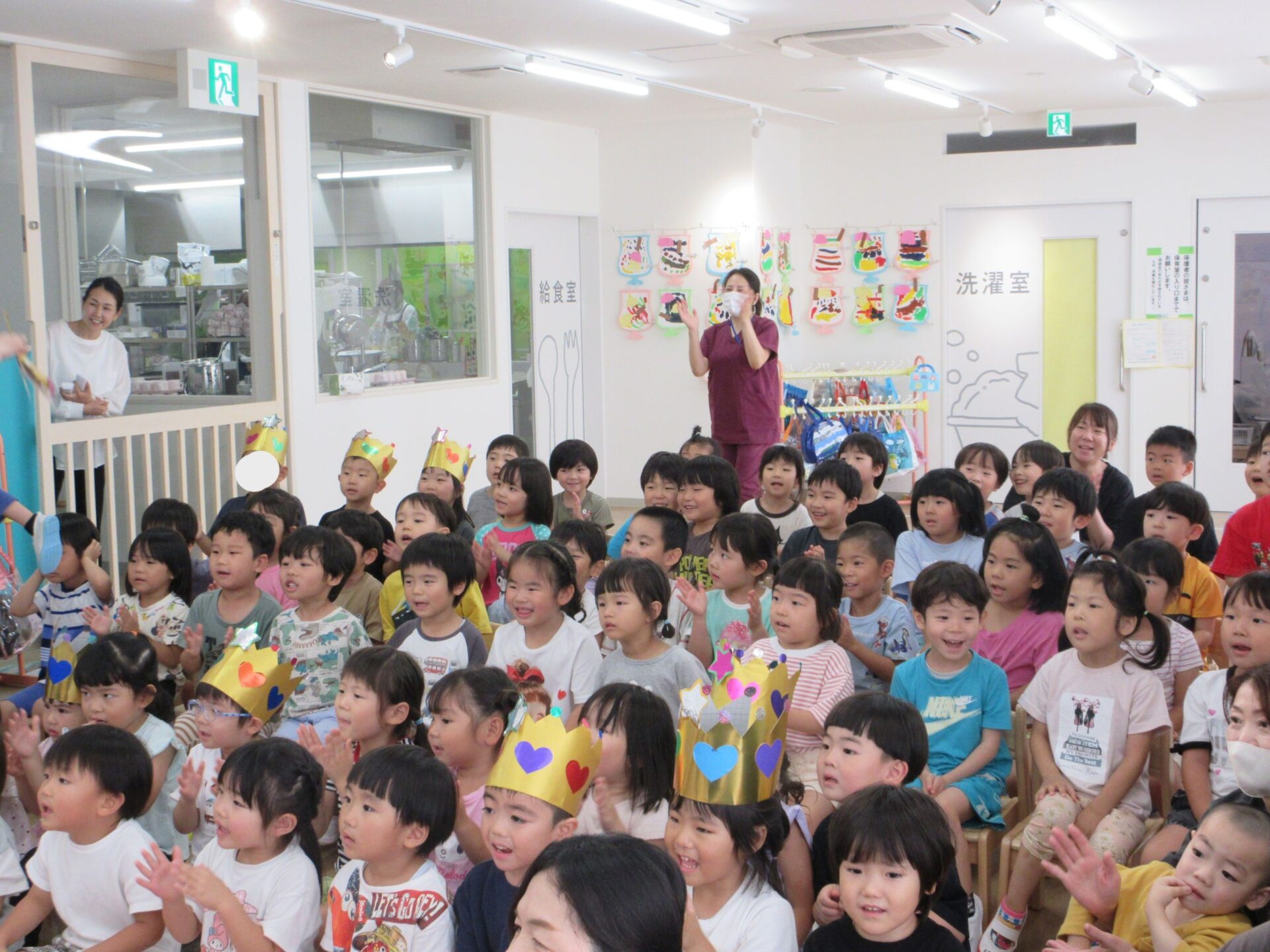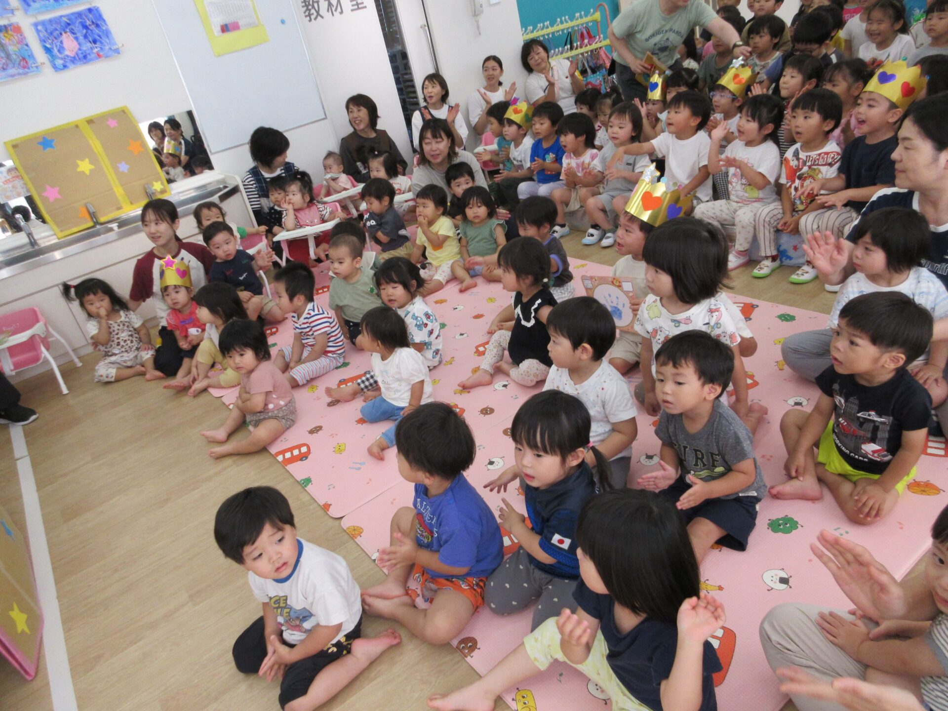 2階のランチルームに全クラスが集まりました。