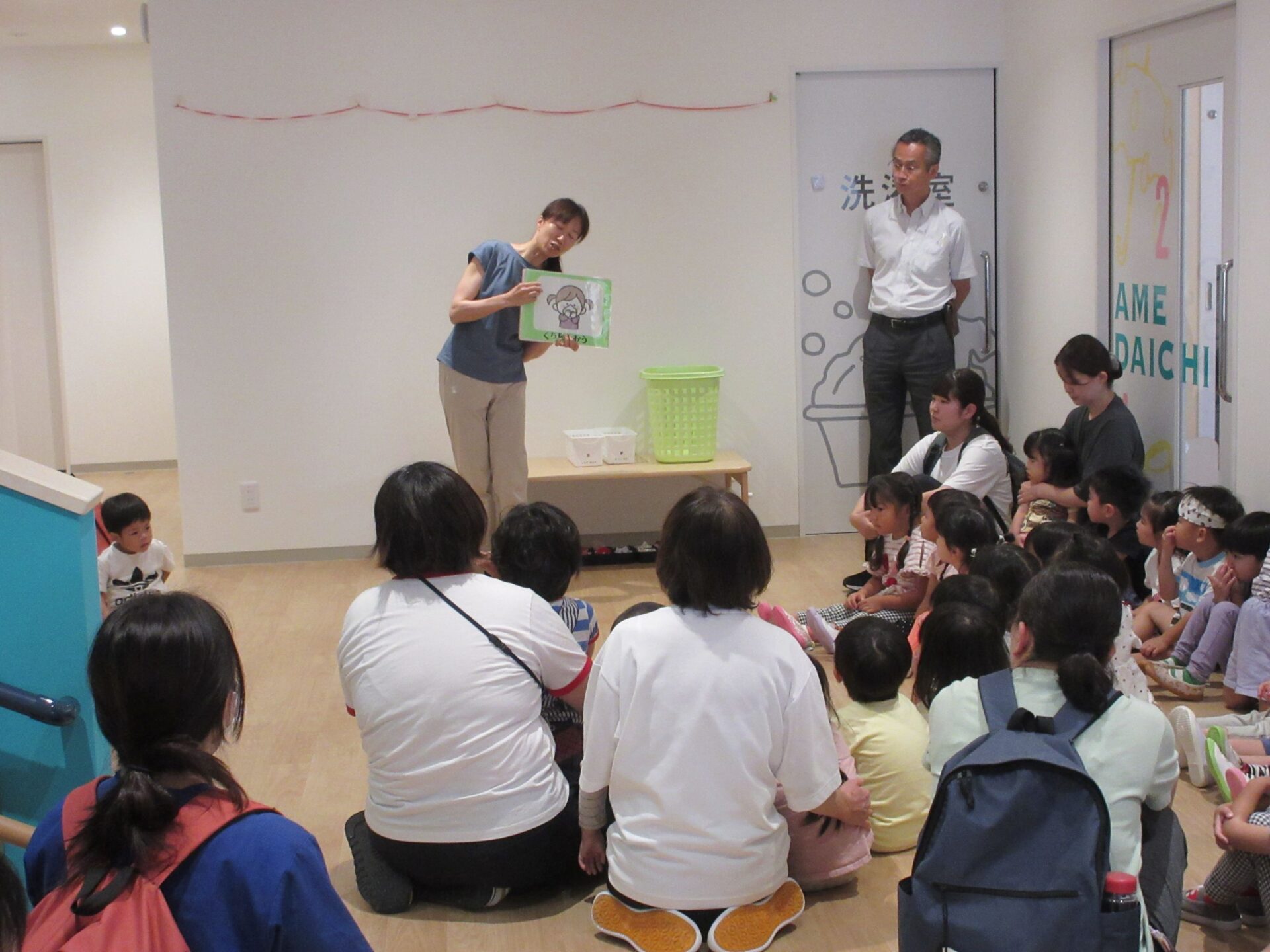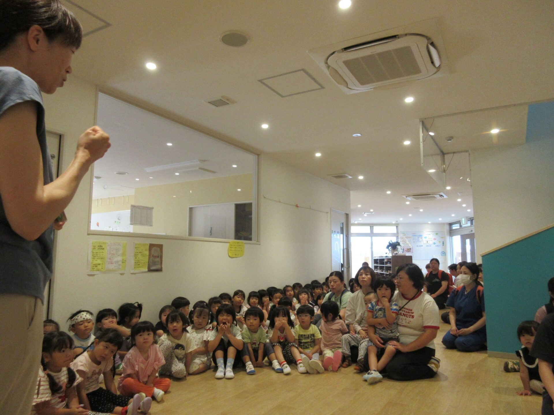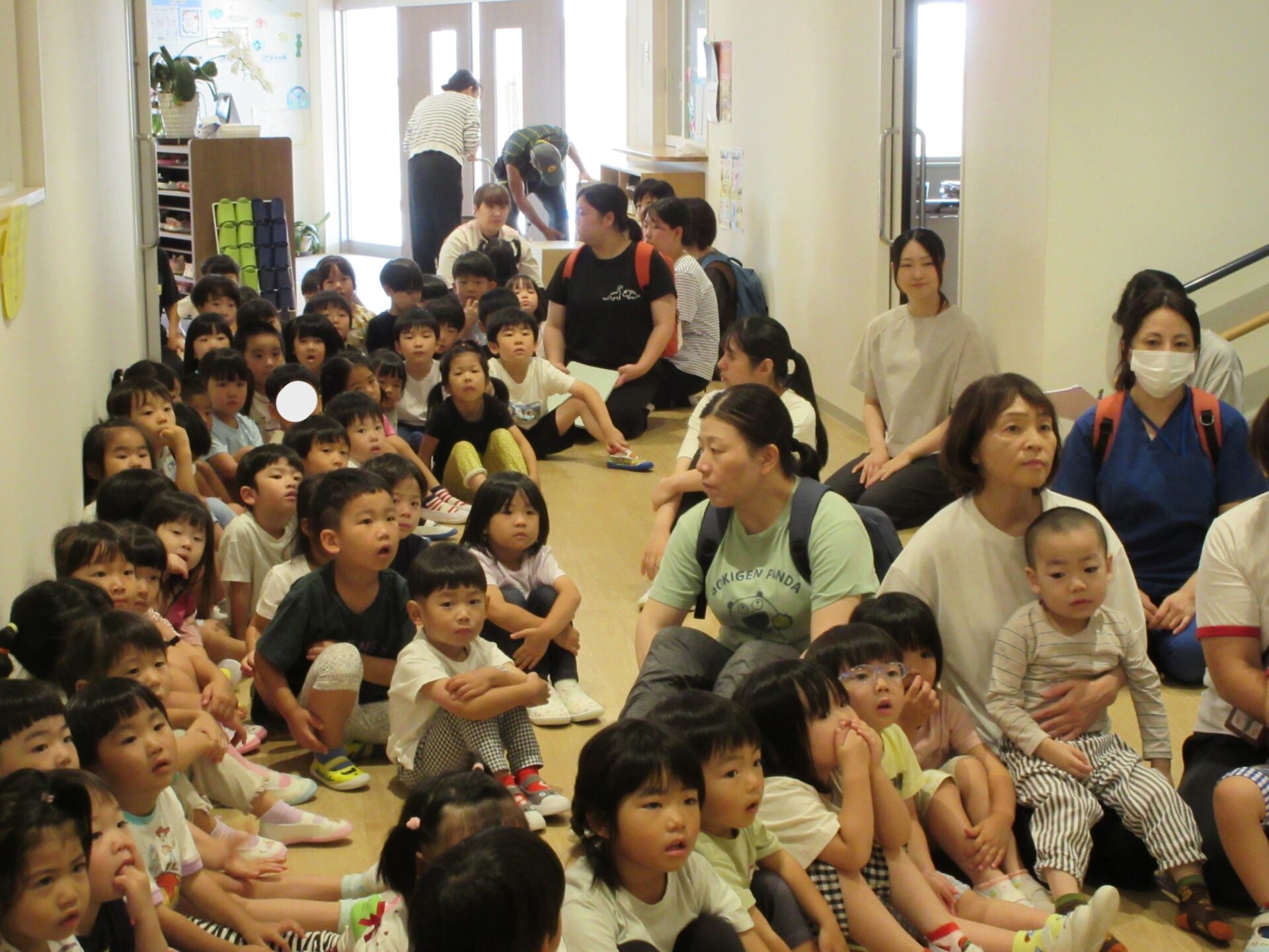 2025.07.25 お知らせ ブログ 7月の避難訓練(火事) 7月24日(木)、避難訓練を行いました。今回の想定は、火事。熱中症防止のため、避難後の集合場所は、1階のエントランスです。 幼児クラスは、今回は中階段を使って1階へ降りました。 とても素早く移動できていました。 だんだんと集まってきました。 担当の先生のお話です。 「『お・は・し・も』の『お』は、押さない!」 煙を吸わないように気をつけて・・・。 「もどってはいけません!」 「お約束!」 説明もしっかりと聞けていましたよ♪ 一覧へ戻る