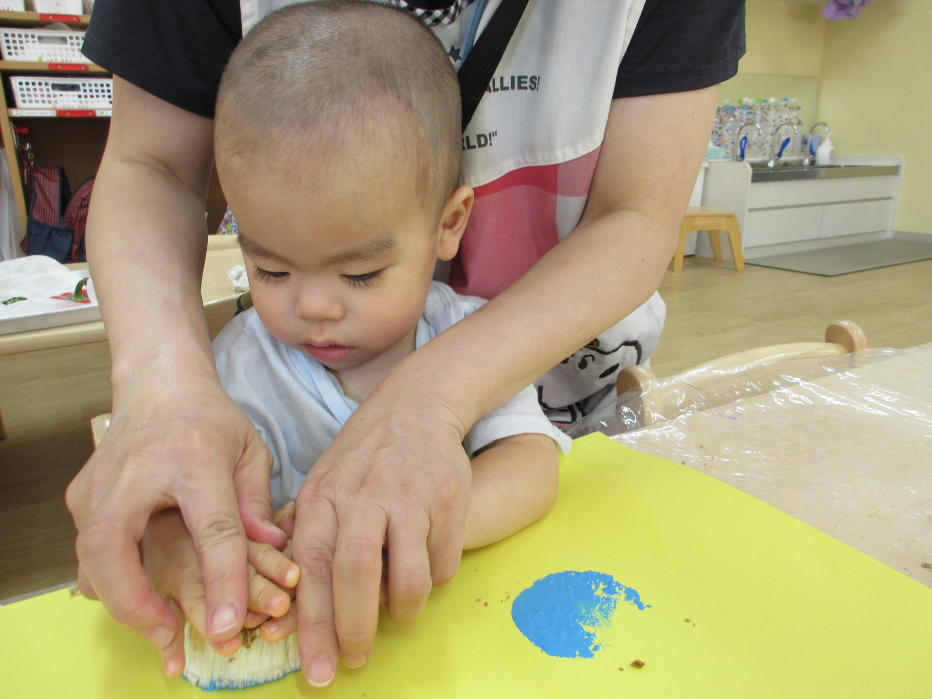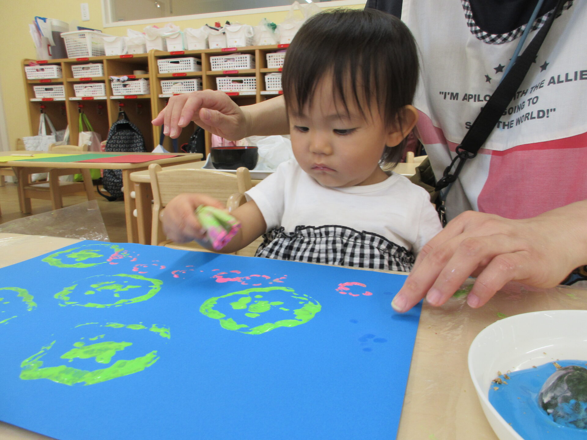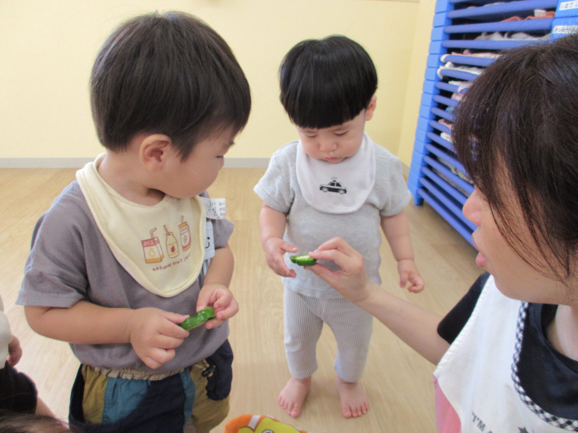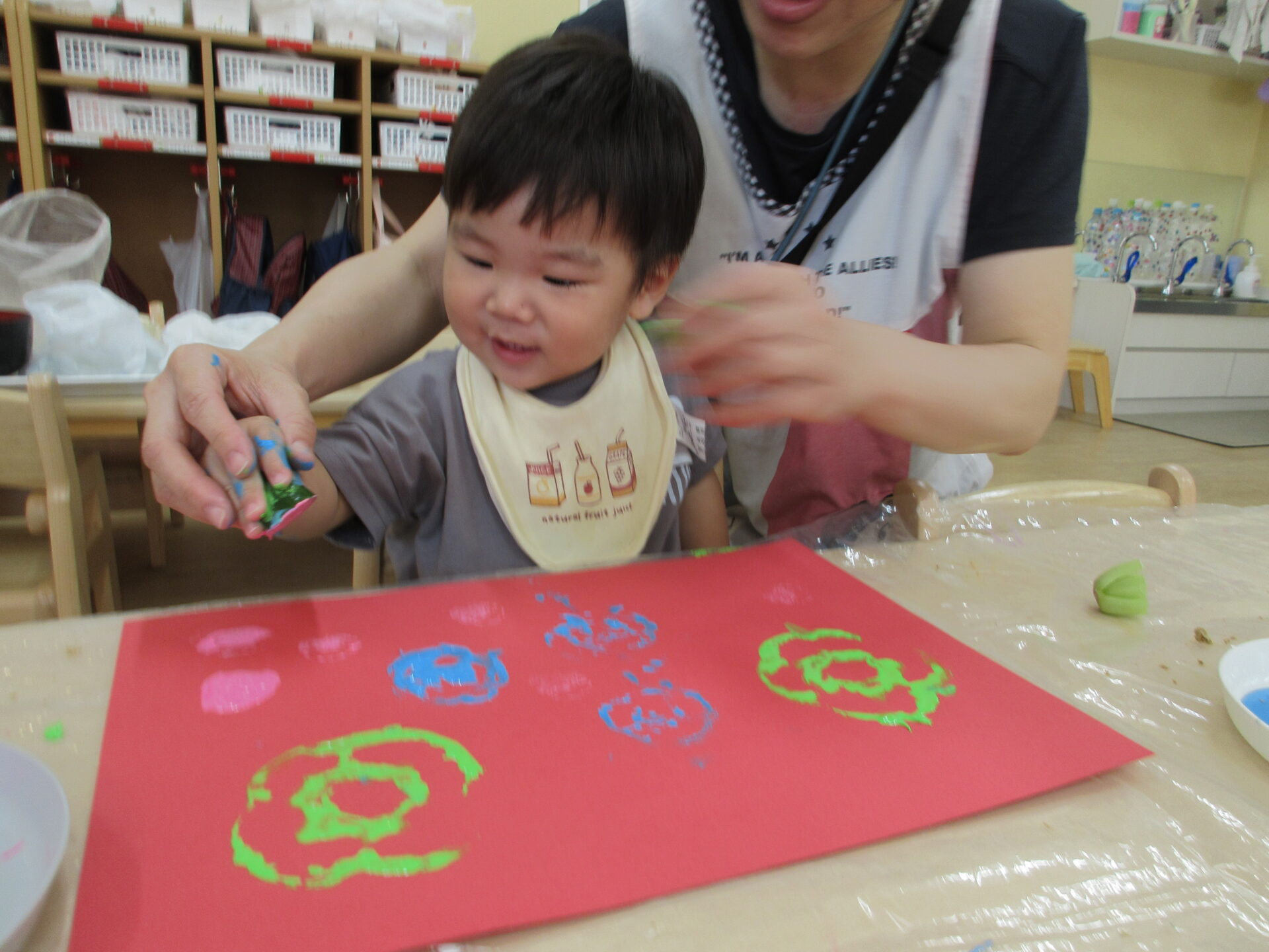 2025.08.04 お知らせ ブログ ペタペタ♪野菜スタンプ (1歳 だいちぐみ) 7月29日、野菜スタンプをしました☆キュウリやピーマン、パプリカ、エノキ、小松菜の断面を見たり、触ったりと興味津々の子どもたち。 慎重にそーっと、そーっと触ろうとしています😊 ピーマンはどんな模様になるかな~ ぺったんぺったん! お花みたいな形がいっぱいできました🌸 「これはみどりー!」と色の名前を言いながらスタンプをする子も♪ 夏ならではの野菜スタンプ、子どもたちも夢中になっていました! 一覧へ戻る