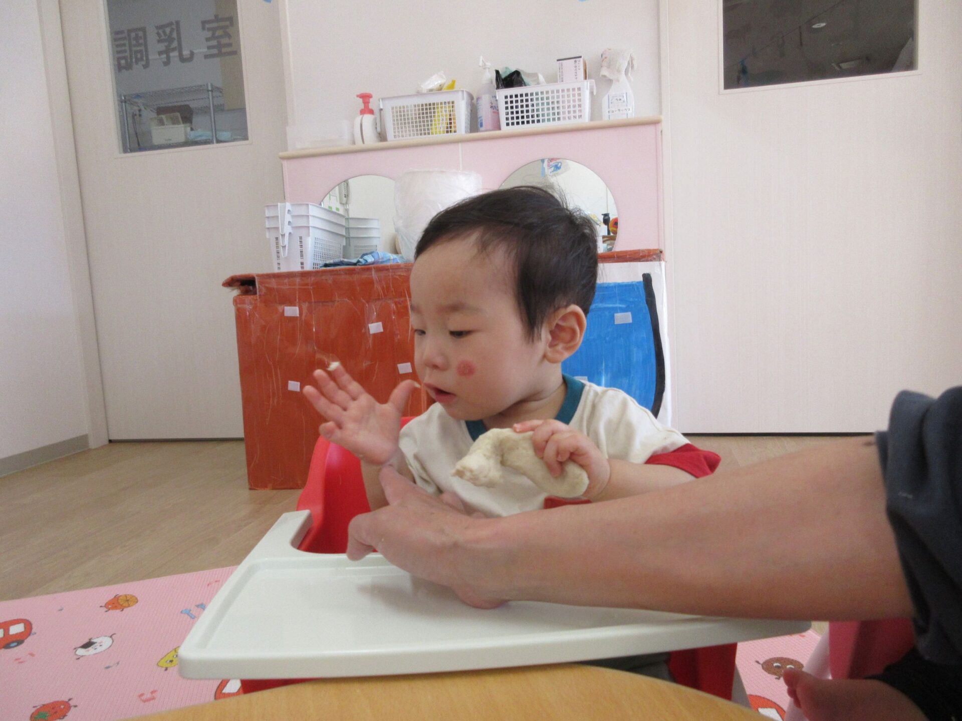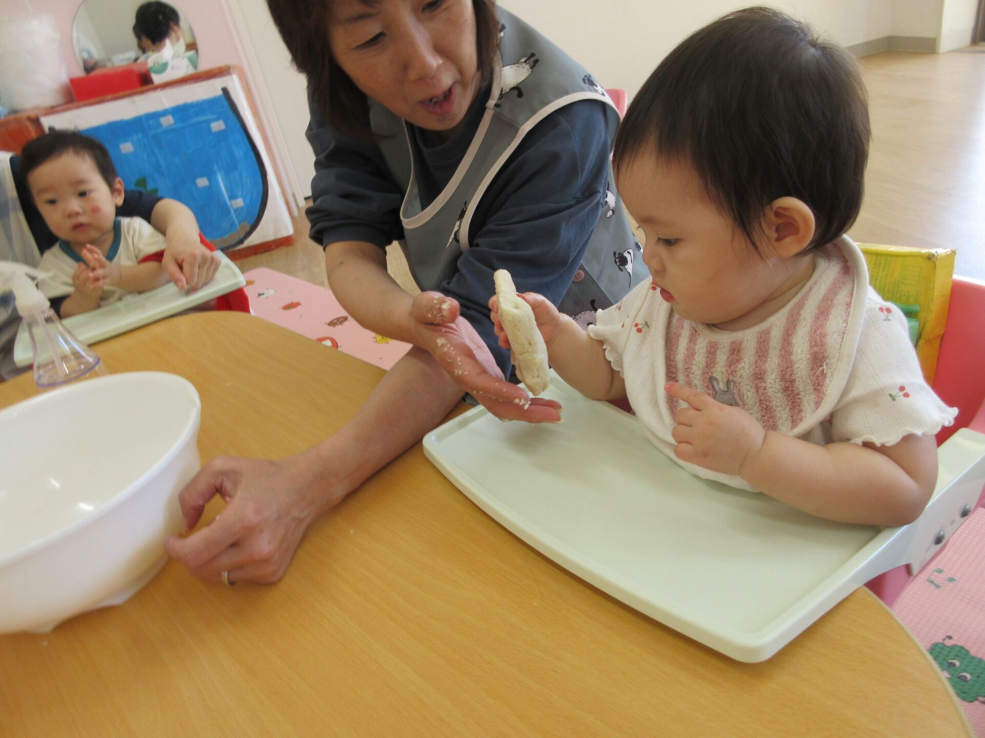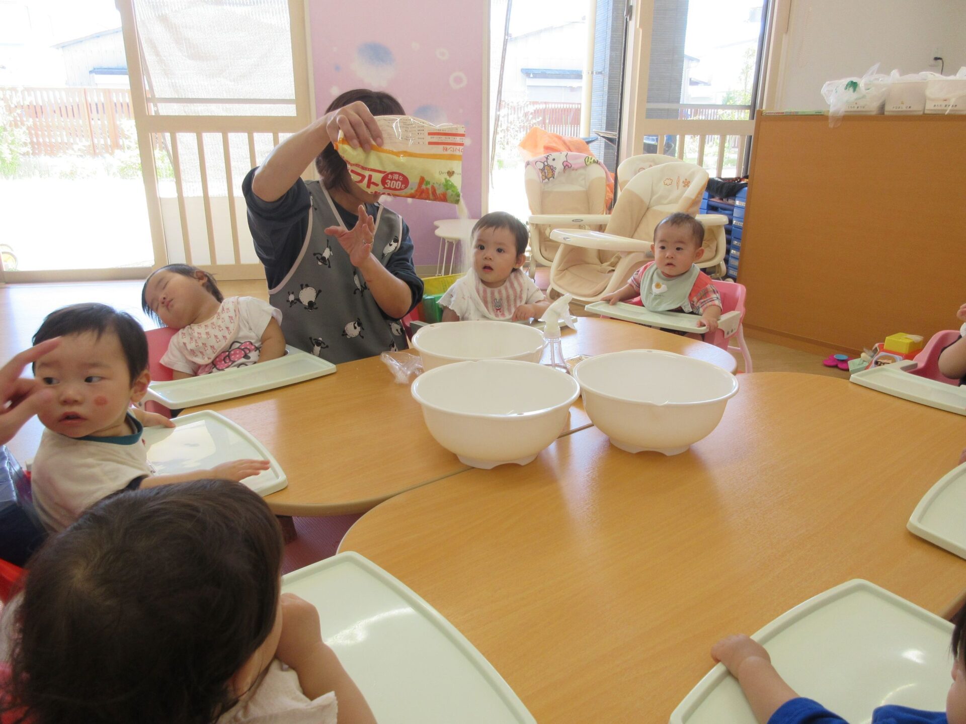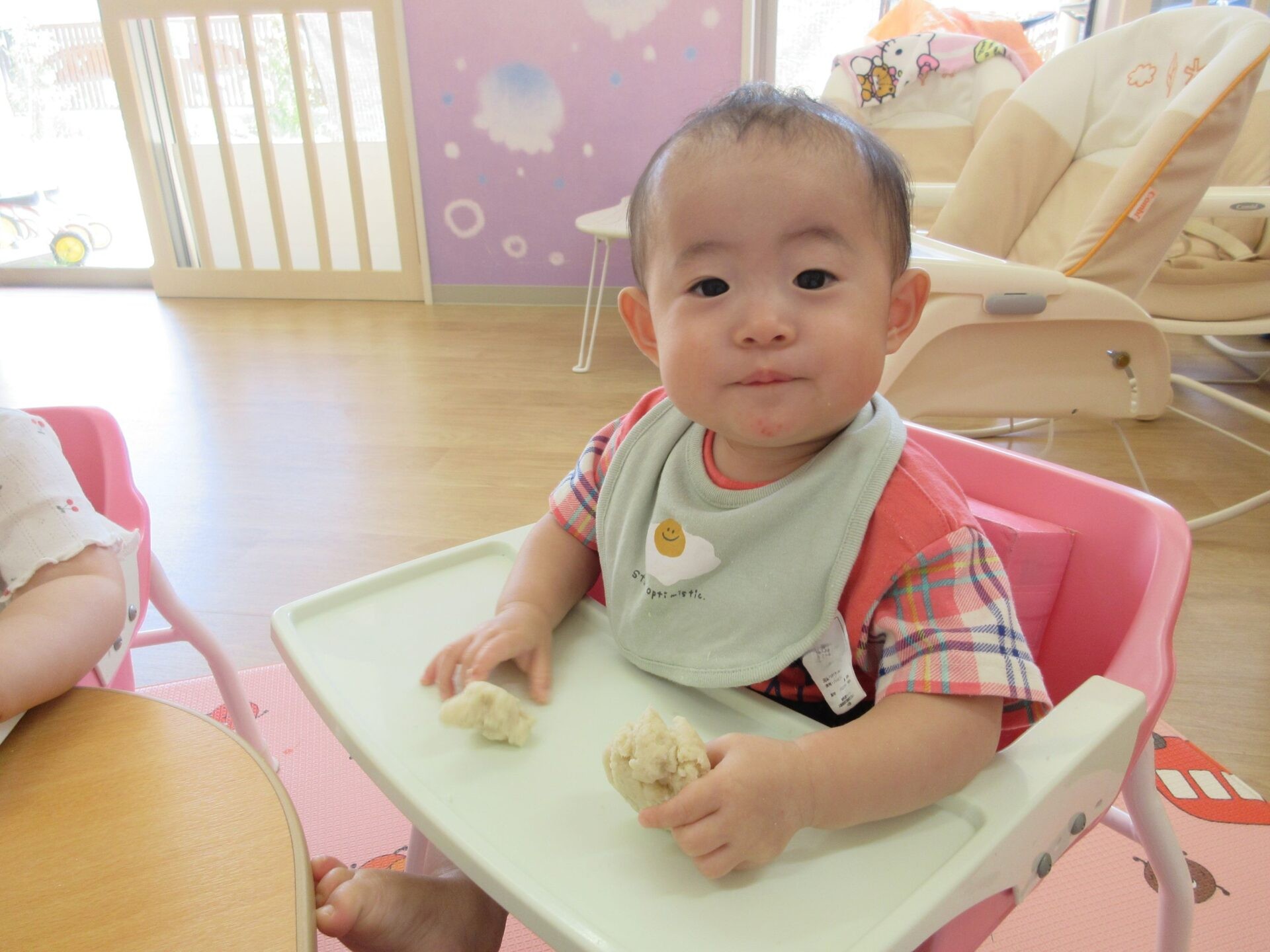 2025.08.01 お知らせ ブログ パン粉粘土で遊んだよ♪(0歳 うみ組) 手の平で触ってみよう! おててで持てたよ♪ どんな触り心地かな~⁉ 触るの楽しいよ♪ あれ⁉ 指についちゃった~‼ ポンポンポン!楽しいな~♪ 触るの・・・ドキドキ! よ~し!指で押してみよう‼ パン粉うどんの出来上がり!初めてのパン粉粘土、みんな興味津々で触っていました♪ 一覧へ戻る
