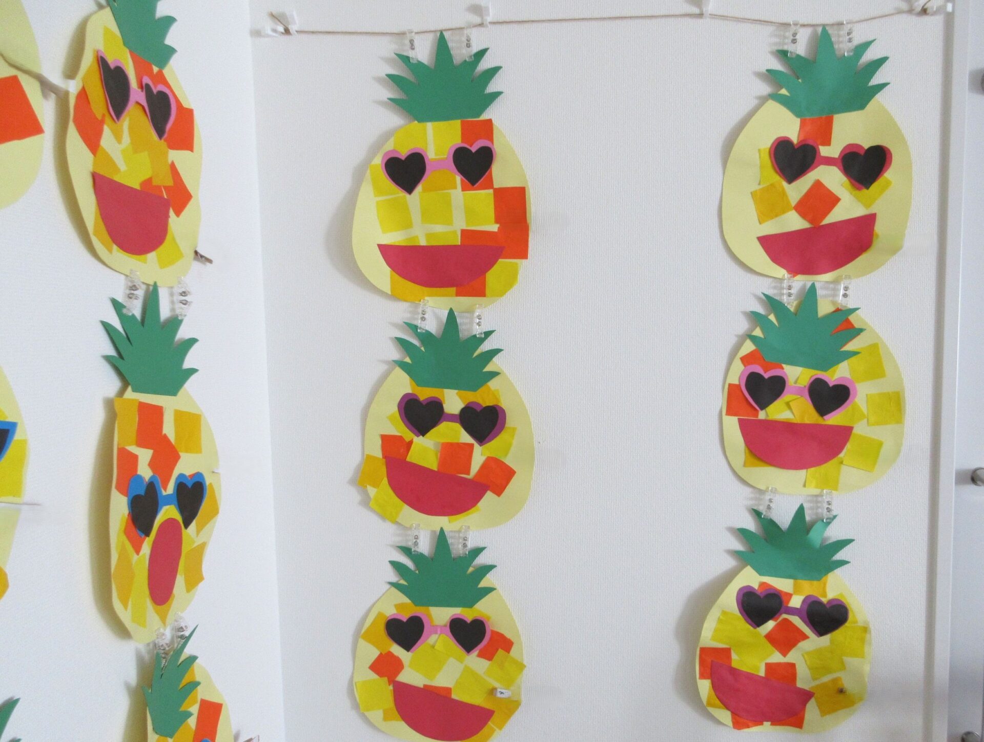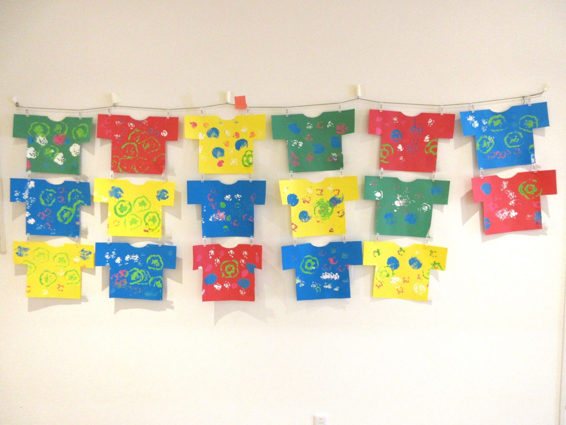 1歳だいち組のテーマは、「野菜スタンプのTシャツ」です。いろいろな野菜で描きました。