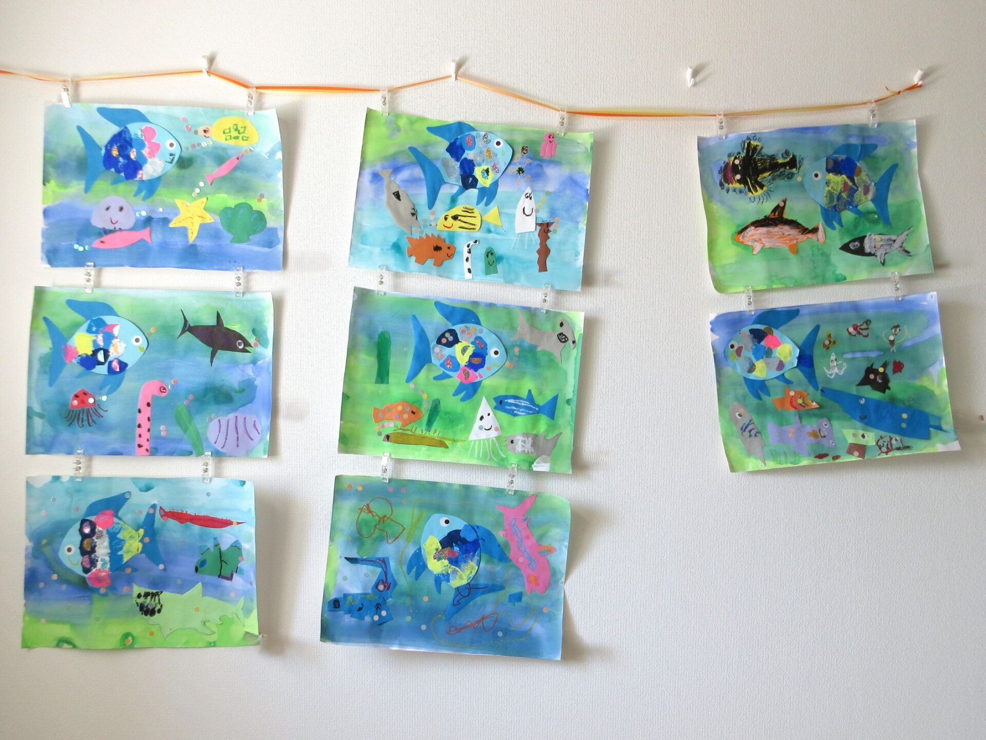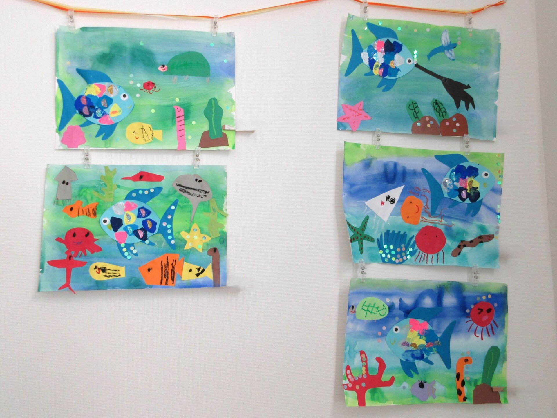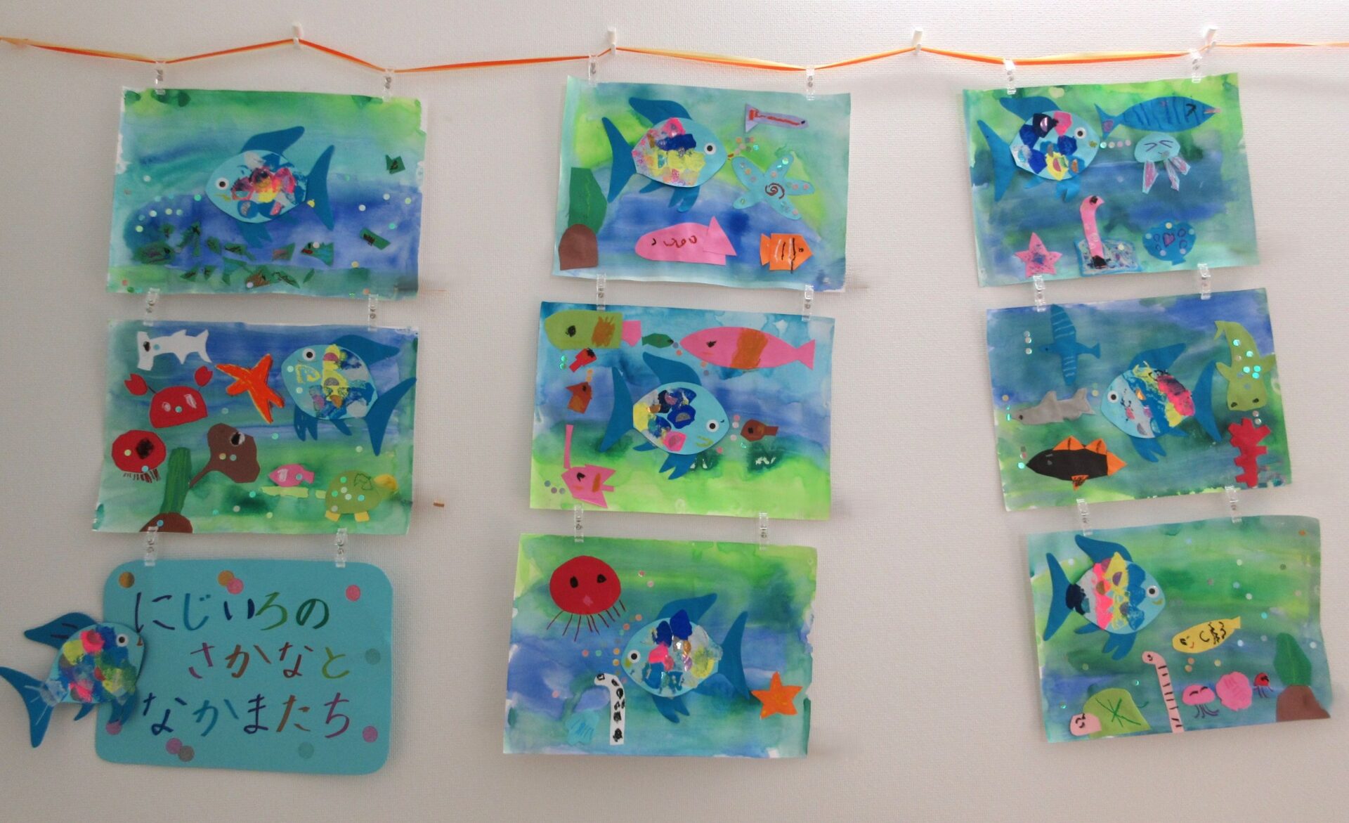 5歳くじら組のテーマは、「にじいろのさかなとなかまたち」です。
