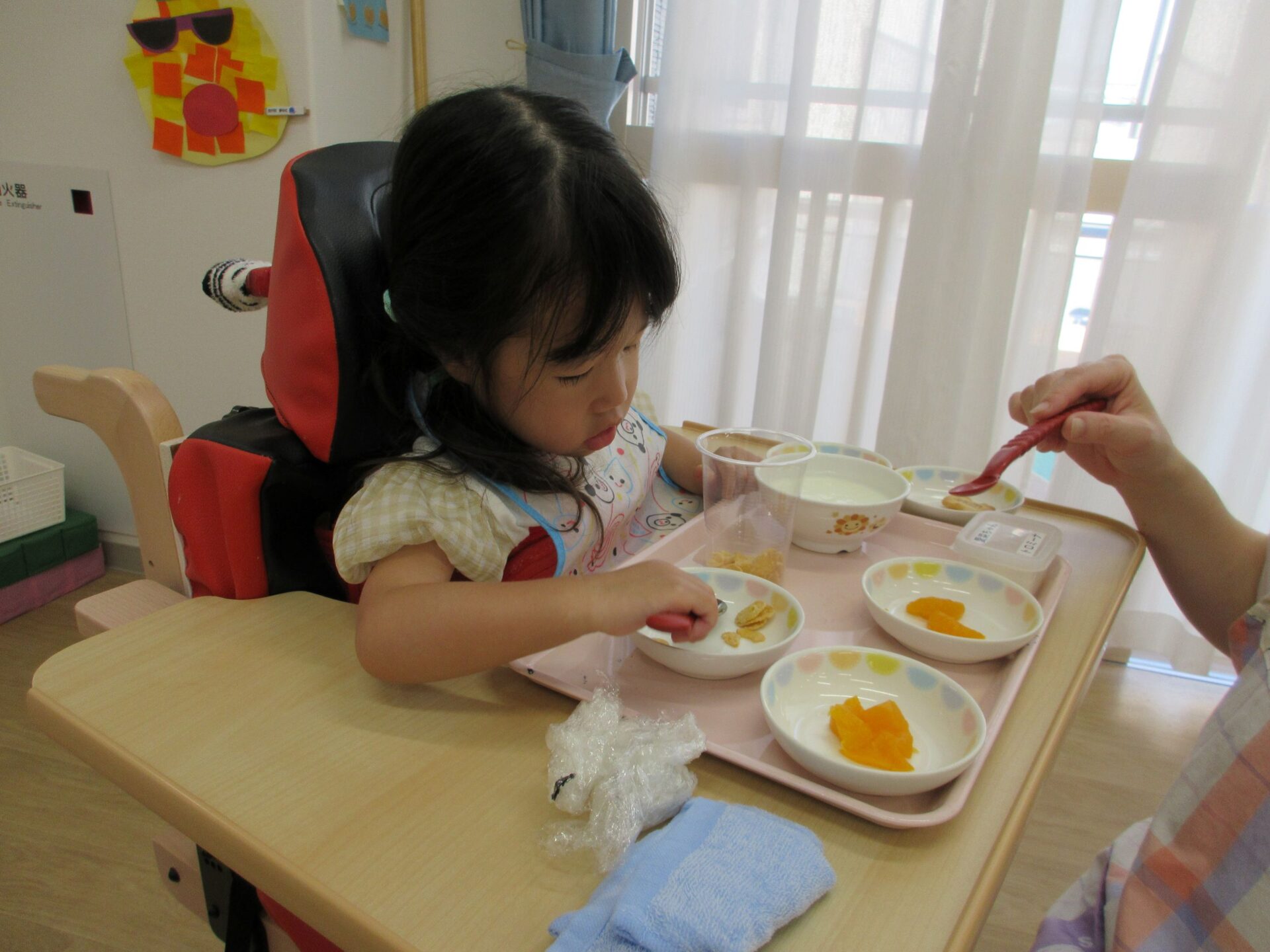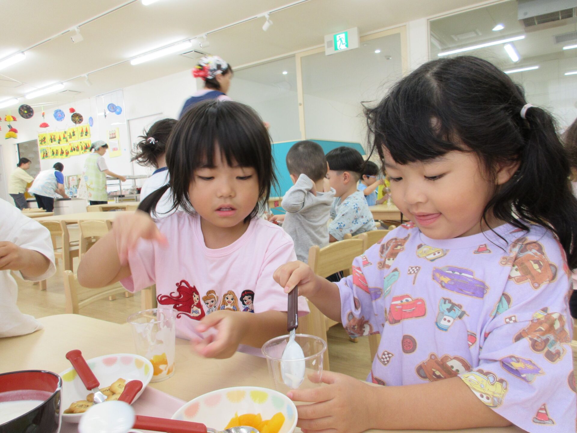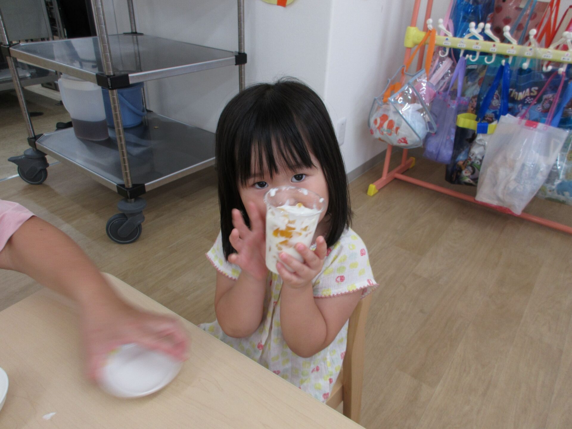 製作でパフェを作っていたので、「きょうはたべれるパフェや~」と、大喜びでした(*’▽’)