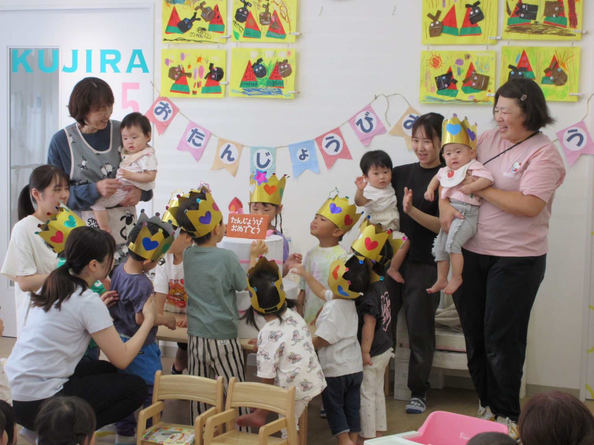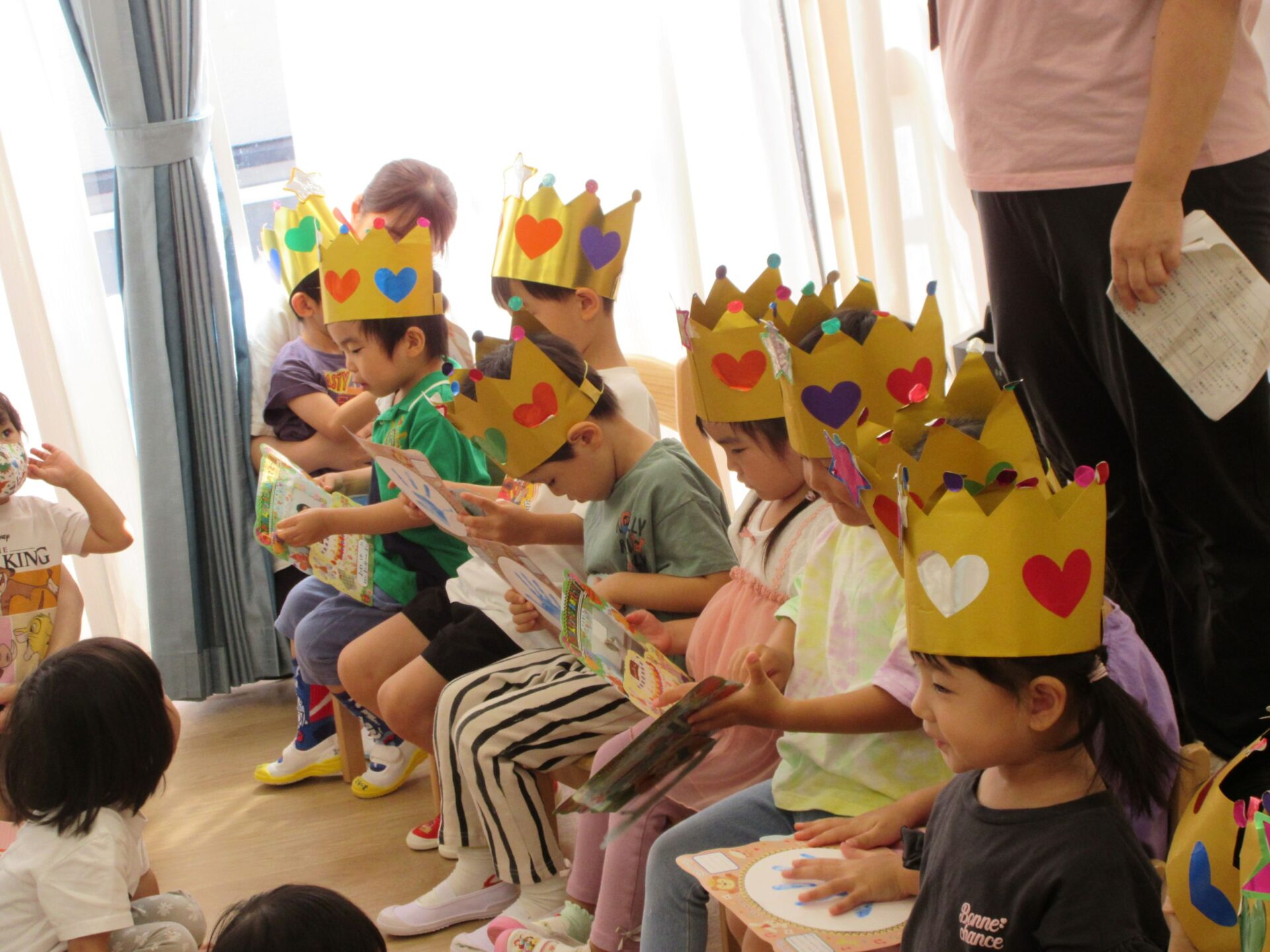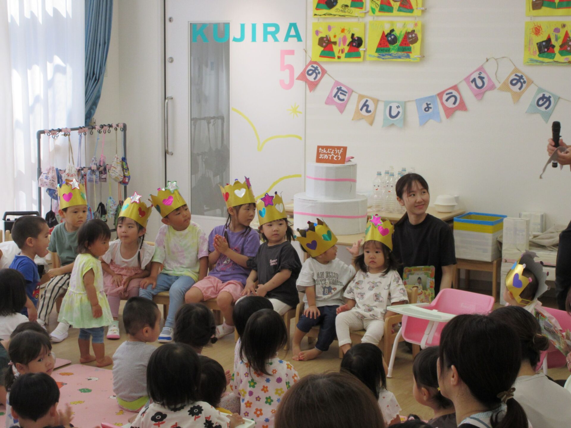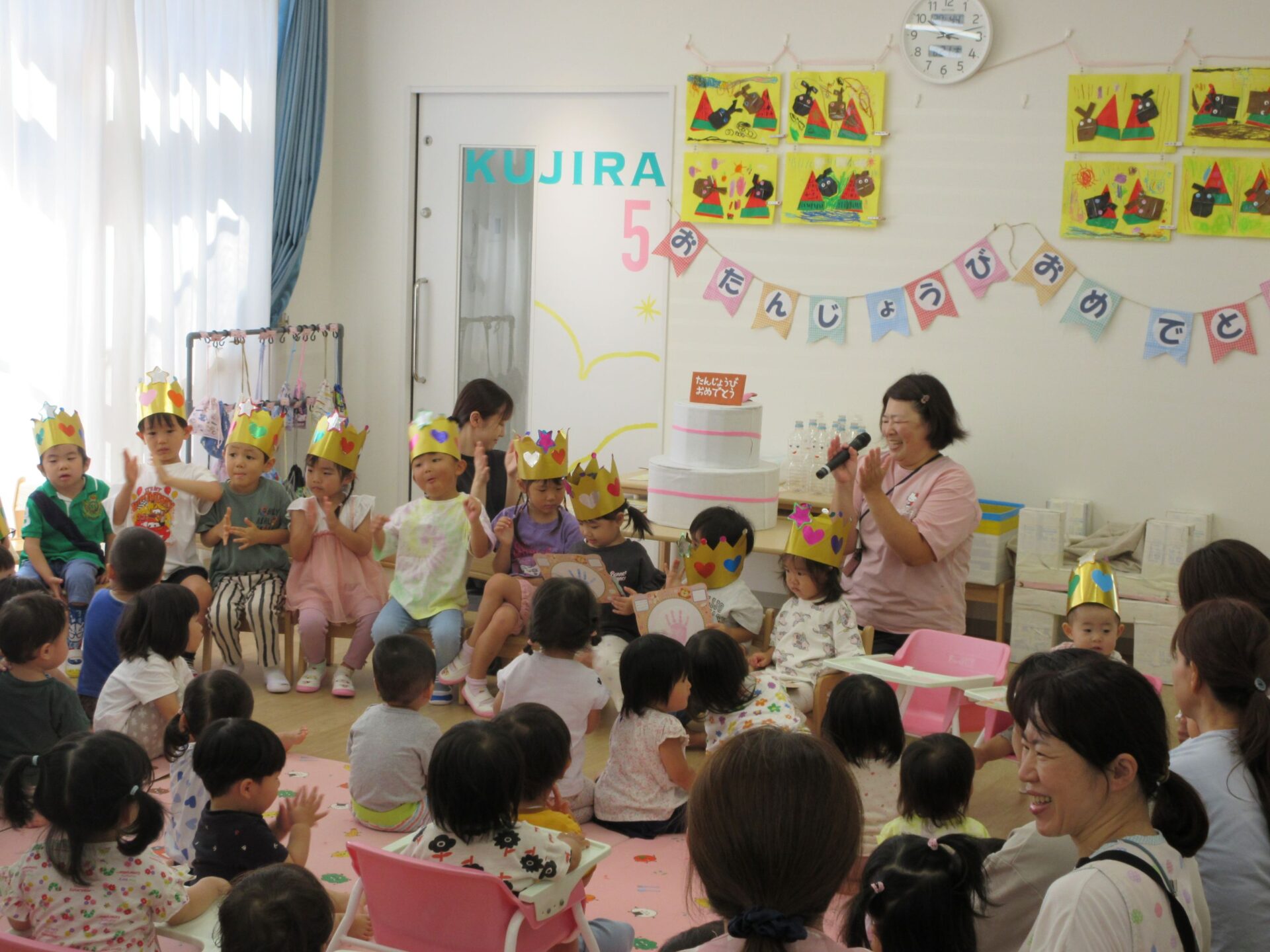 8月21日(木)、2階ランチルームに全クラスが集まり、お誕生会を行いました。