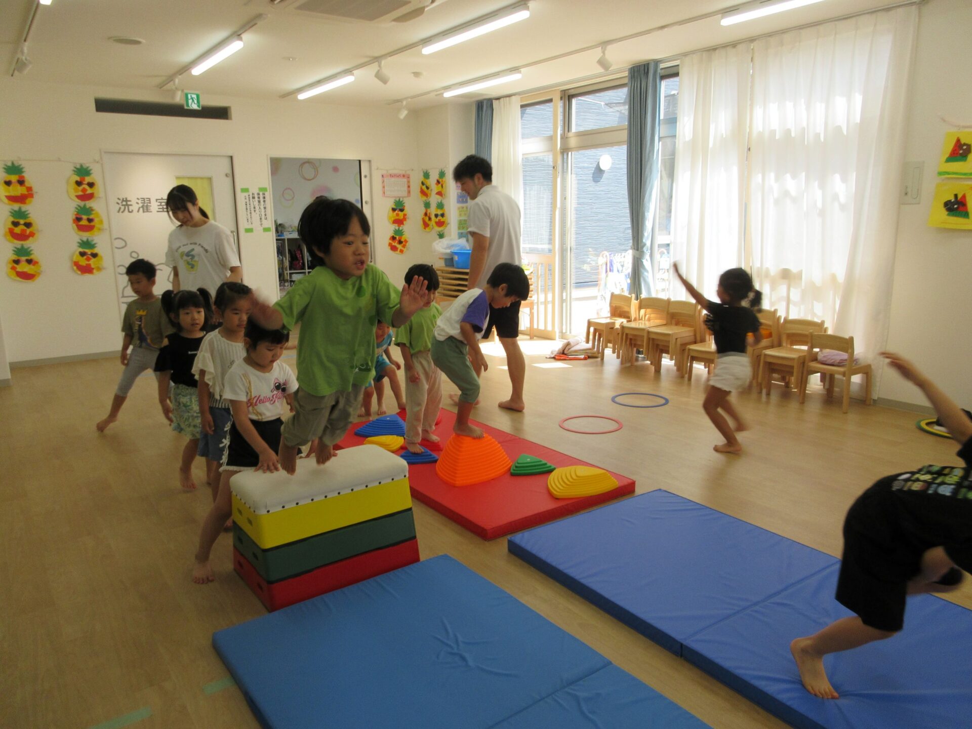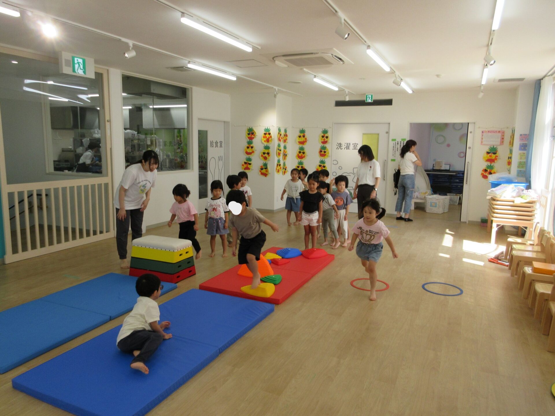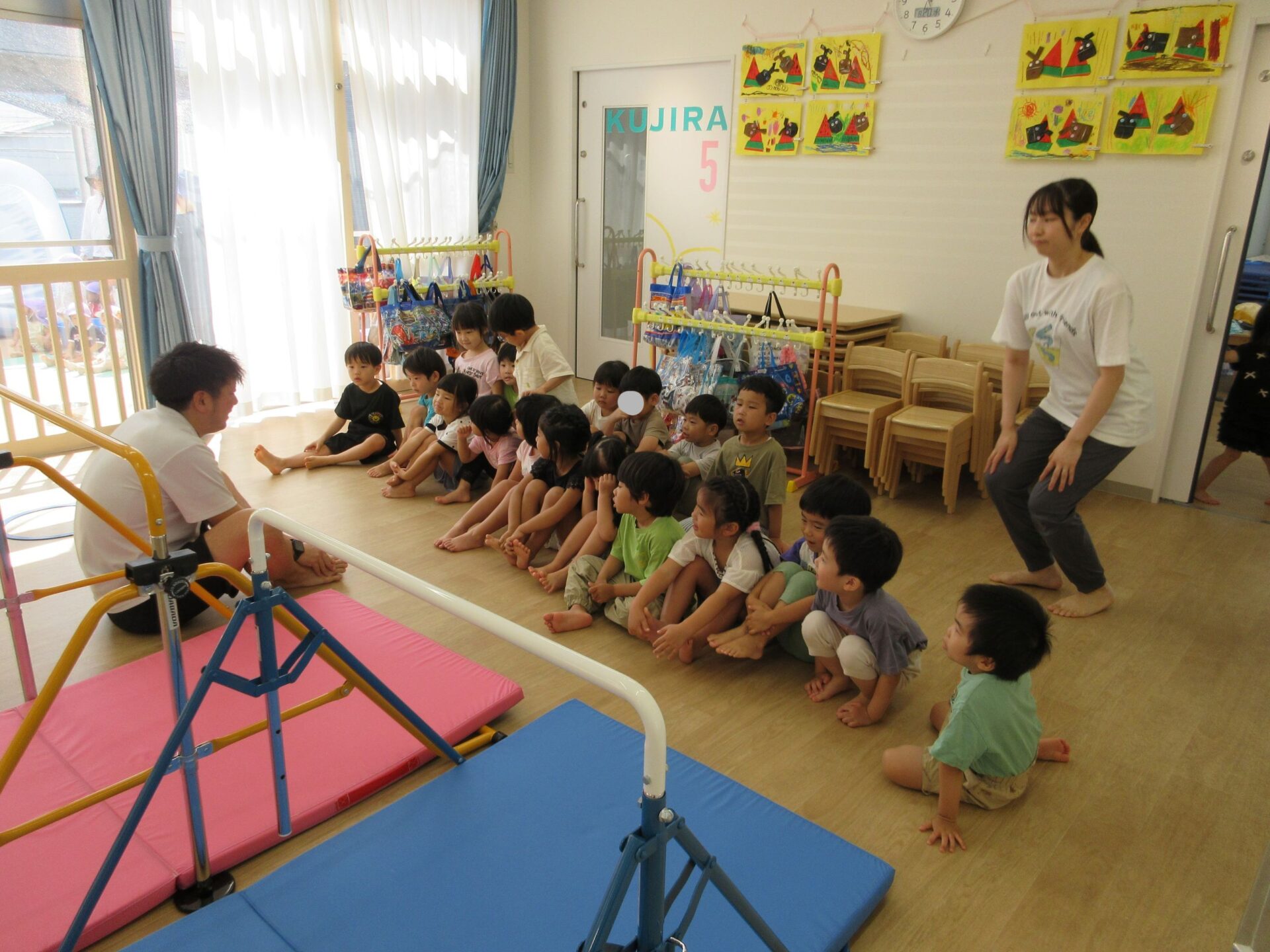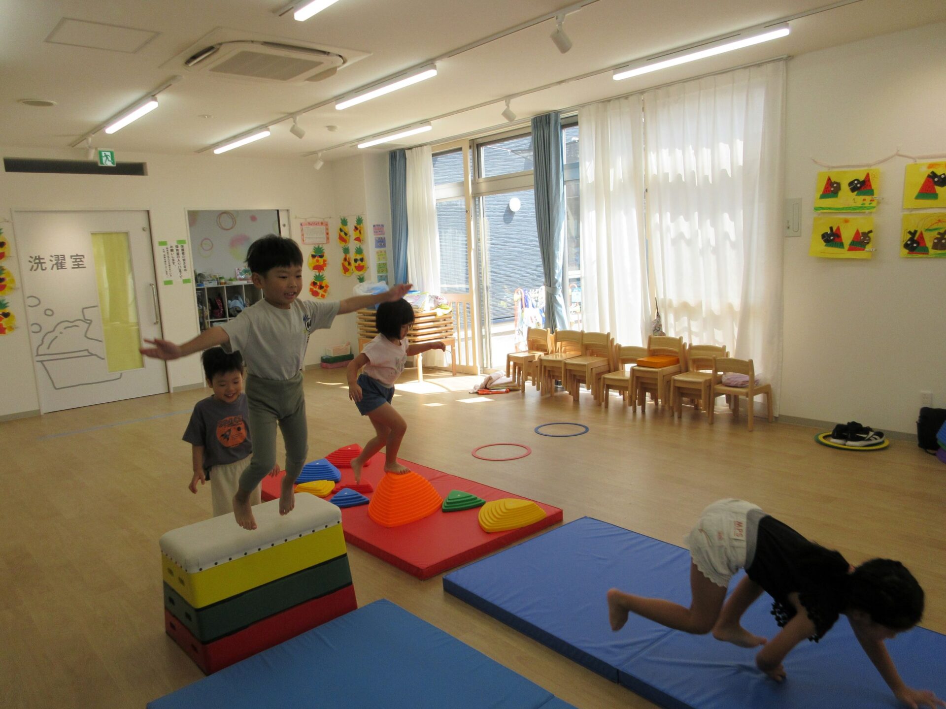 2025.08.28 お知らせ ブログ 運動あそび教室(4歳そら組) 8月20日(水)、10時から4歳そら組の運動遊びの時間が始まりました。 説明や準備運動をして始まりです。 走る、飛び石渡り、跳び箱ジャンプ! それっ! じゃ~んぷ! ジャンプ! スキップもやりましたよ。 上手にできていましたよ。 鉄棒にもぶらさがります。腕を伸ばして。腕を曲げて。 ツバメさん。 説明をしっかり聞いて、何度もチャレンジしたよ。 一覧へ戻る