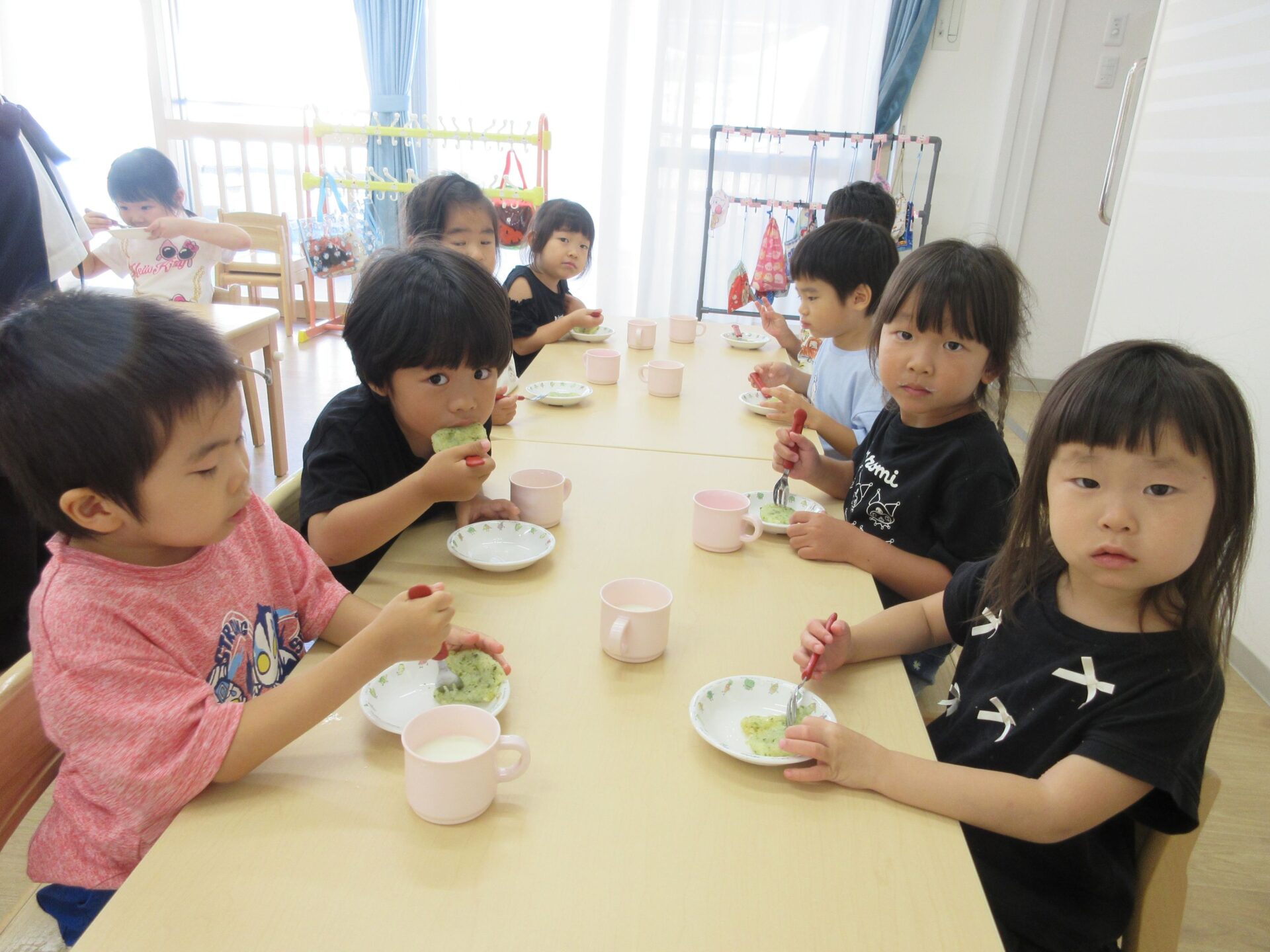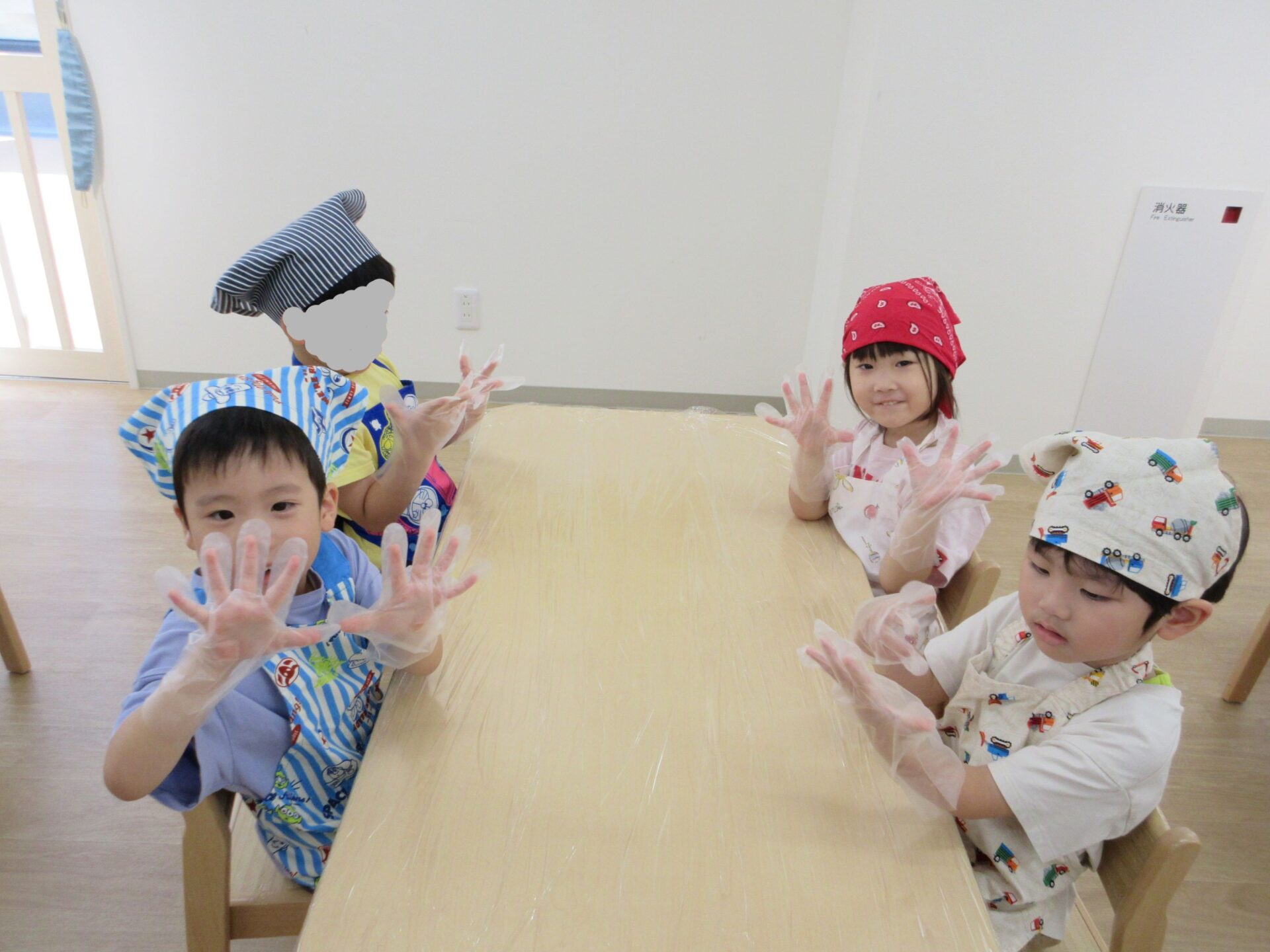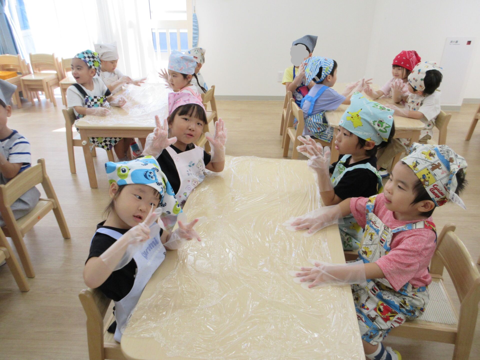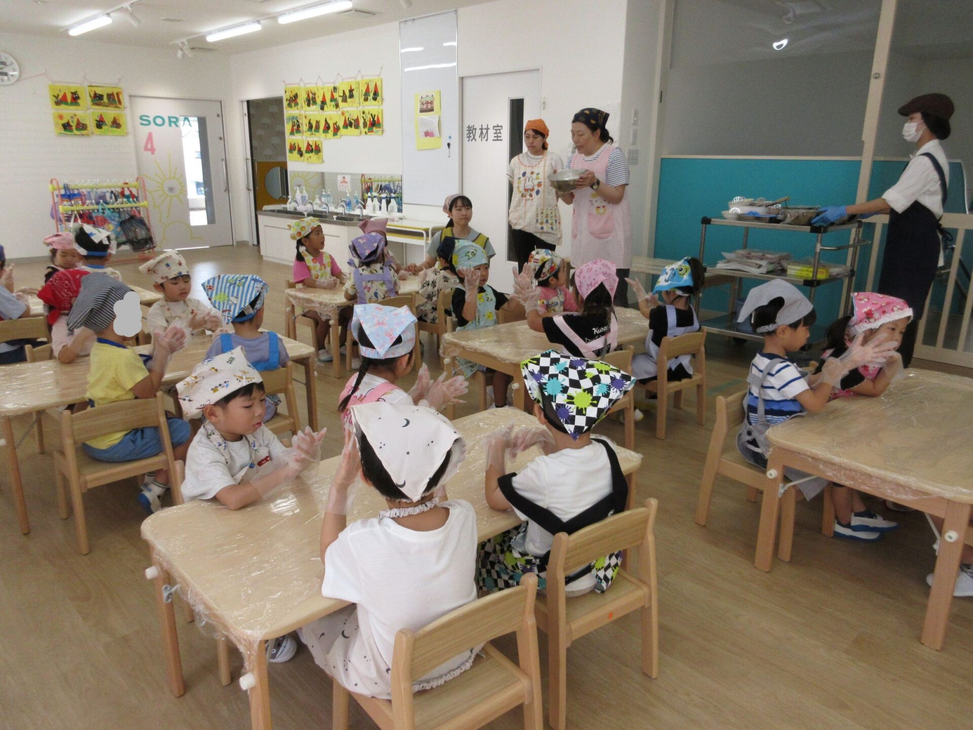 形ができたら、栄養士さんにあずけて、おやつの時間に揚げてもらいます。