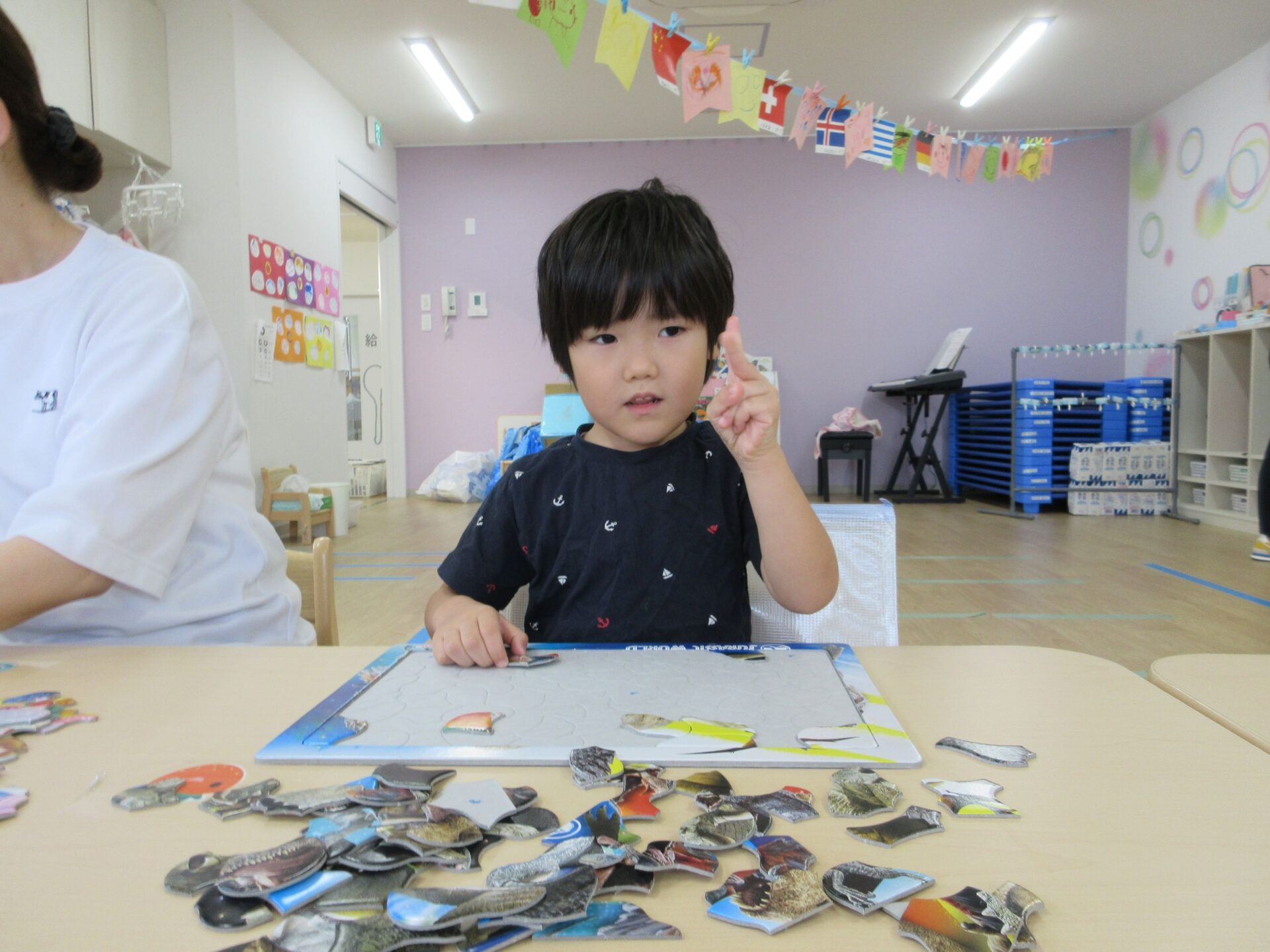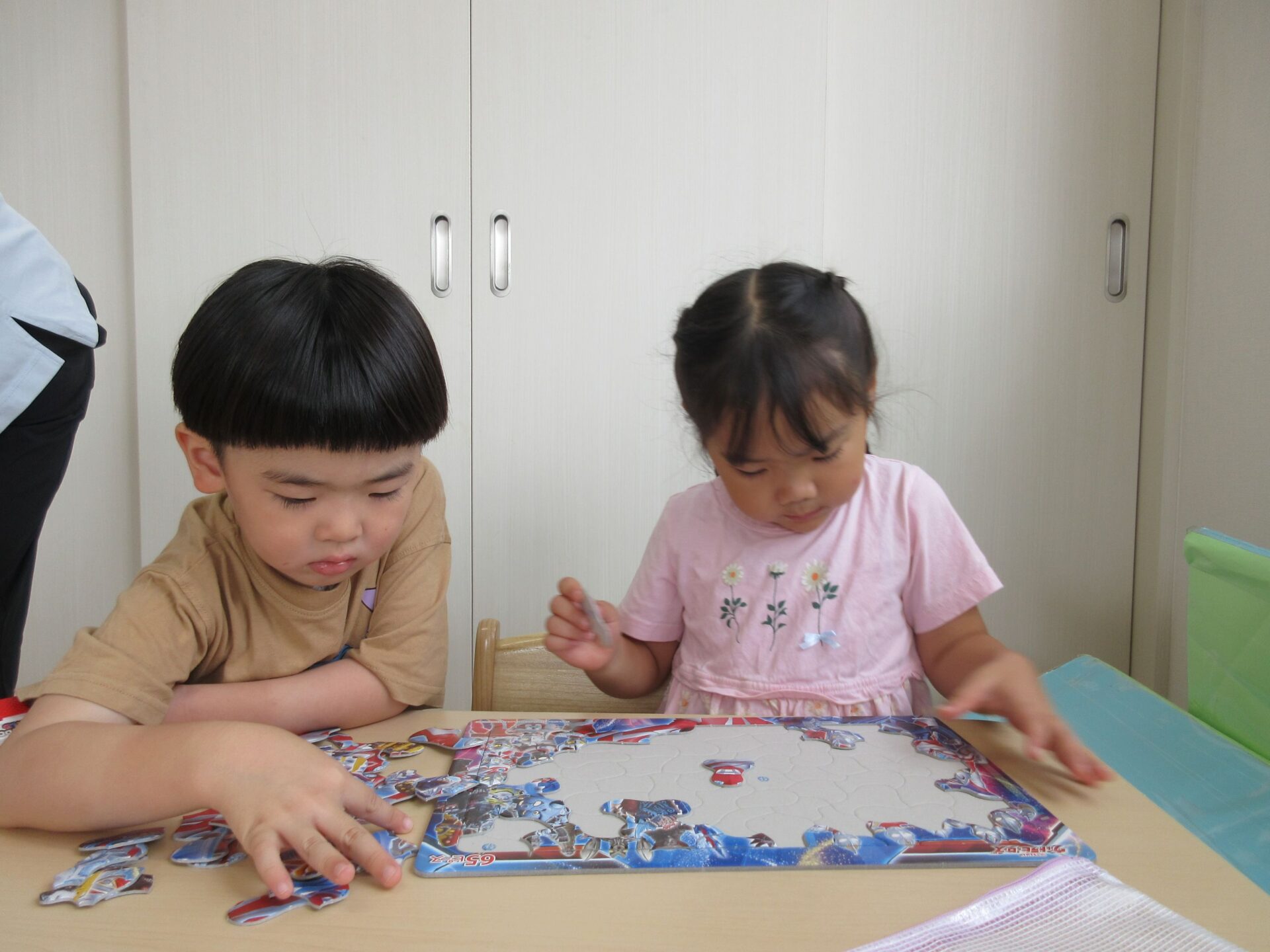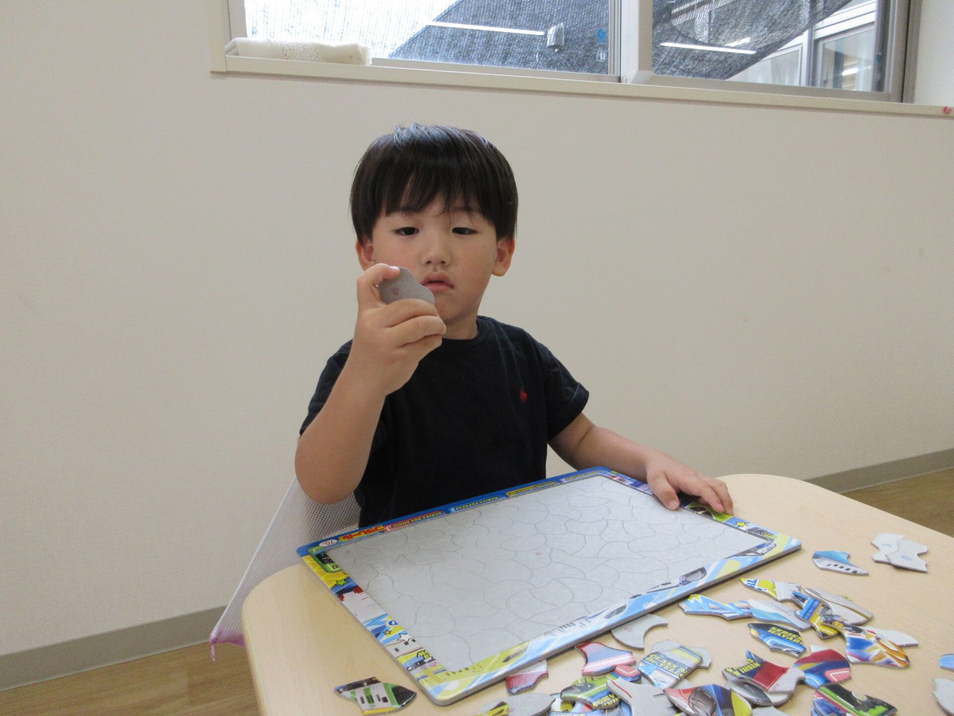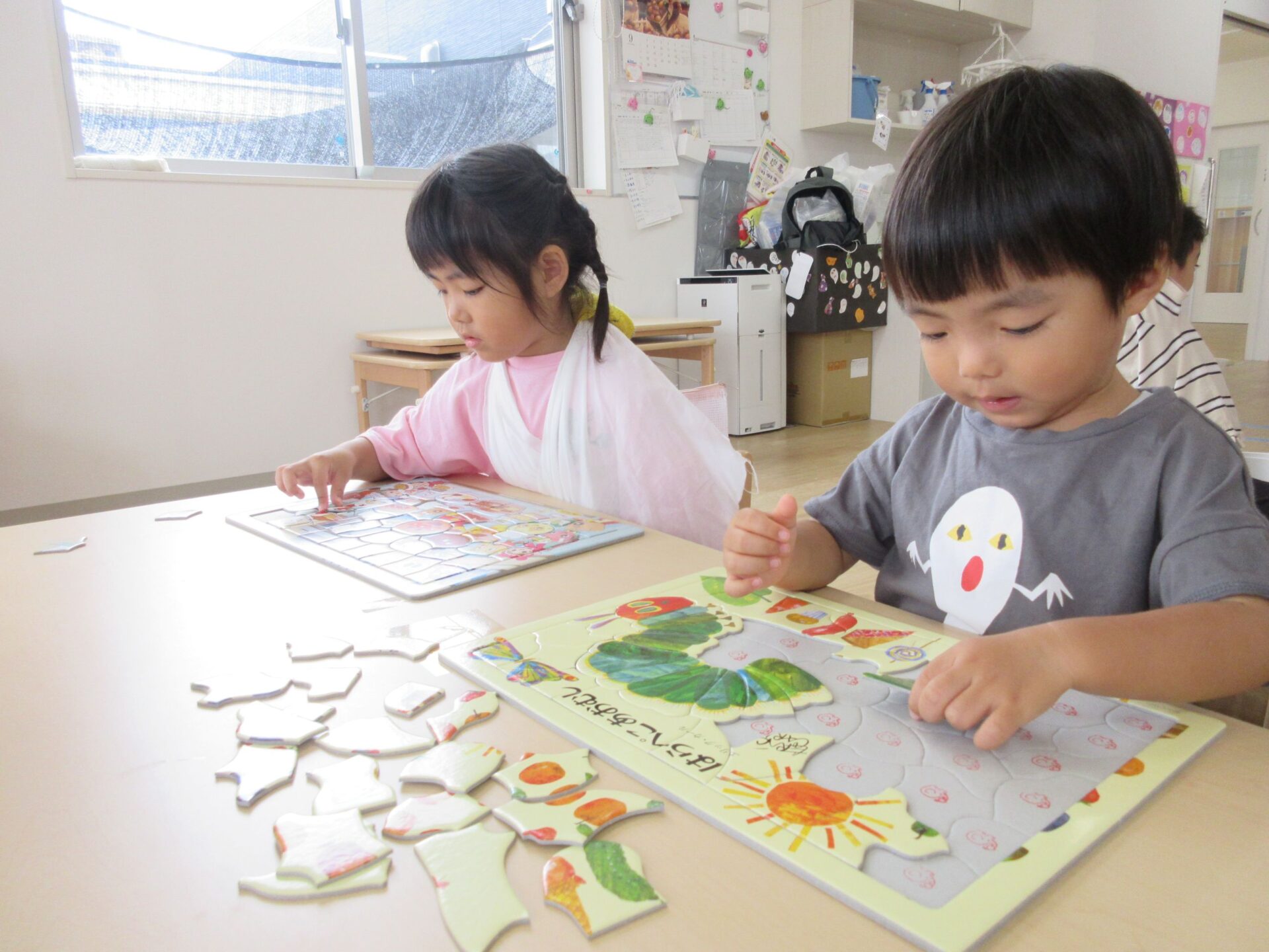 新しいパズルがやってきました\(^o^)/(3歳 にじぐみ)