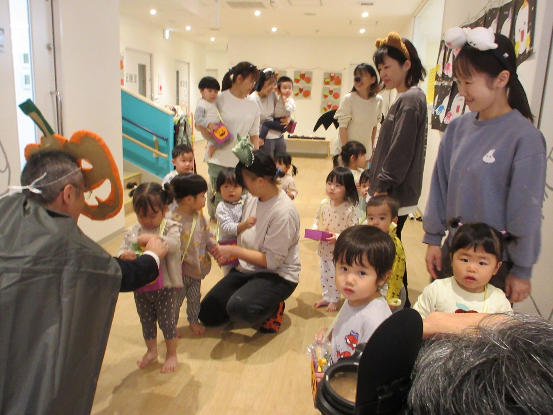 0歳うみ組から、お菓子をもらいに行きました。