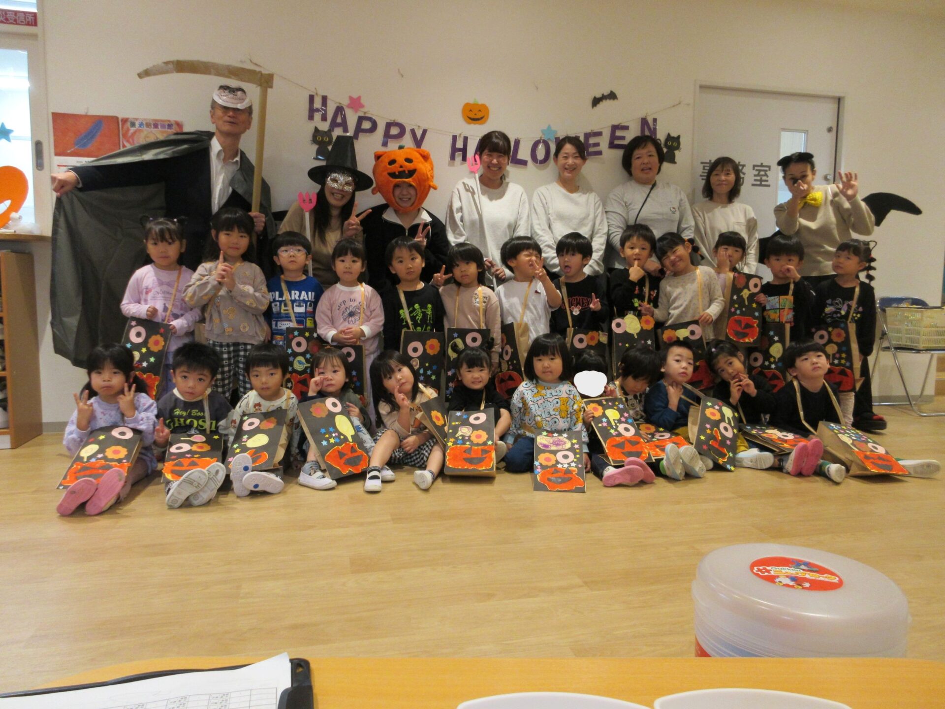 10月31日(金)は、ハロウィン。事前に、お菓子を入れる袋や入れ物を各クラスで作りました。