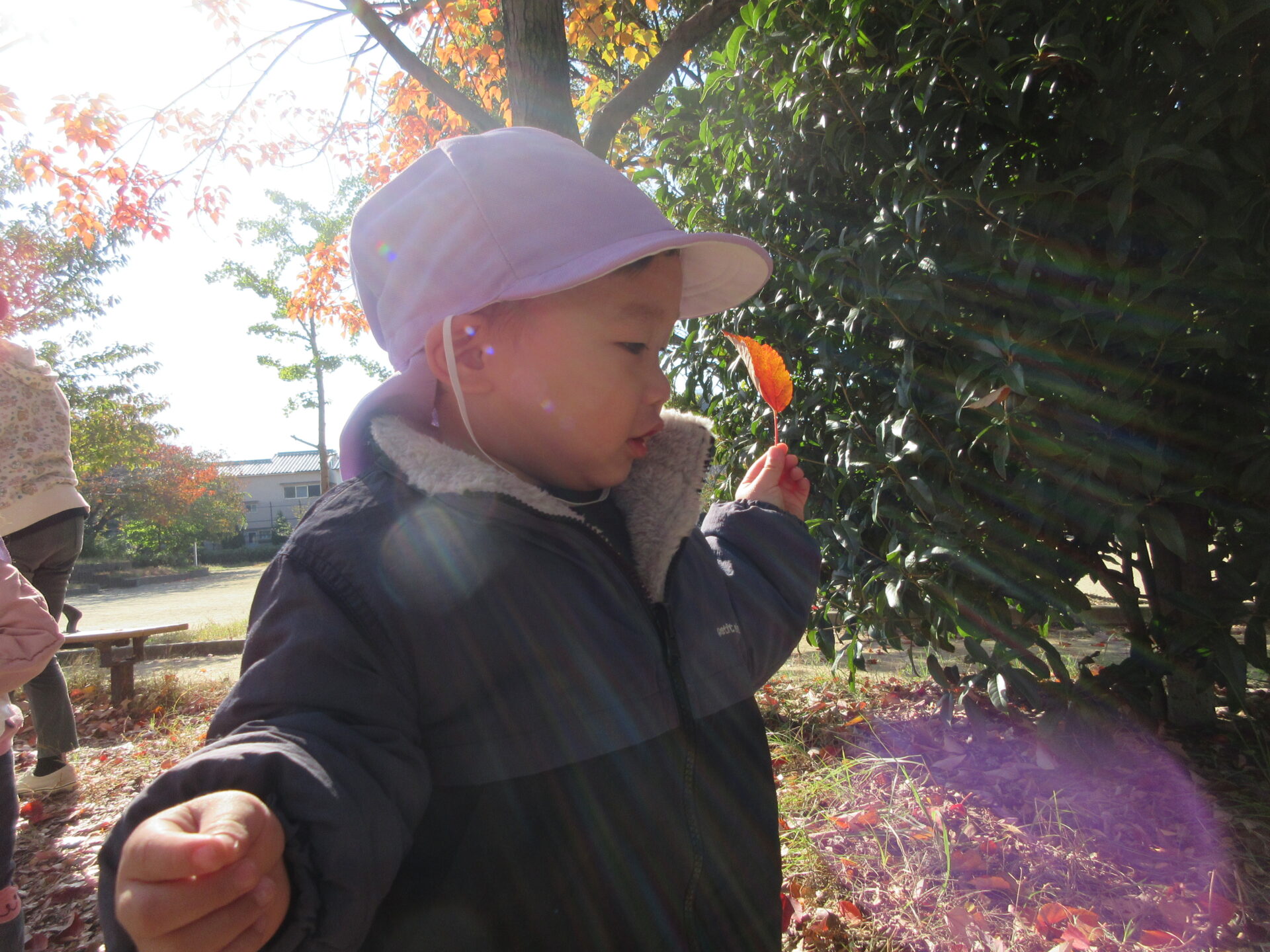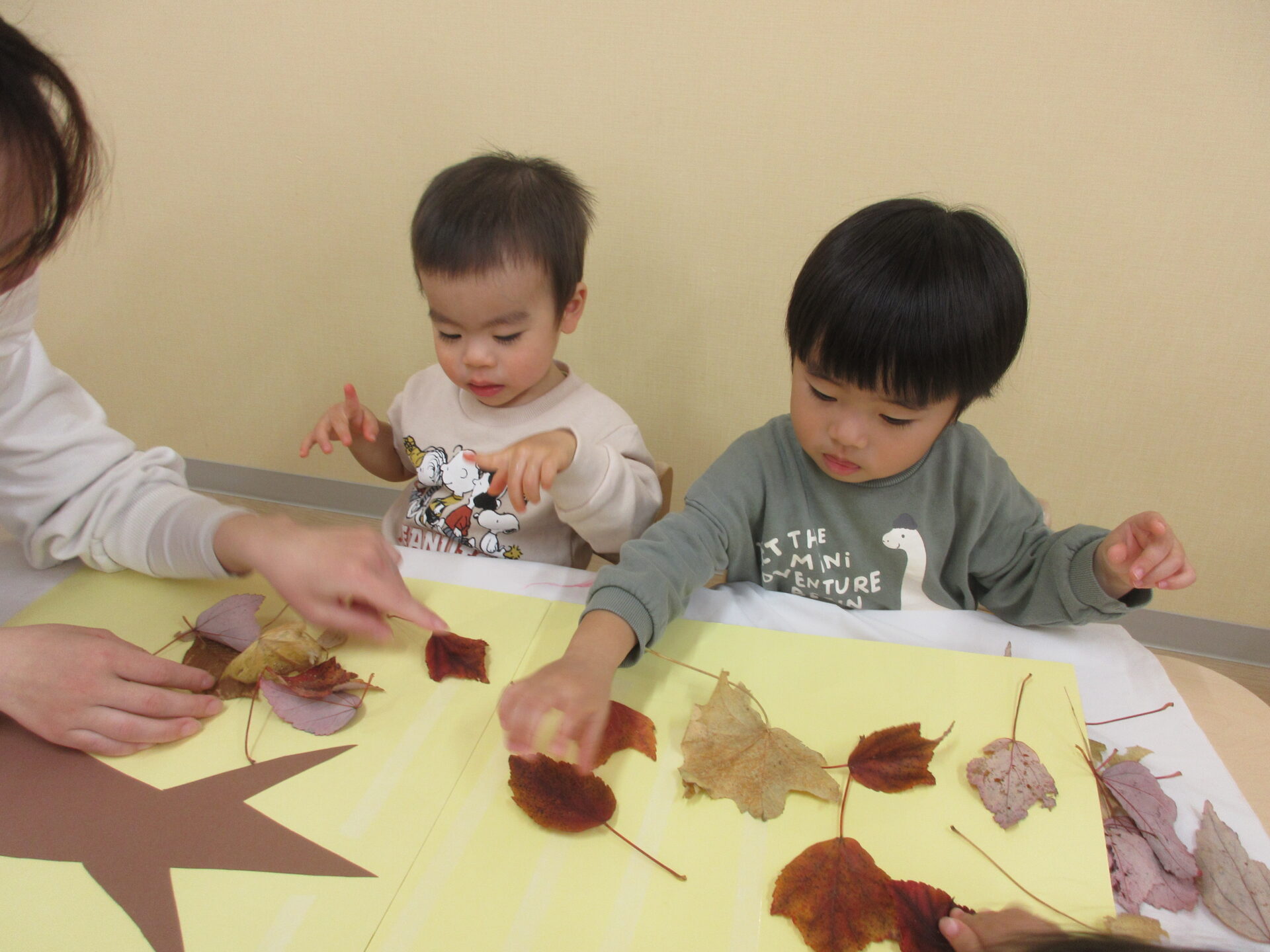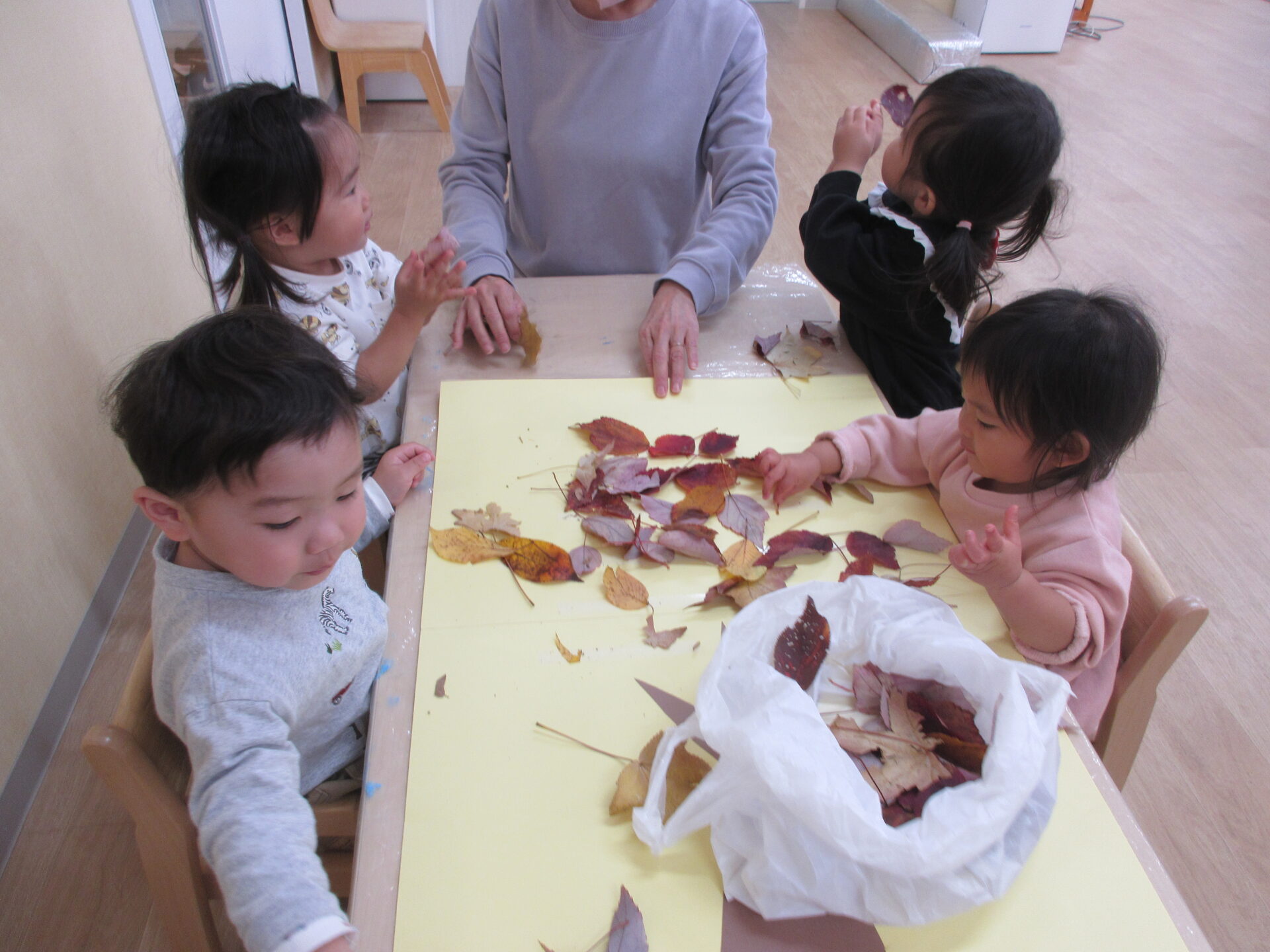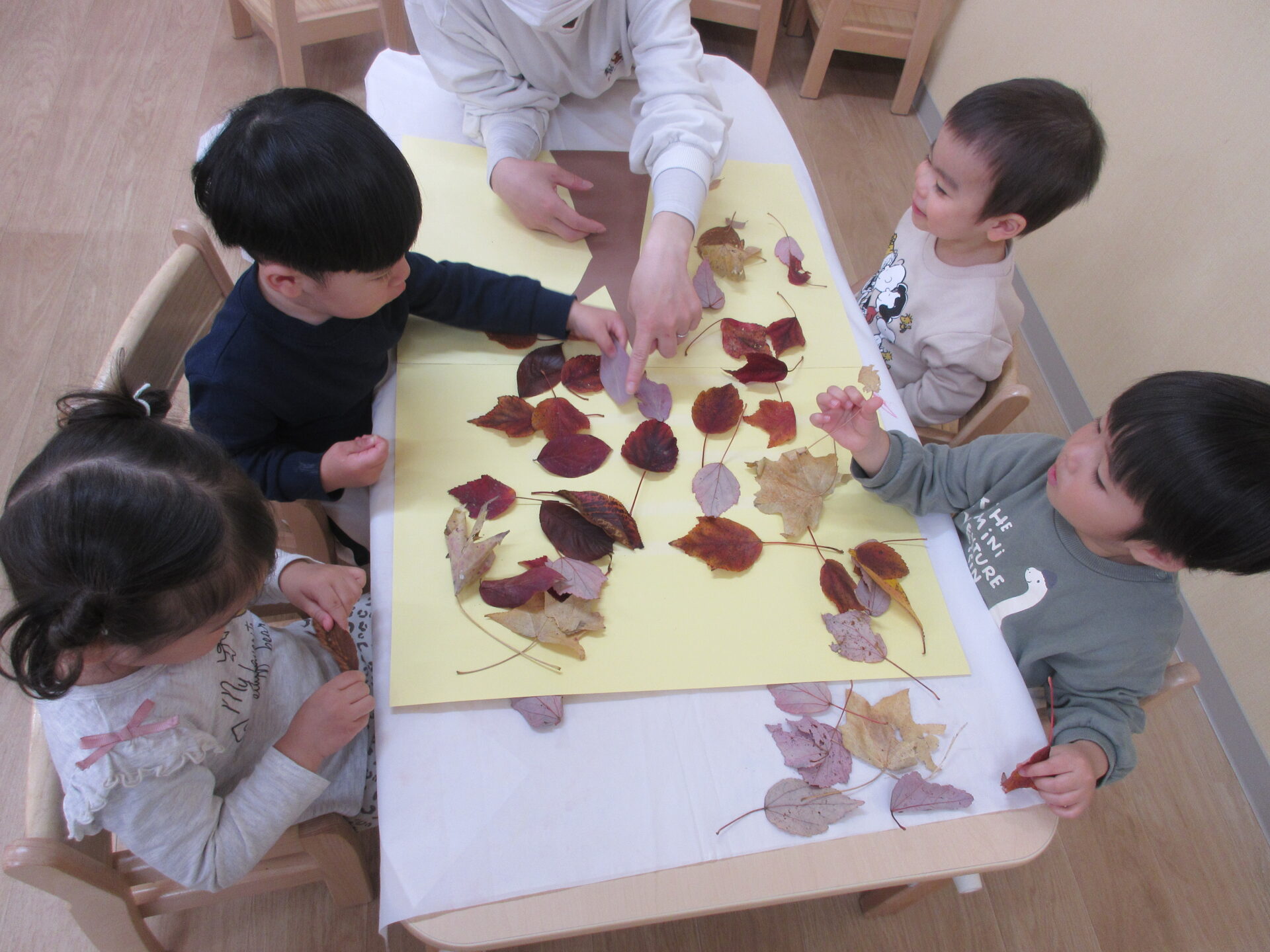 2025.12.01 お知らせ ブログ 小さい秋みーつけた🍂 (1歳 だいちぐみ) 11月20日、美園公園に落ち葉拾いに行きました♪ 暖かかったので落ち葉も少なかったですが、その中でもいろんな色の葉っぱを見つけていました! 「見て~、こっち大きい!こっち小さい!」と大きさの違いも発見していました😯 11月21日、昨日拾ってきた落ち葉を使って製作をしました。どうやって作るのか、先生のお話をしっかりと聞けるようになってきていますよ! 両面テープの所に「ぺたっ!ぺたっ!」と言いながら落ち葉を貼っていきます、、 寂しかった木にどんどんと葉っぱが増えてきて、、 大きな木が完成!秋を感じられる作品になりました🍂 一覧へ戻る