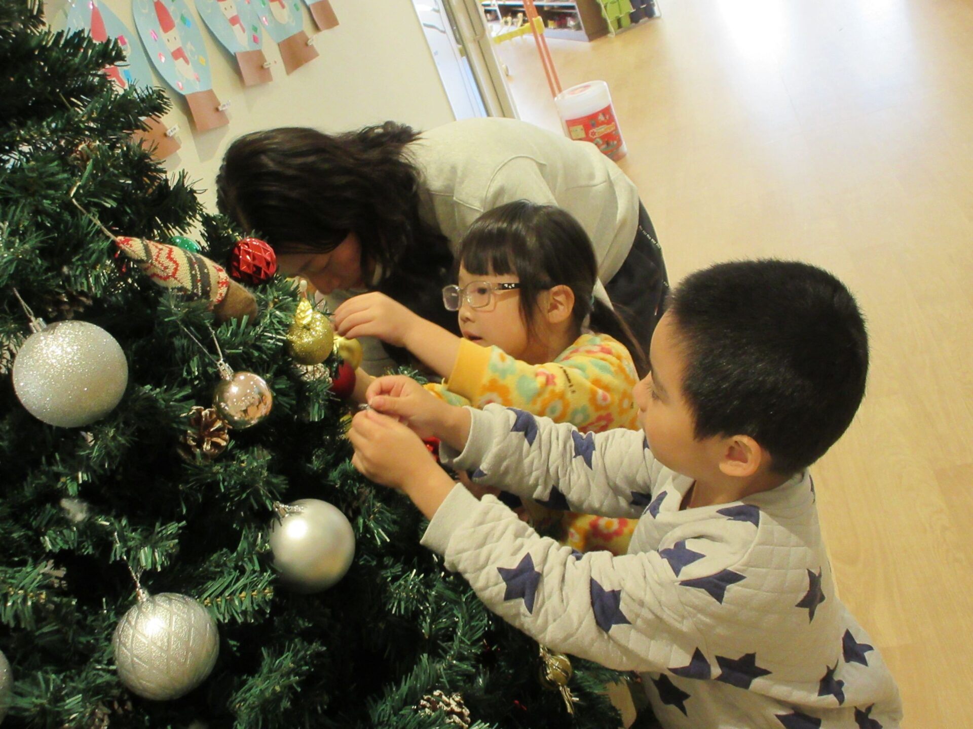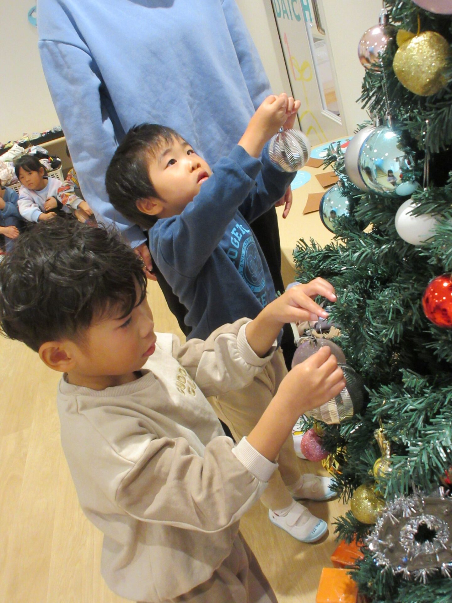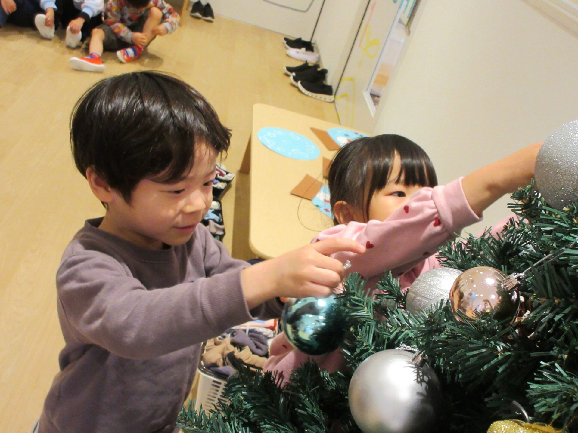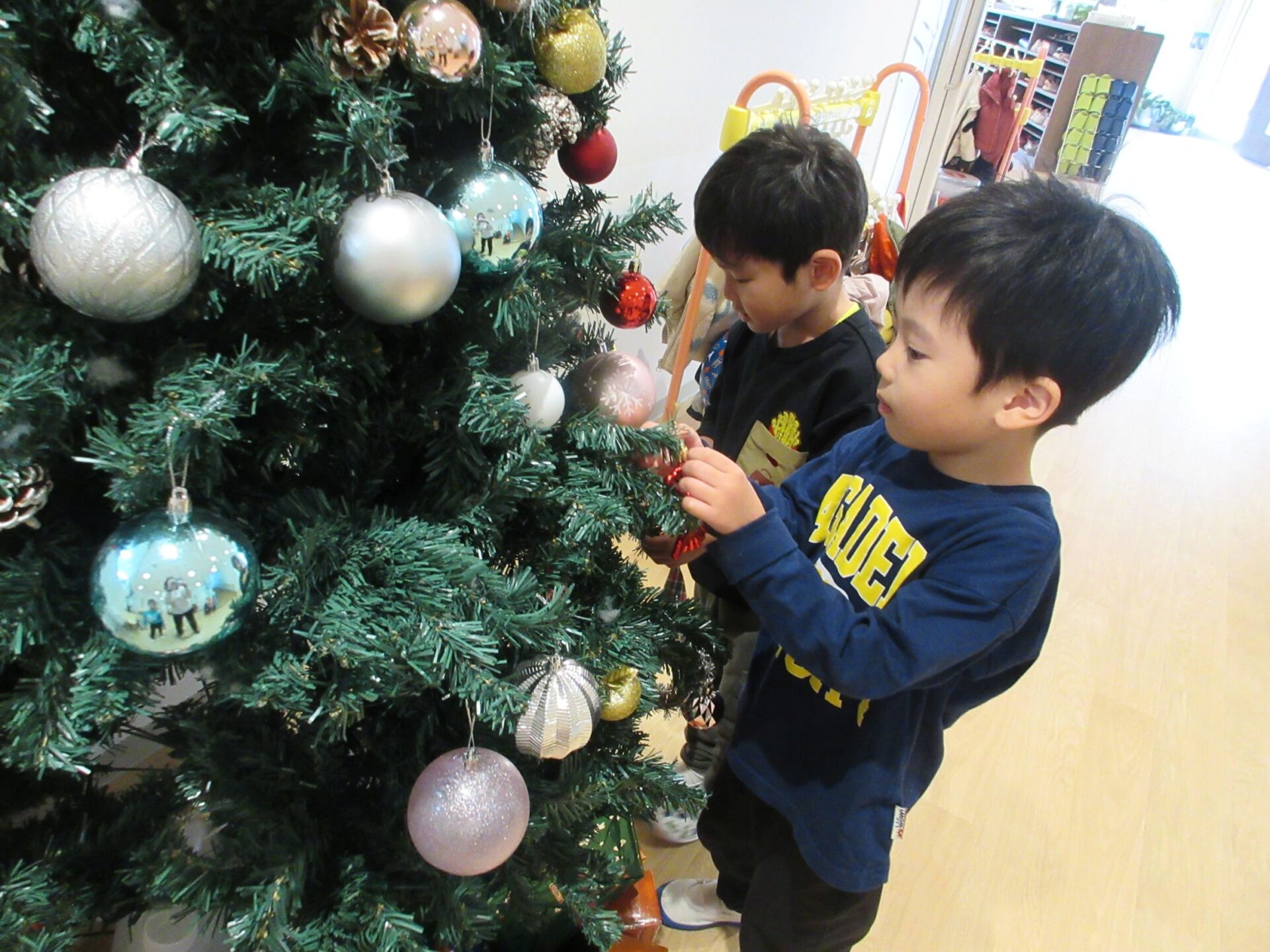 2026.01.06 お知らせ ブログ ツリーの飾りつけをしたよ🎄(4歳そら組) 12月4日 1階のクリスマスツリーに飾りつけをしました(^^♪ ツリーの飾りをもらい✨キラキラだ!見てみてと、大盛り上がり♪ どこに飾ろうかな~♪ 友だちと一緒に、どこに飾ろうかな~♪悩みますね。 🎅サンタさんくるかな❔ワクワク♪ とっても可愛いツリーができあがりました😊メリークリスマス🎅 一覧へ戻る