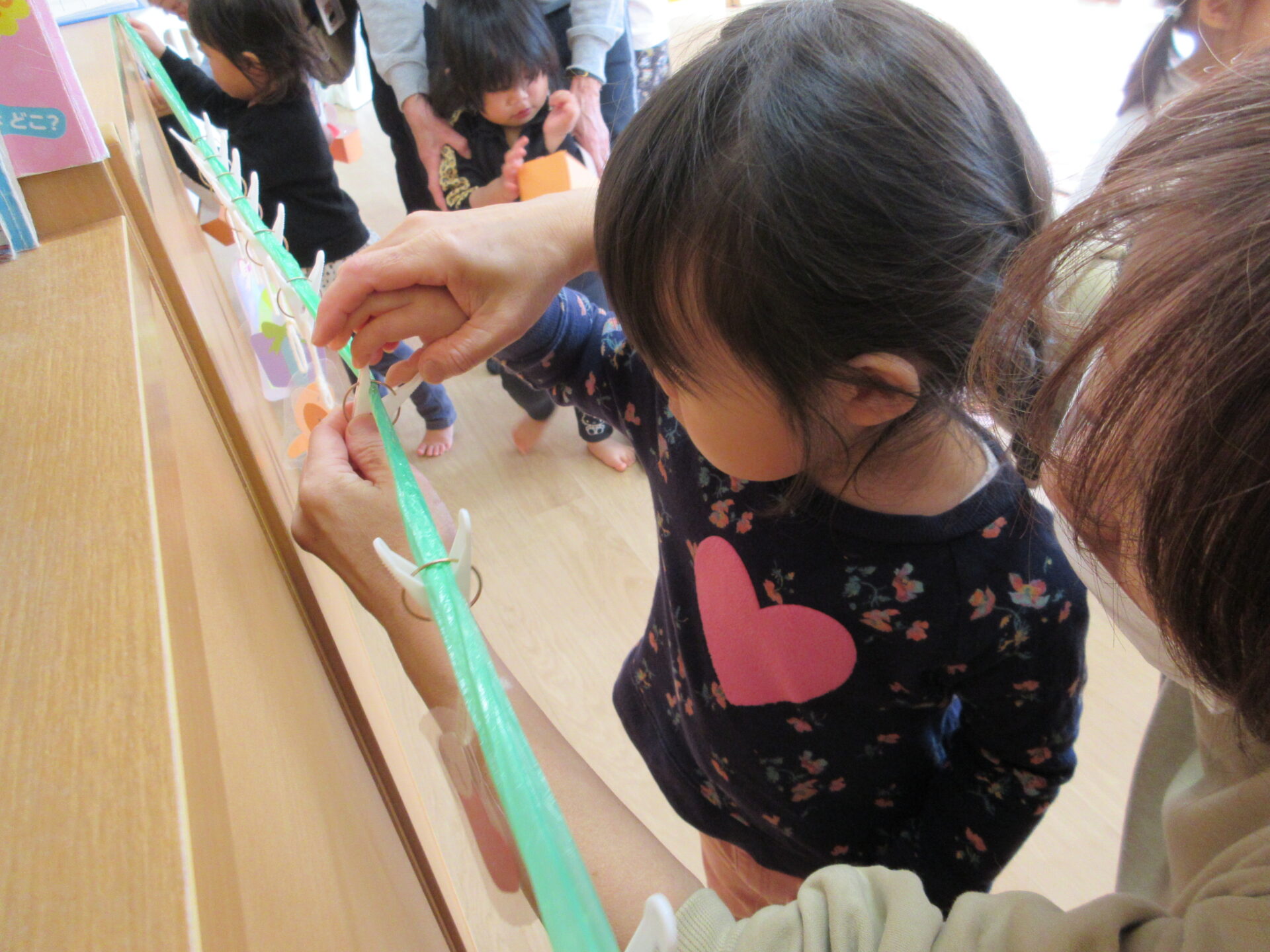 コツをつかんできたのか、自分で洗濯ばさみを指でつまんで取ることも、できるようになっていました✌️