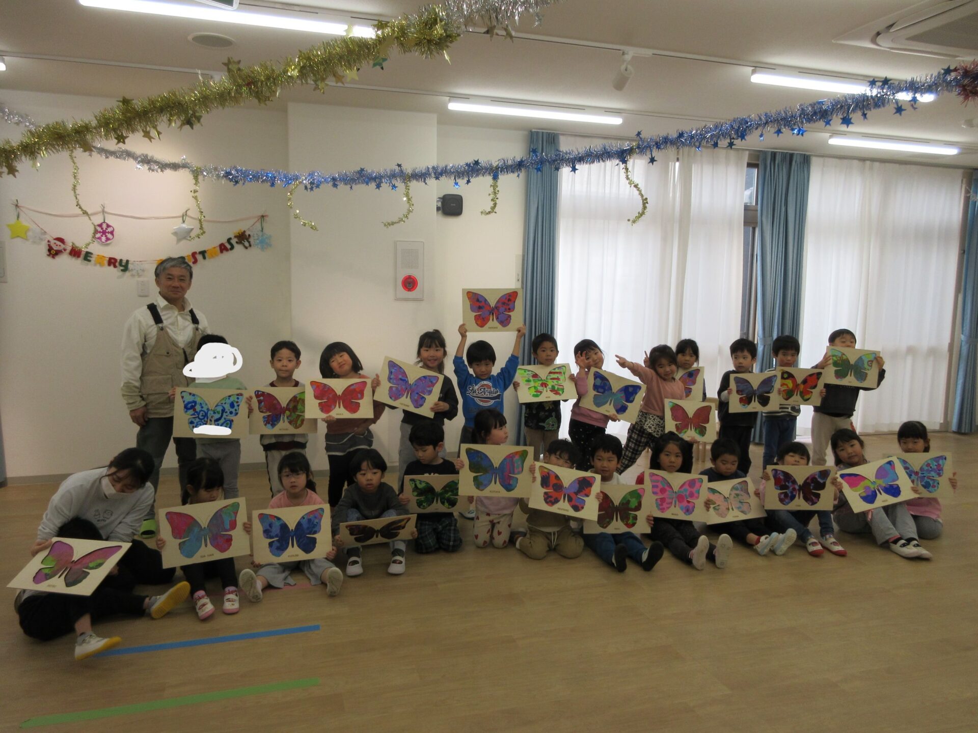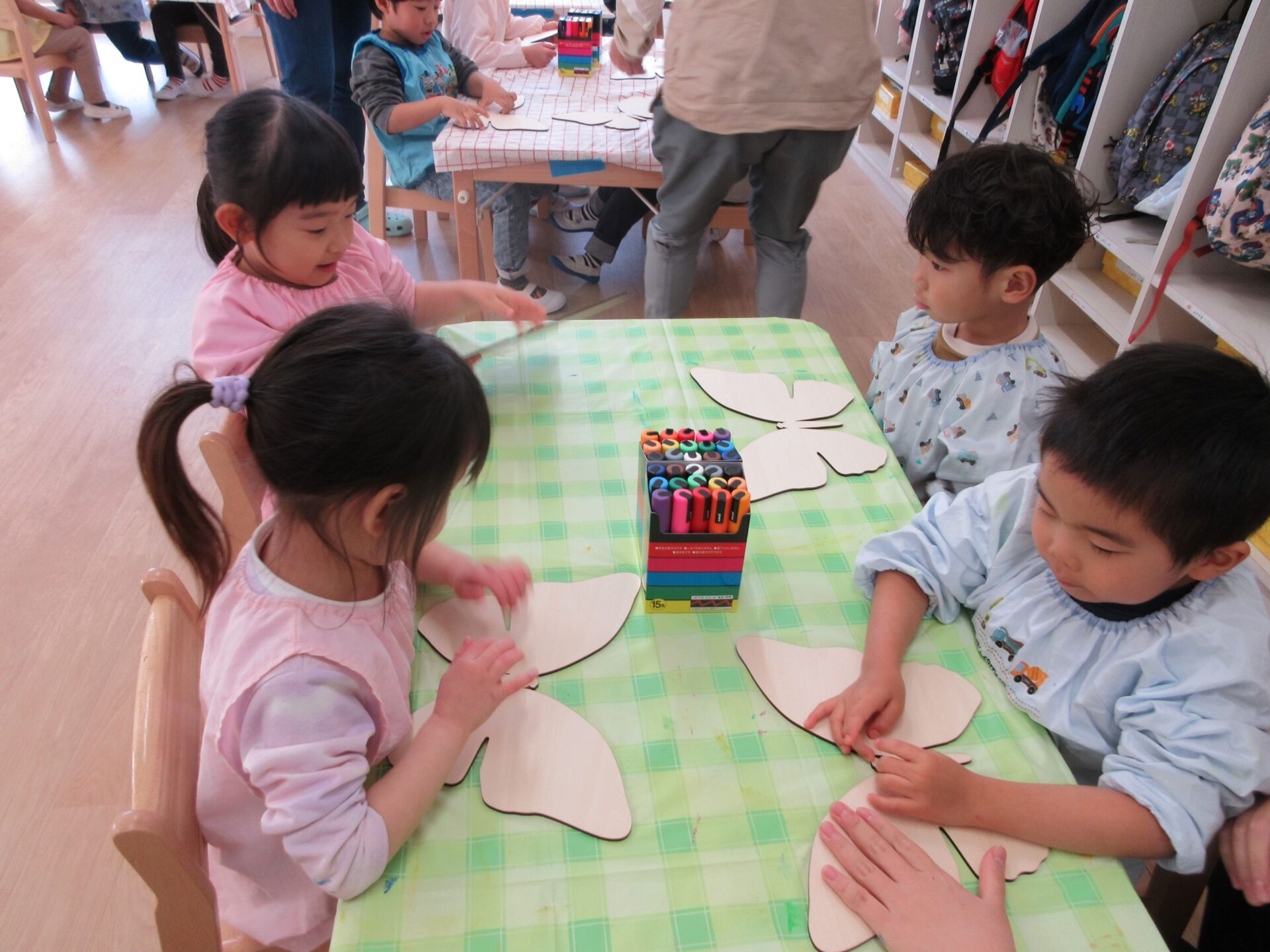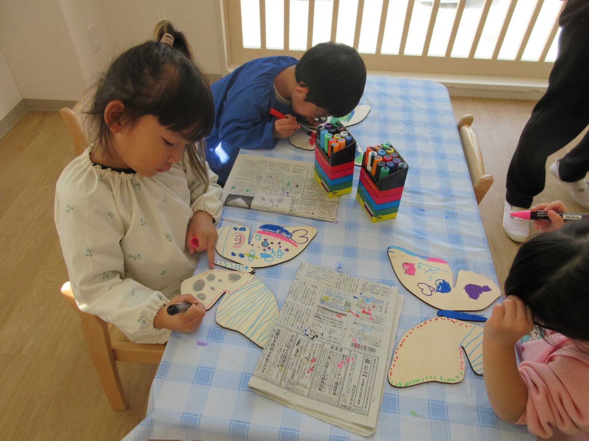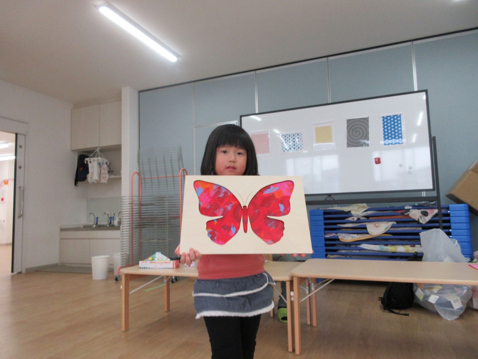 2026.01.07 お知らせ ブログ アート教室したよ🎨(4歳そら組) 12月17日にアート教室をしました\(^o^)/講師は、デザイナーの「なお先生」。 なお先生から、何の模様かな?と問題を出されると「ライオン?」と答えることも。みんなで模様のクイズを楽しみました☆彡 並んでいる絵の具の中から好きな色を選びました!たくさんの色があったのでどの色にしようか悩みながら考えました😊 自分で選んだ色画用紙に好きな模様を描きました。 たくさん描いていると手が絵の具だらけに・・・。手も、1つのアートになりました😊 絵の具が終わると、次は、蝶々にポスカで模様をかきました♬ 完成した作品をなお先生から受け取りました(^^♪ 可愛い作品ができあがりました♡とっても楽しく良い思い出になりました。 一覧へ戻る