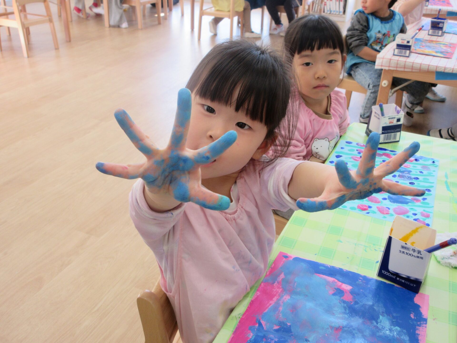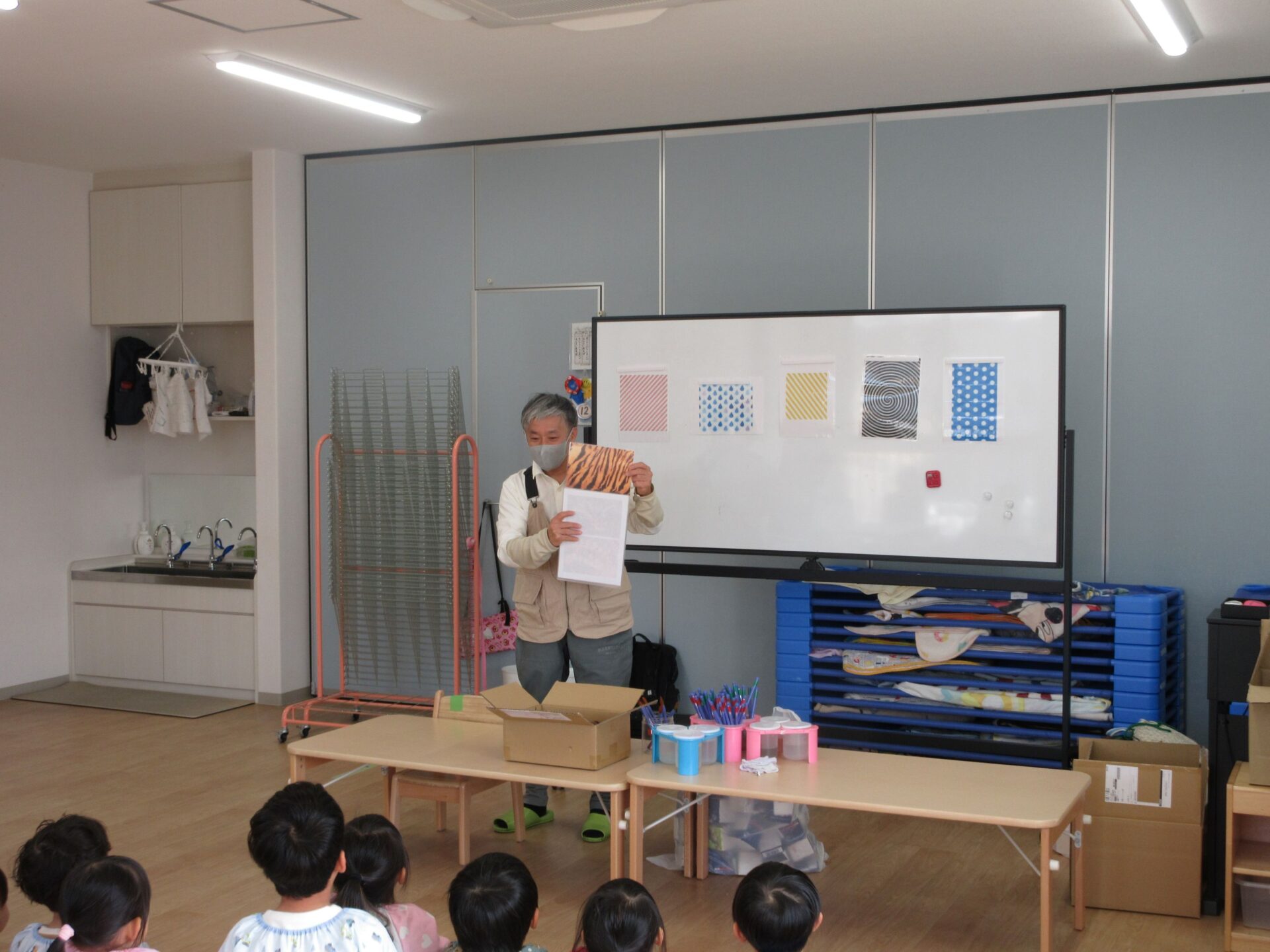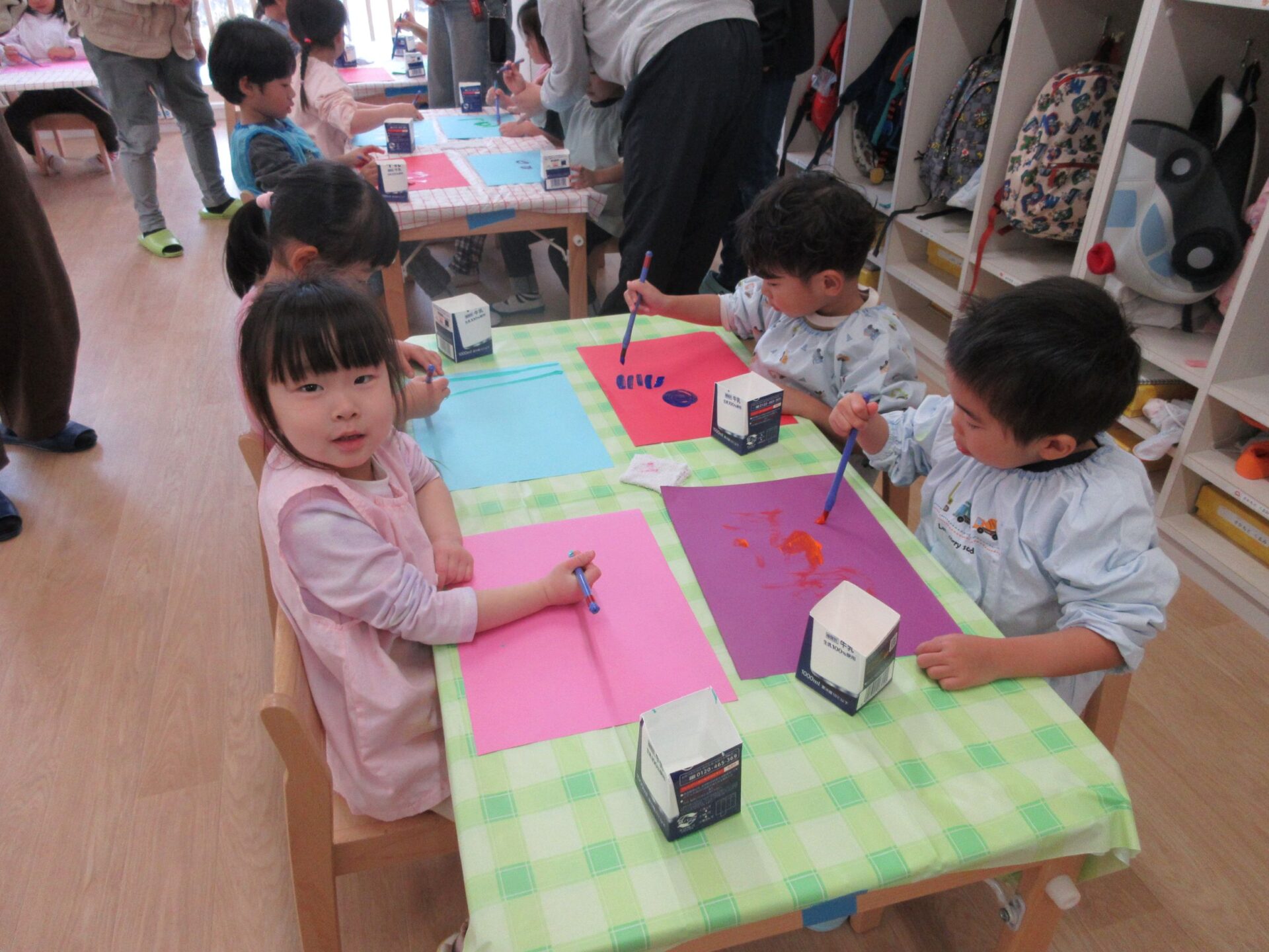 2026.01.07 お知らせ ブログ アート教室したよ🎨(4歳そら組) 12月17日にアート教室をしました\(^o^)/講師は、デザイナーの「なお先生」。 なお先生から、何の模様かな?と問題を出されると「ライオン?」と答えることも。みんなで模様のクイズを楽しみました☆彡 並んでいる絵の具の中から好きな色を選びました!たくさんの色があったのでどの色にしようか悩みながら考えました😊 自分で選んだ色画用紙に好きな模様を描きました。 たくさん描いていると手が絵の具だらけに・・・。手も、1つのアートになりました😊 絵の具が終わると、次は、蝶々にポスカで模様をかきました♬ 完成した作品をなお先生から受け取りました(^^♪ 可愛い作品ができあがりました♡とっても楽しく良い思い出になりました。 一覧へ戻る