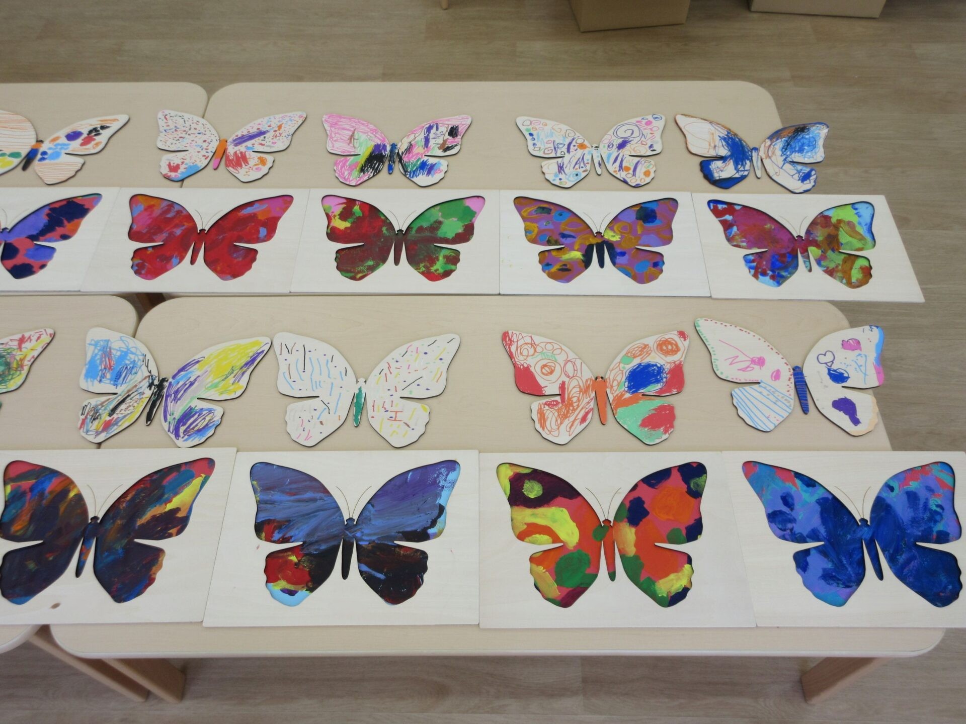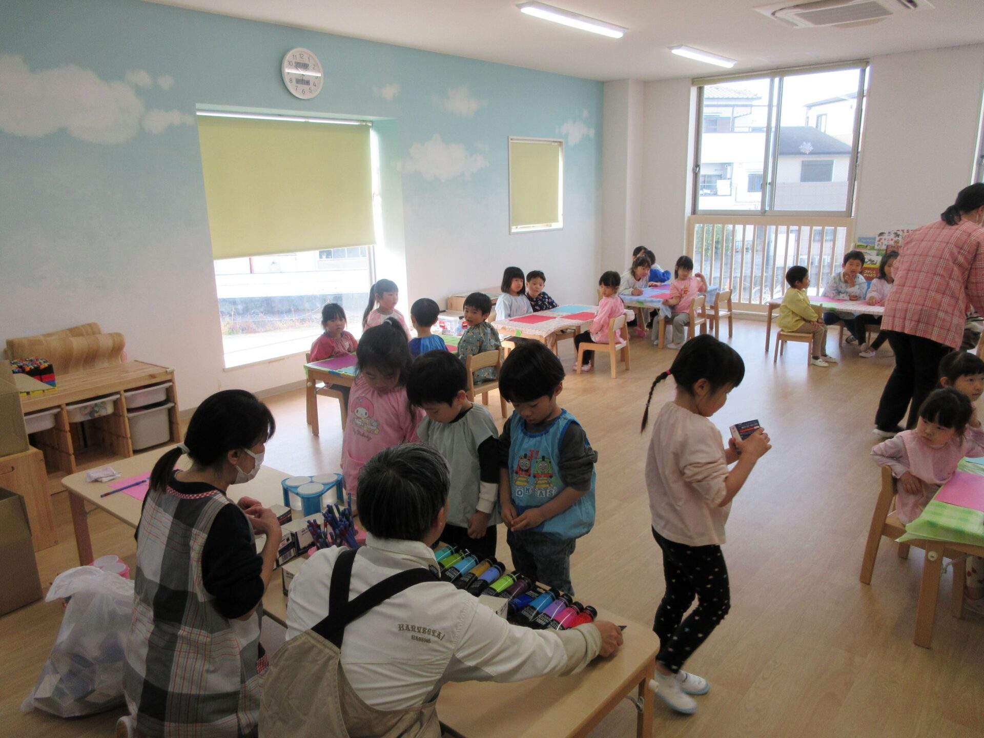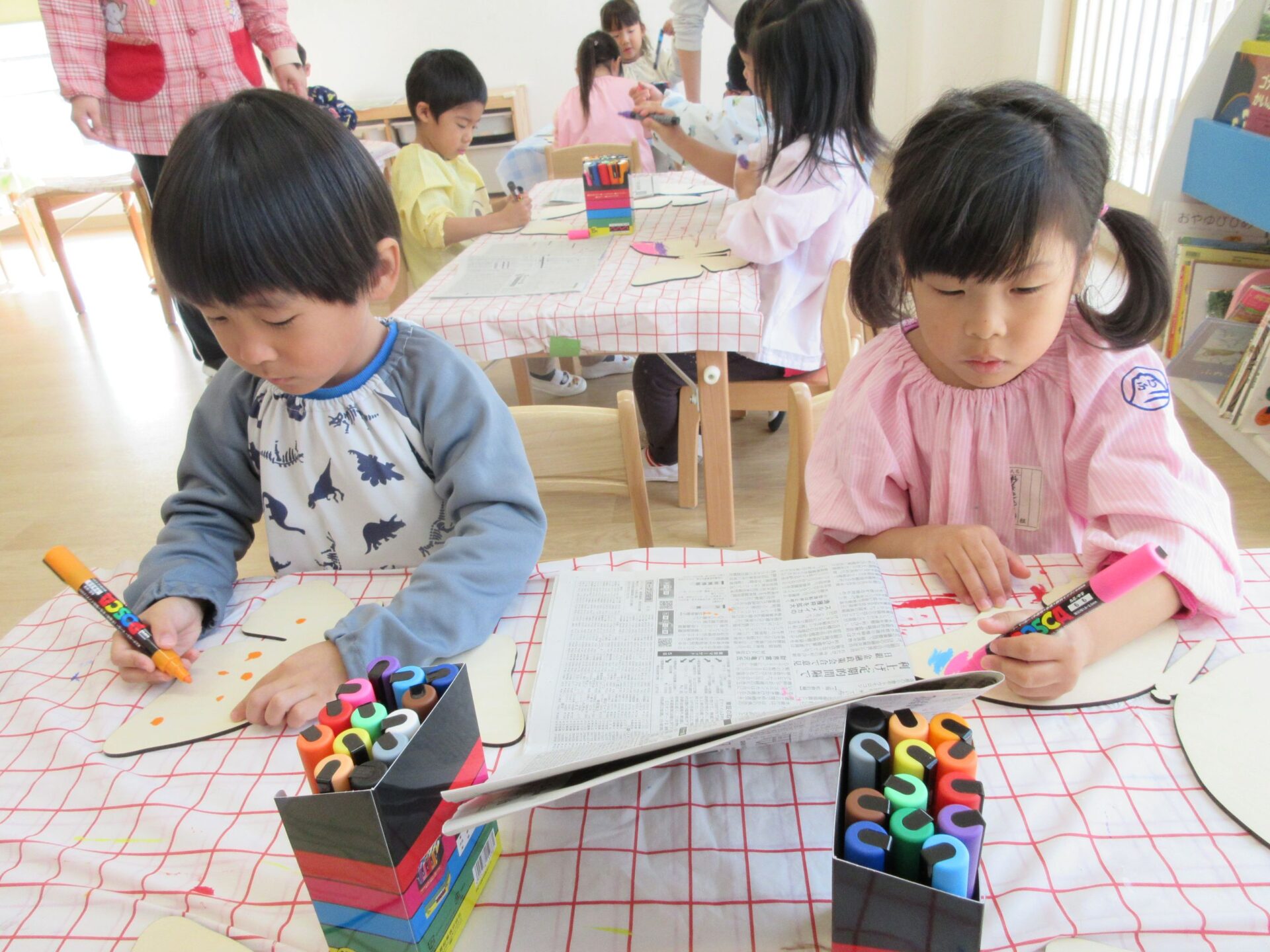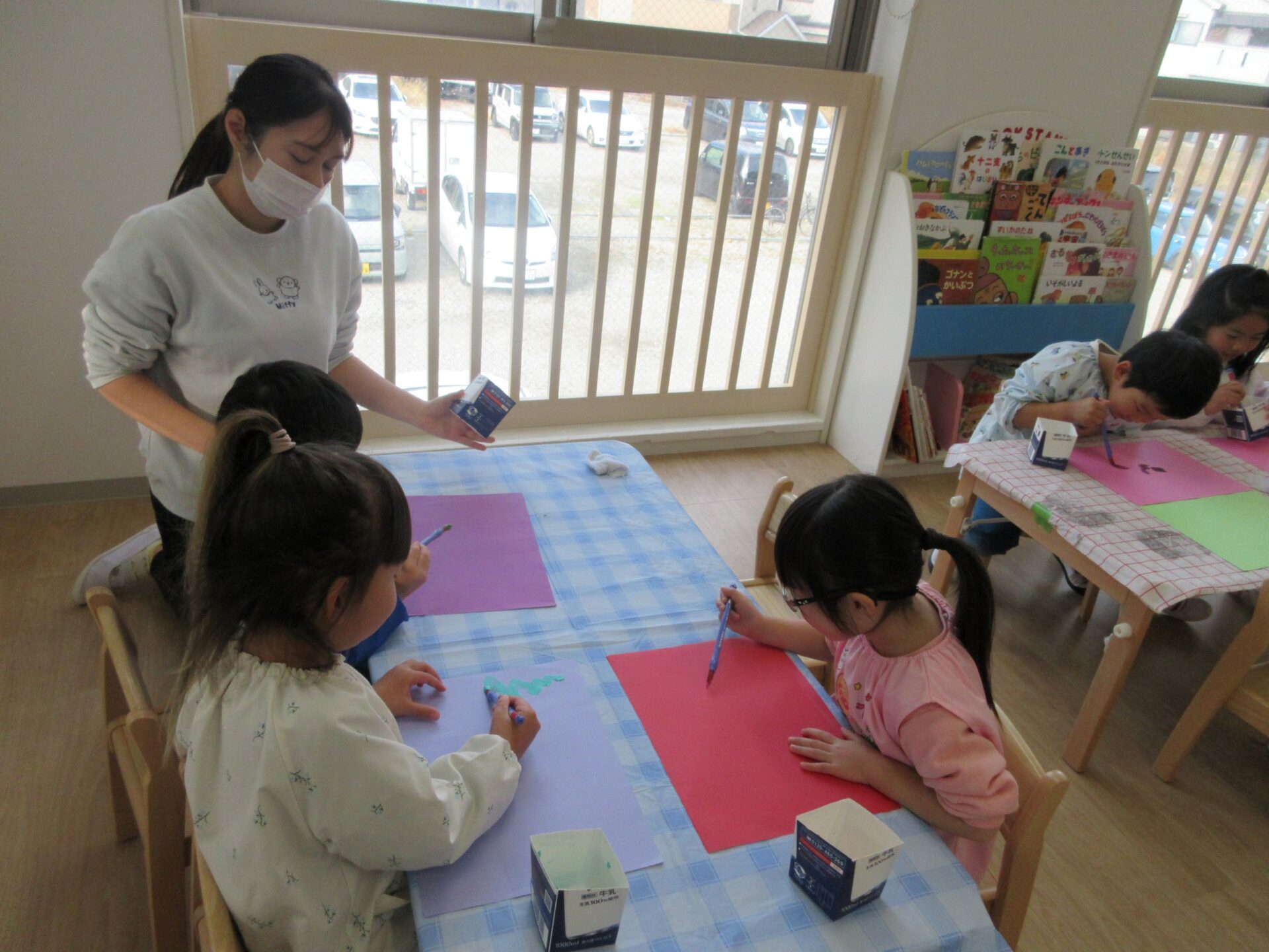 2026.01.07 お知らせ ブログ アート教室したよ🎨(4歳そら組) 12月17日にアート教室をしました\(^o^)/講師は、デザイナーの「なお先生」。 なお先生から、何の模様かな?と問題を出されると「ライオン?」と答えることも。みんなで模様のクイズを楽しみました☆彡 並んでいる絵の具の中から好きな色を選びました!たくさんの色があったのでどの色にしようか悩みながら考えました😊 自分で選んだ色画用紙に好きな模様を描きました。 たくさん描いていると手が絵の具だらけに・・・。手も、1つのアートになりました😊 絵の具が終わると、次は、蝶々にポスカで模様をかきました♬ 完成した作品をなお先生から受け取りました(^^♪ 可愛い作品ができあがりました♡とっても楽しく良い思い出になりました。 一覧へ戻る