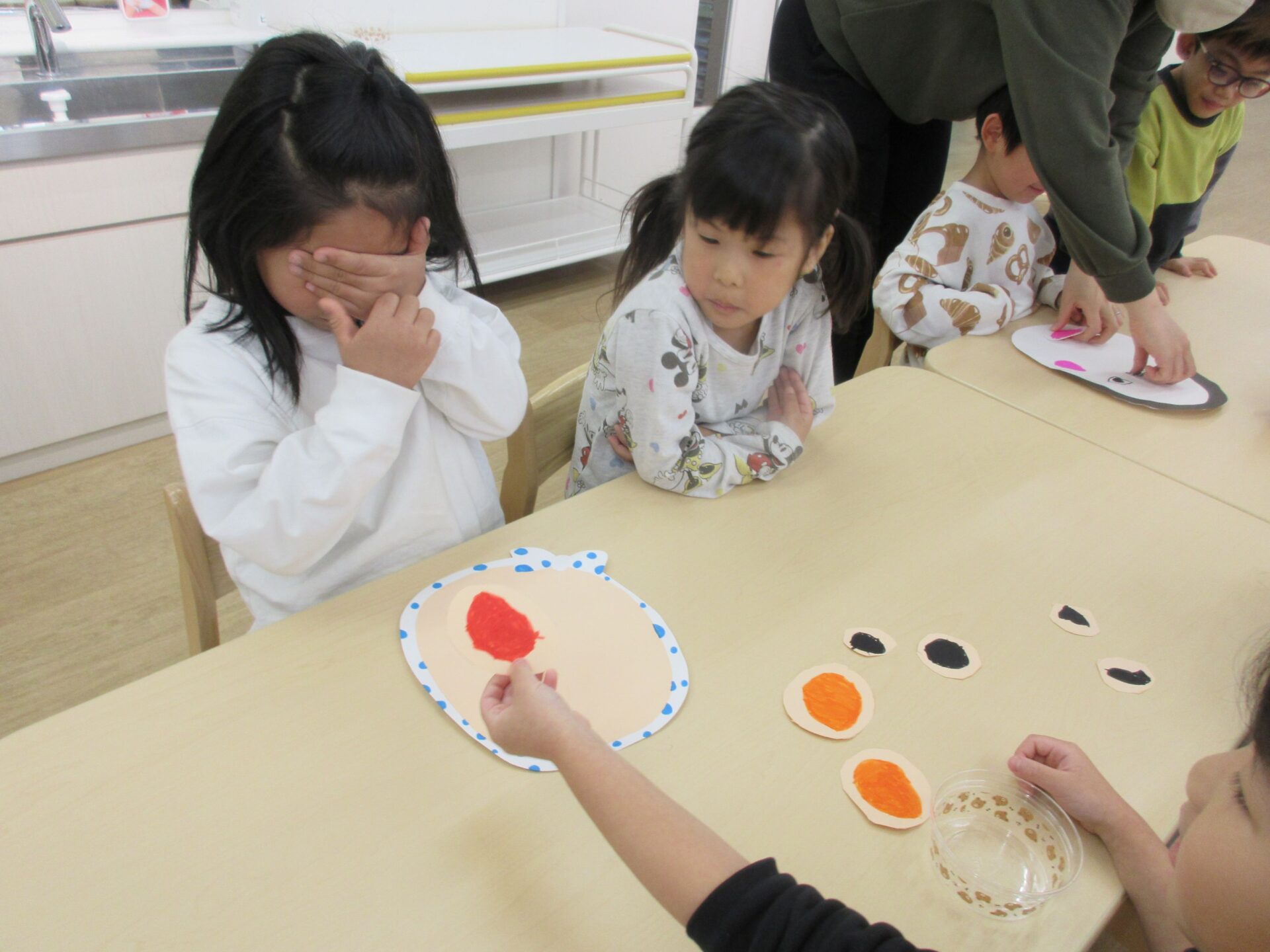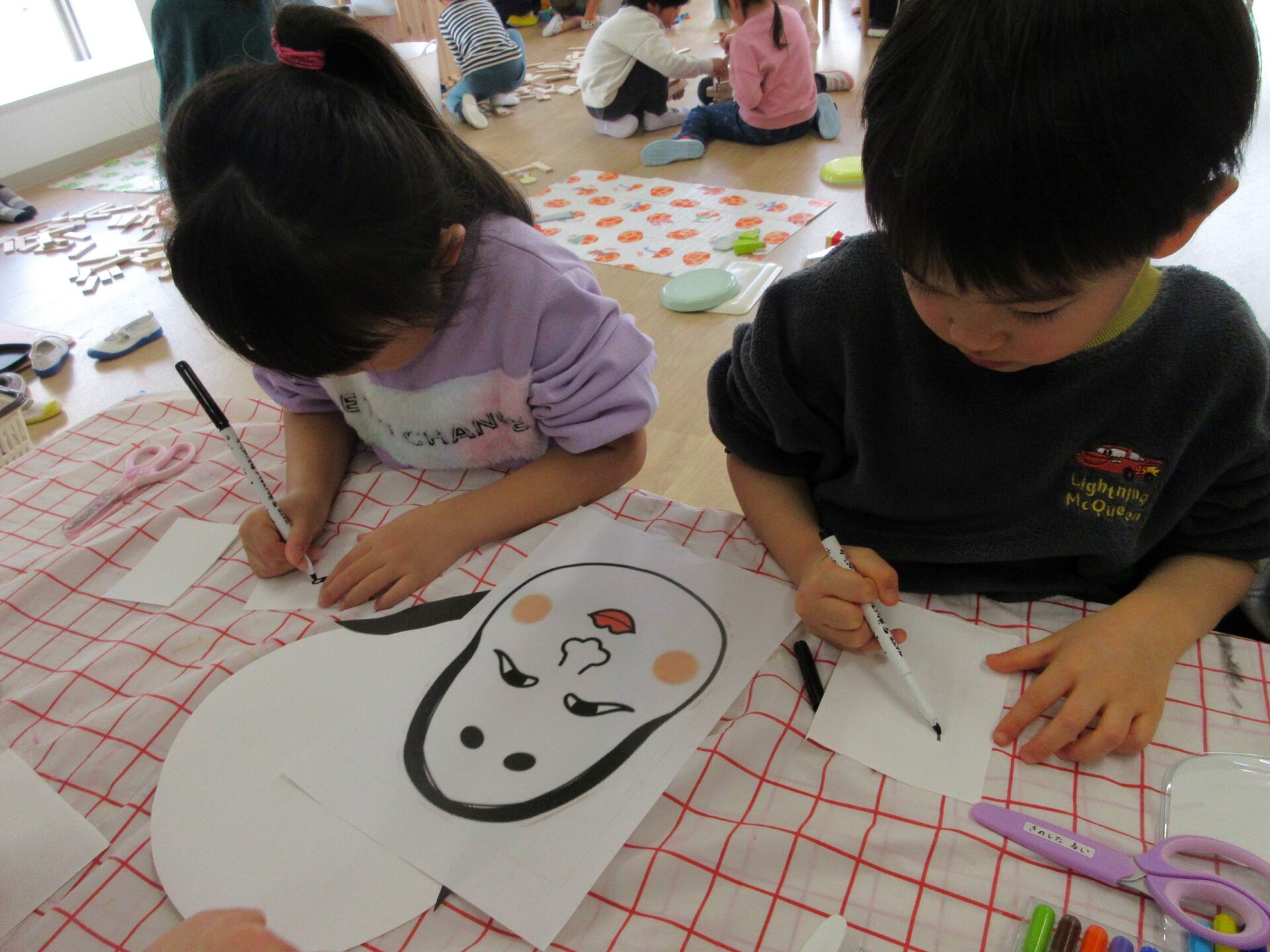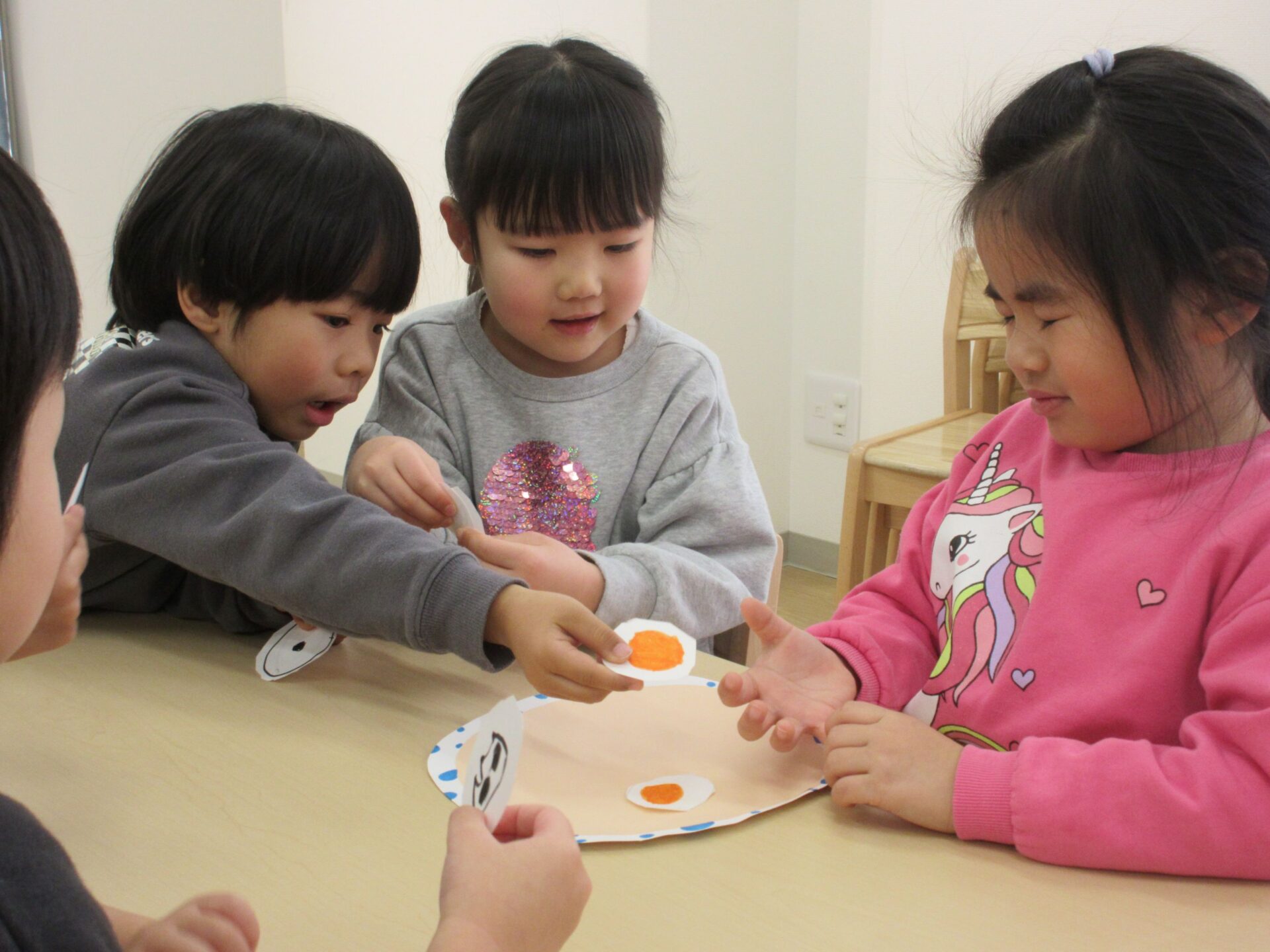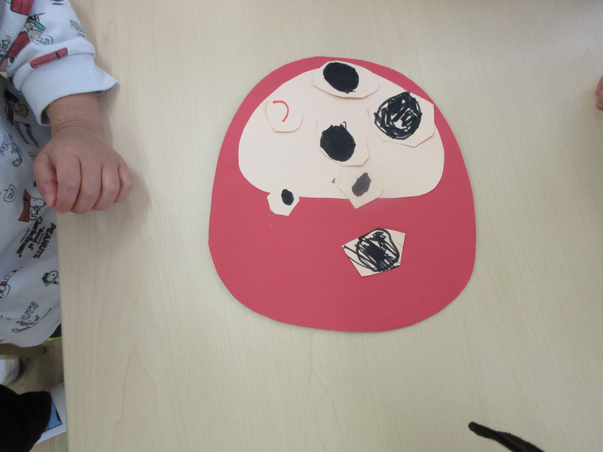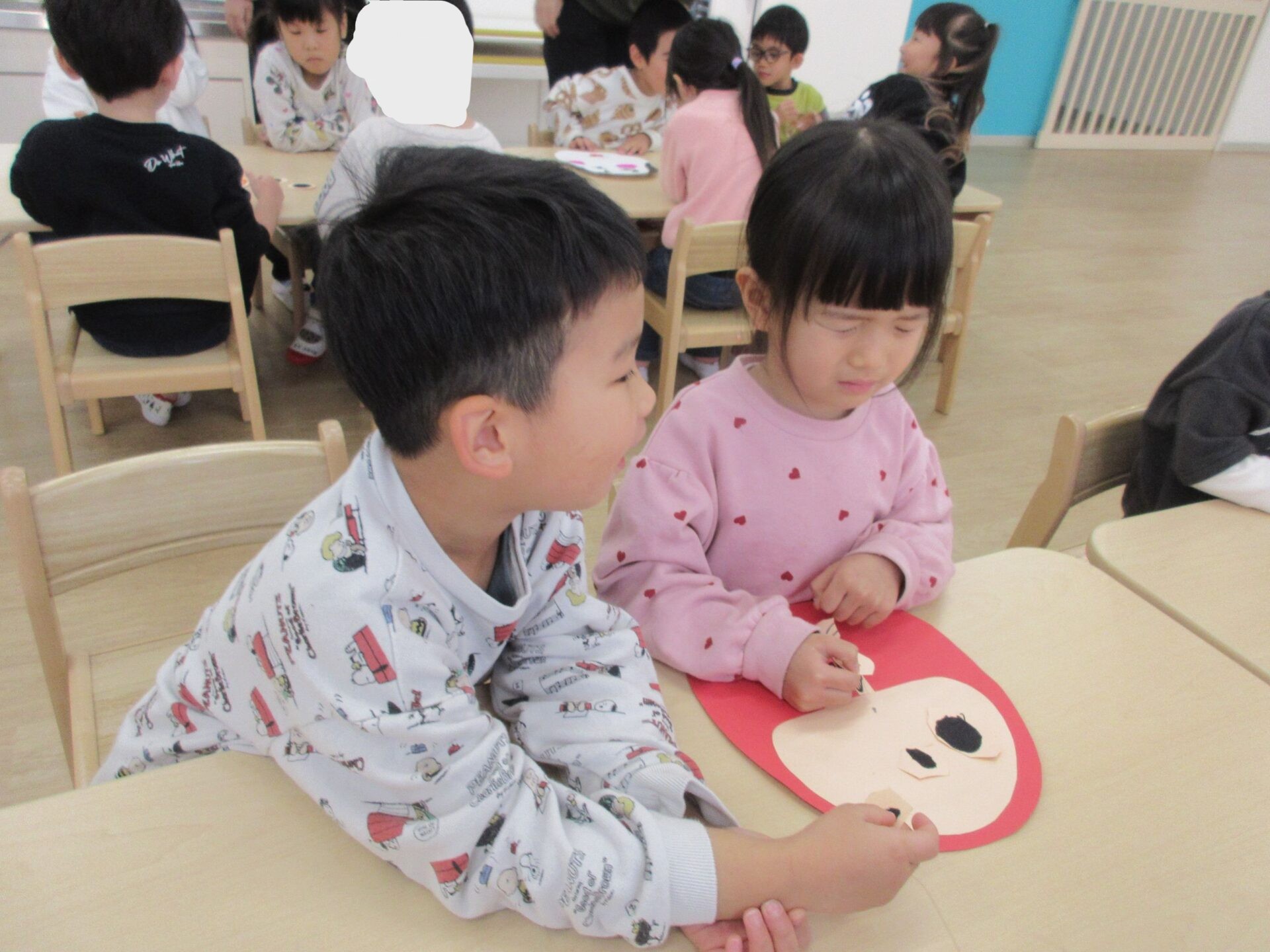 2026.01.22 お知らせ ブログ 正月遊びしたよ😊(4歳 そら組) 1月8日福笑いを作りました♪ グループで1つ作りました!目、口、鼻、ほっぺた、眉毛みんなで誰が何を作るのか話し合って作っていました。 自分でかいた物をハサミで切りました!ハサミも上手になりました✨ 完成した福笑いであそびます♪ 目を閉じてどこかな❔どこかな❔ こんな顔や こんな顔ができました(笑) いろいろな顔が出来て、大盛りあがりの子どもたちでした(^^)♡ 一覧へ戻る