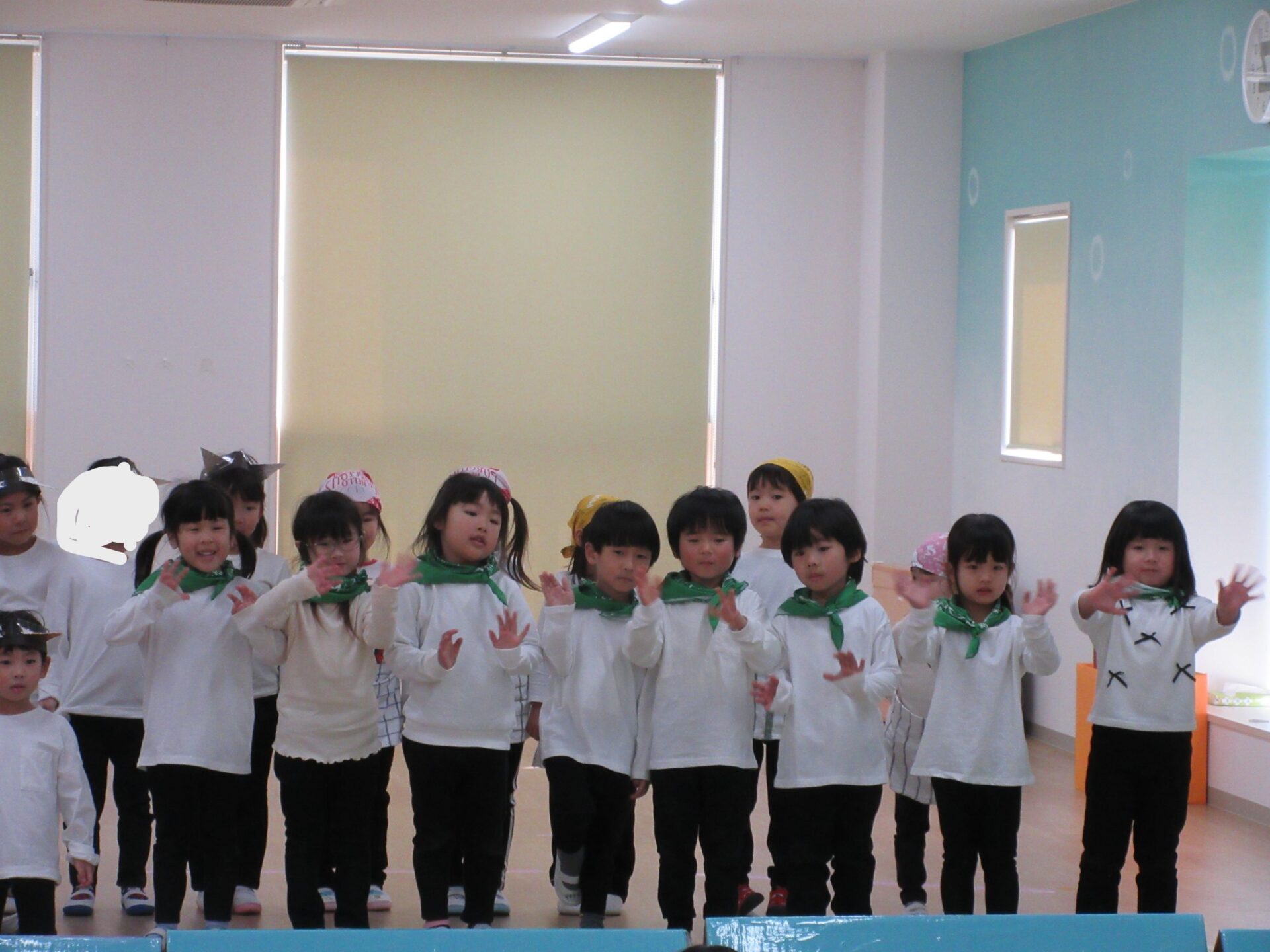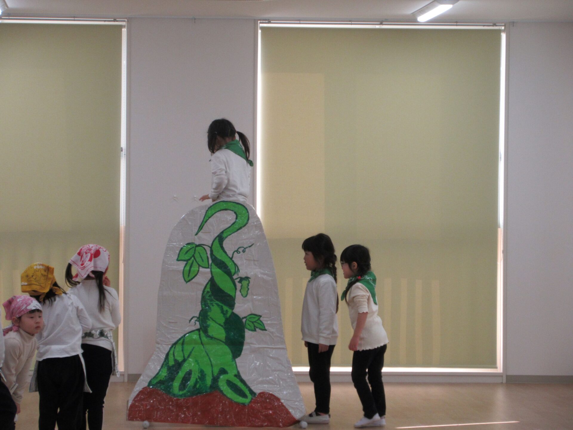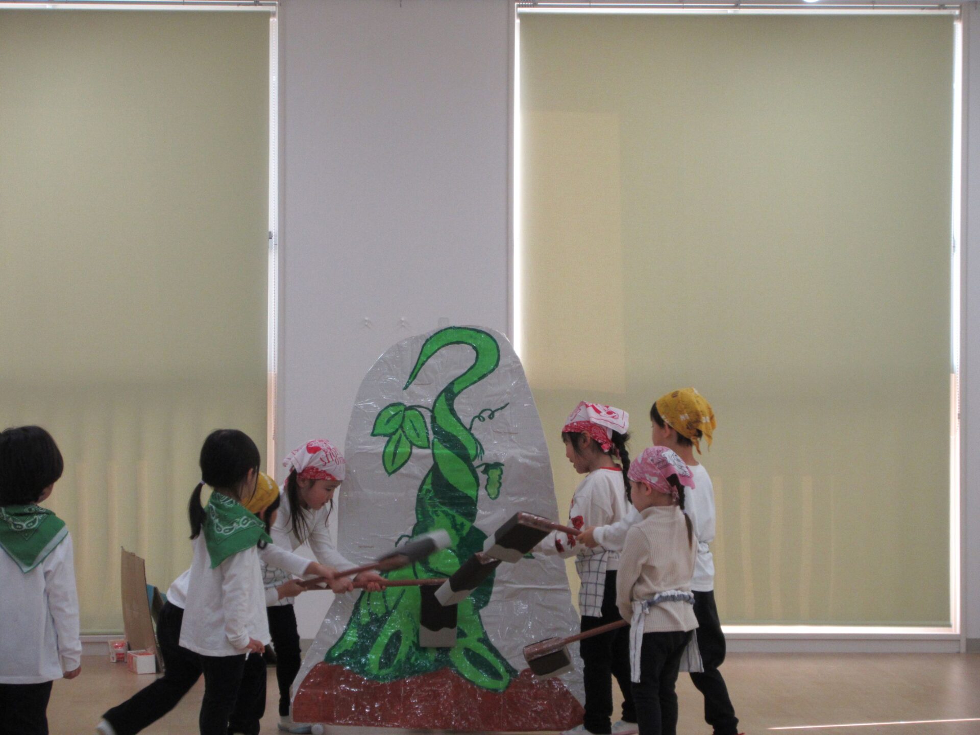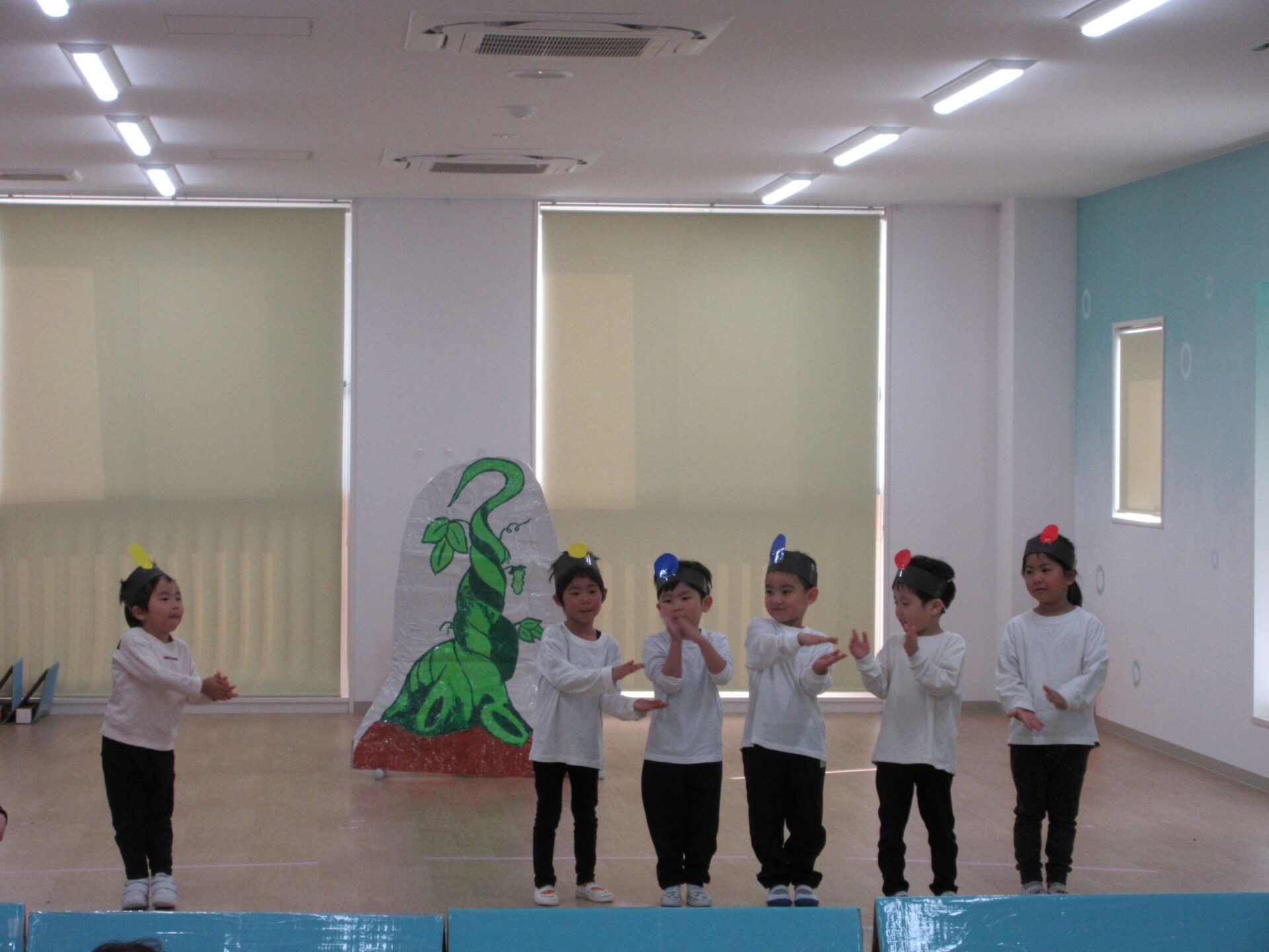 2026.03.12 お知らせ ブログ ジャックと豆の木😊(4歳そら組) ジャックと豆の木予行練習を振り返りたいと思います! 牛ダンスとっても上手にできていました🐮牛面白いと、周りの先生からも好評でした♡ 不思議なおじさん、豆を交換しないかい❔上手にできていました 豆ダンス!本当に伸びているみたいですね(^^) 豆の木を登っています。てっぺんまで登るぞ! 👹鬼の親分の登場です!怖かったですね(笑) めんどり、金の卵産んでくれました お母さん、斧を持ってエーイと切ってくれました😊 鬼の親分👹 ジャック! お母さん😊 とっても上手にできました。そら組さんもあと1ヶ月、これからも楽しい思い出を作っていきたいと思います♡ 一覧へ戻る